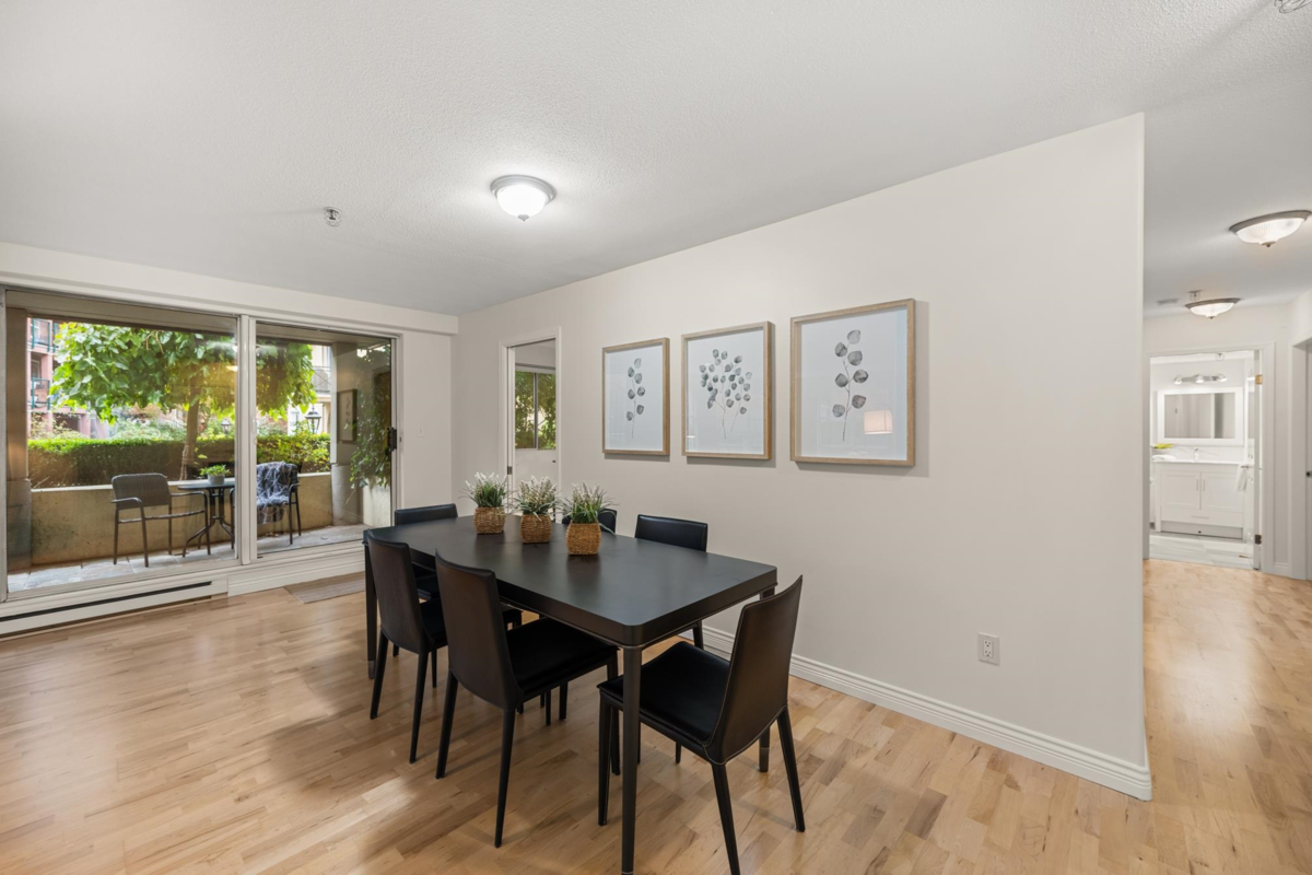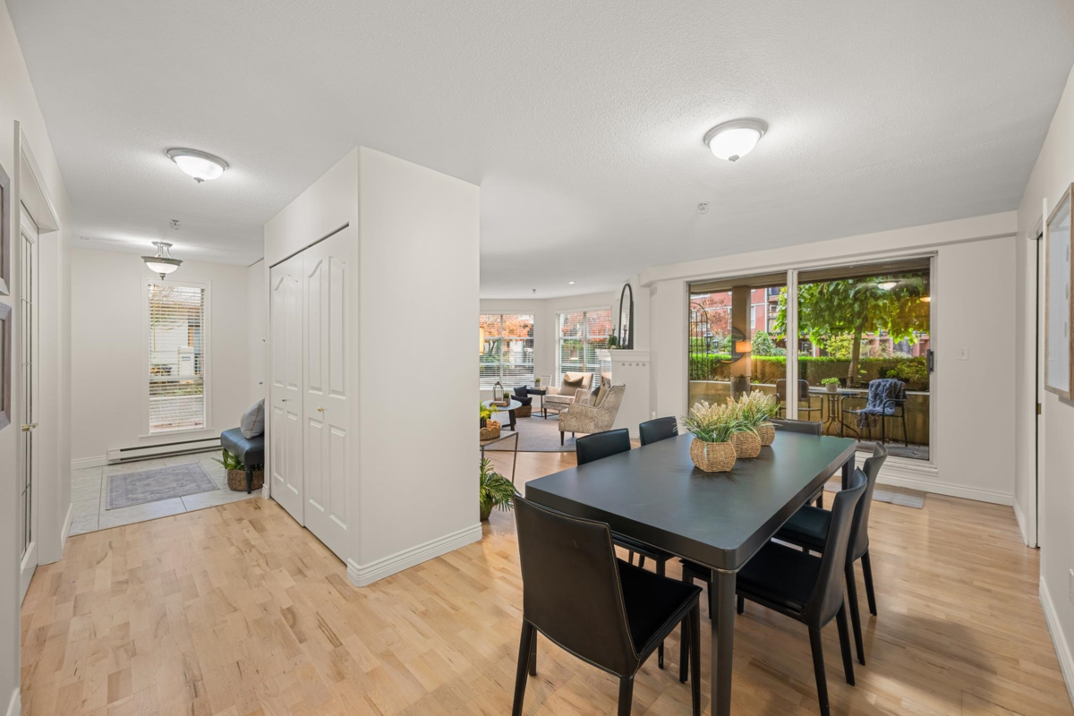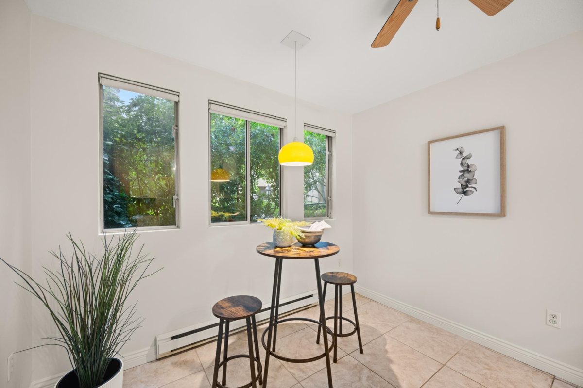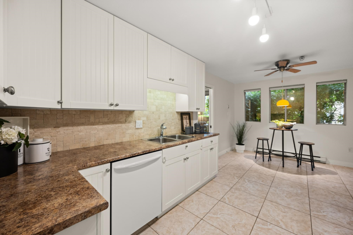 Incredible SPACE over 1600+ sqft CORNER condo at The Quay! Spacious 2 BDRM + DEN (could be third BEDROOM) feels more like a house w/ its own private ground-level entry, windows on 3 sides, allowing for a bright, peaceful & private setting. Overlooking ponds, gardens just minutes from New Westminster’s vibrant Waterfront. Featuring HW flooring, fresh paint, renovated main bath w/ walk-in shower, fantastic kitchen w/ eating area, loads of cupboard & counter space! Not to mention a real BONUS house-size laundry room w/ built-in vacuum & extra storage. TWO side by side secure U/G PARKING stalls, 1 Locker & Visitor Parking. Only minutes to Boardwalk at the Quay, restaurants, shops, transit! 2 Pets Ok-No Size Restriction.