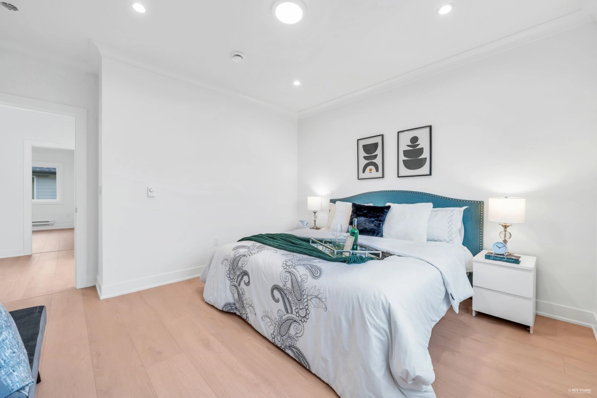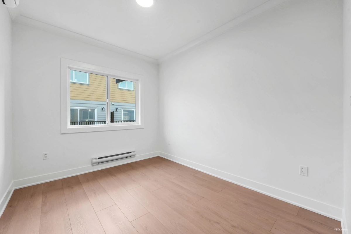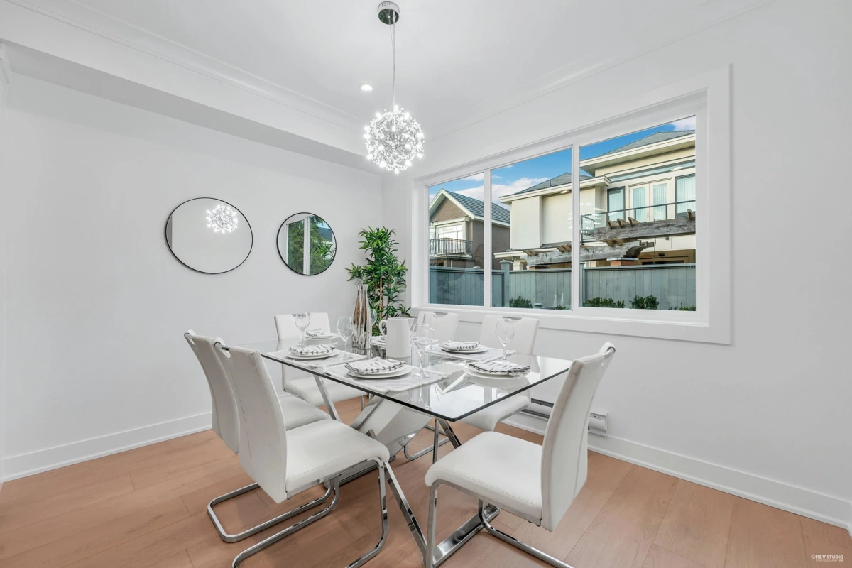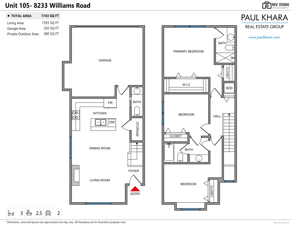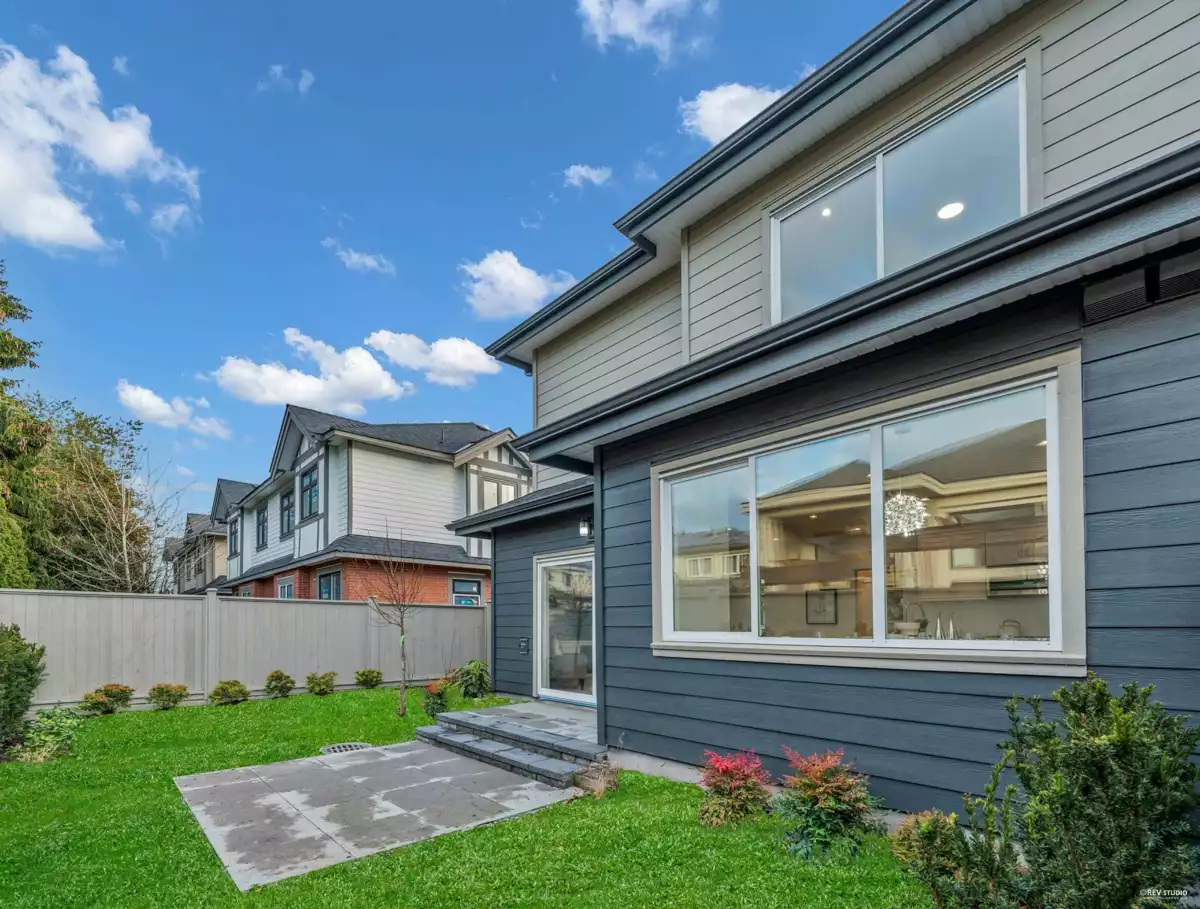 This modern 2-story townhome boasts high end finishes with abundance of natural light and a functional open floorplan. The gourmet kitchen features SS appliances, quartz countertops, and work island seating that is adjacent spacious dining room. The cozy living area features built-in entertainment cabinetry, under lit shelving with modern electric fireplace and contemporary wide plank laminate flooring. All generous sized bedrooms, with 2nd bedroom offering cheater ensuite bath and 3rd bedroom with study area. Complete with AC, HRV, Heat Pump, plus electric baseboard. DOUBLE car garage with EV outlet and more. Convenient central location close to both school levels, South Arm Community Center offering Pickleball & Tennis Courts, outdoor pool, and Athletic fields.