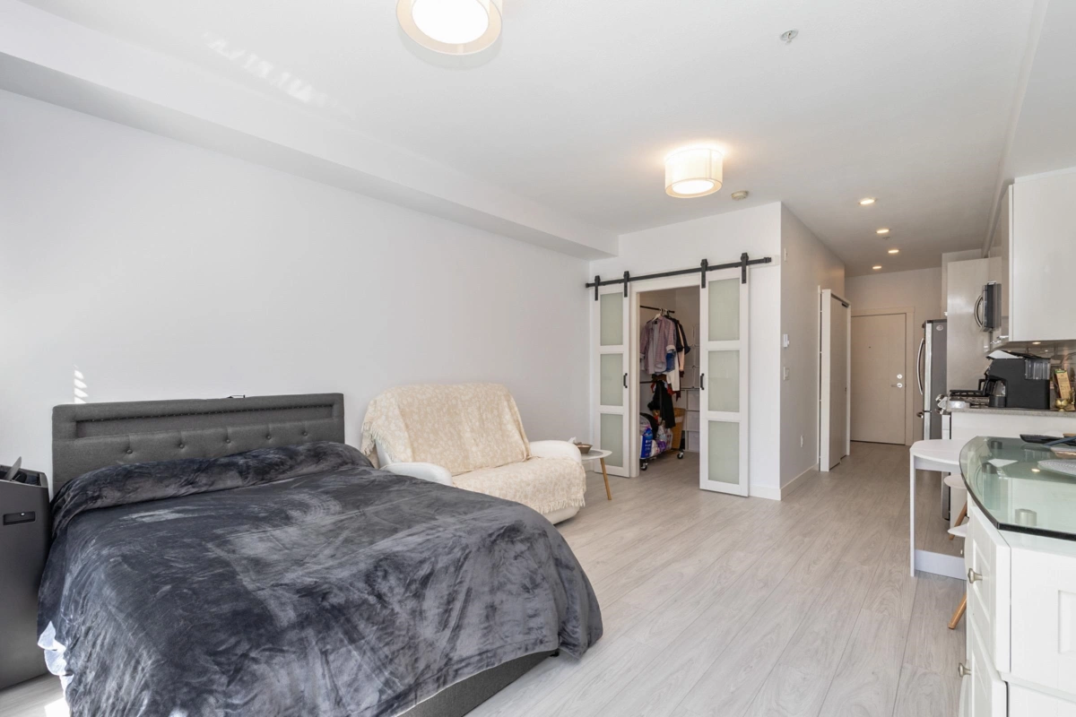Stylish and spacious studio with a smart layout and private outdoor patio! This beautifully kept, like-new suite offers incredible flexibility for both living and working — the open layout is perfect for customizing your space. A generous walk-in closet with charming barn doors easily doubles as a quiet home office. Enjoy quality finishings throughout, including stainless steel appliances, a gas stove with centre grill, built in microwave, and a sleek double-door fridge. A rare bonus: the patio offers a second private entrance via exterior stairs, giving the home a house-like feel with an elevated, sun-kissed outdoor oasis — perfect for relaxing or entertaining. Walk to the Coquitlam River, Gates Park, restaurants, trails and the new Community Centre. Minutes from the West Coast Express.