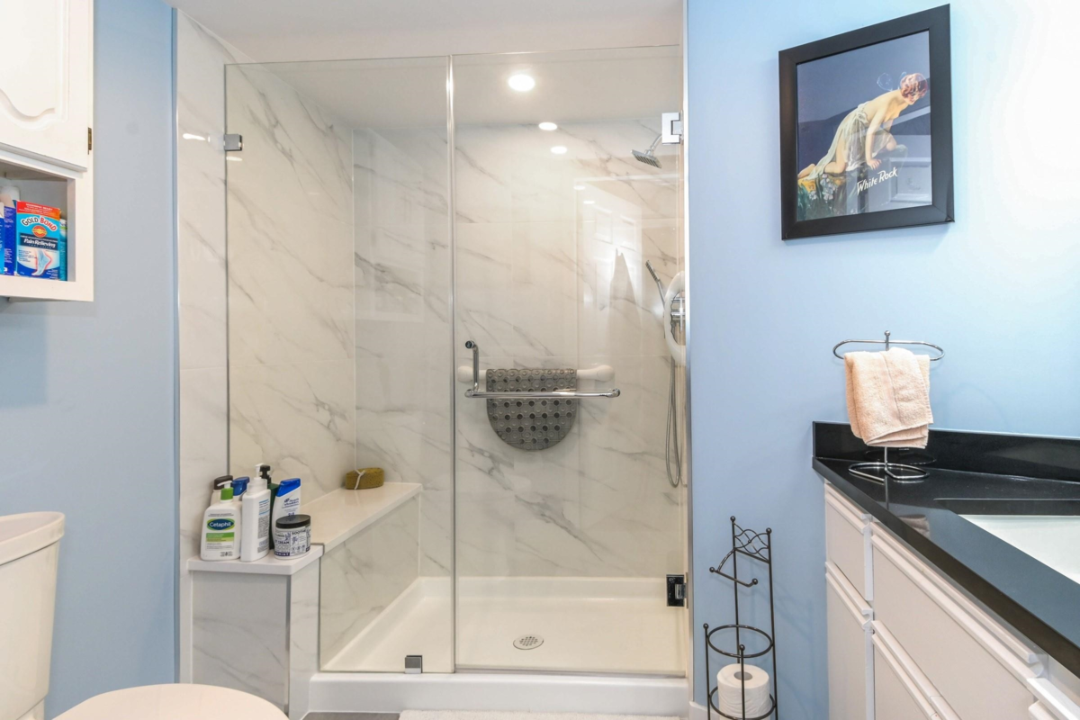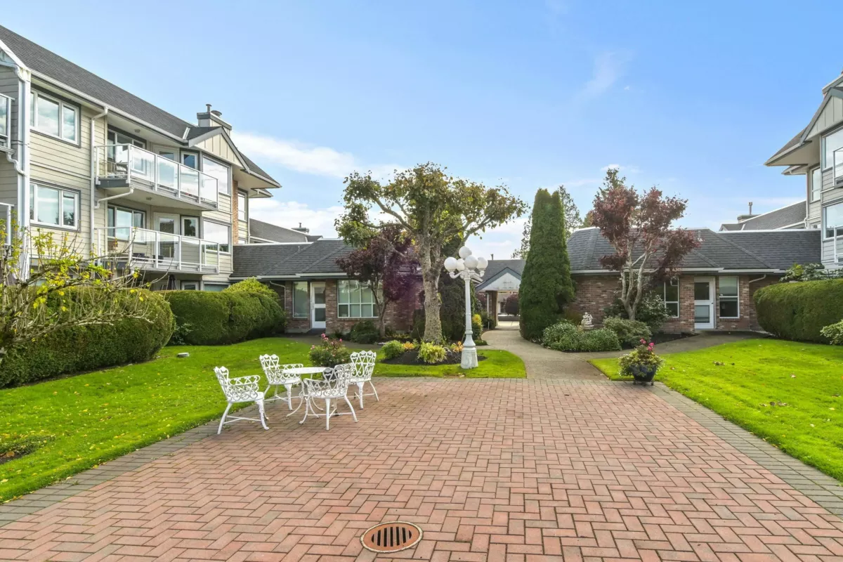 White Rock Village: spacious ground floor corner unit with great natural light. Many updates including ceramic kitchen flooring & back splash, newer dishwasher & LG fridge, sink & tap.Gas cooktop for the chef in your family! Living room features new thermo blinds, wood flooring & cozy gas fireplace, with access to spacious patio with garden. Updated bathrooms and recently painted interior. The building has been extensively retrofitted including rain screening with hardy plank siding, windows, doors, balconies & roof. Great amenities include recreational room, sauna, huge deck on 3rd floor, exercise room and library & beautifully landscaped courtyard. No smoking complex and no pets, age 55 plus. Central to shopping in Ocean Park AND White Rock with transit & convenience stores nearby.