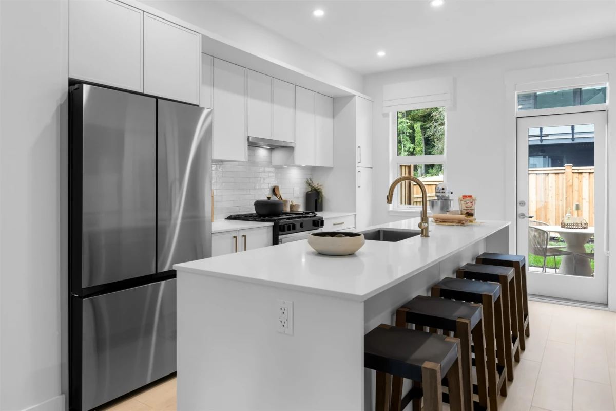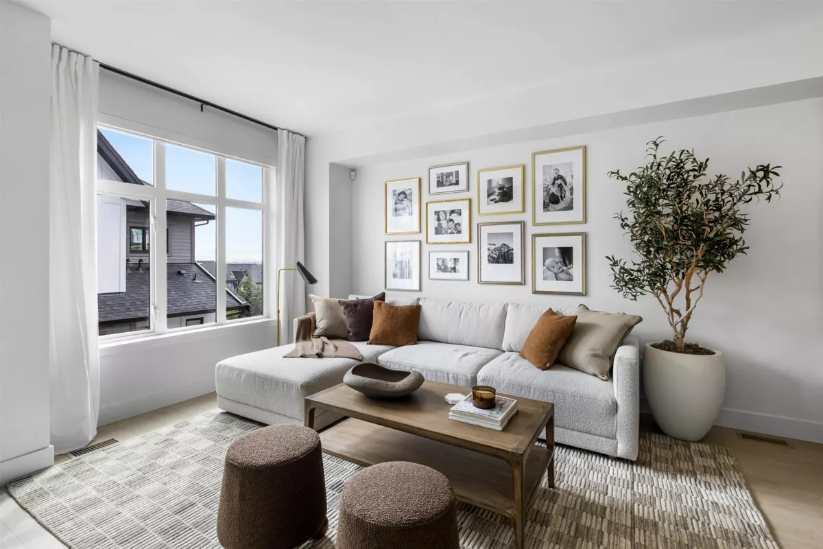 Welcome to VERSANT. A boutique collection of Modern Craftsman-inspired townhomes built by award-winning Infinity Properties. This MOVE IN READY 3-bed 2.5 bath home features a functional layout for growing families. Large kitchen with custom cabinetry, quartz countertops, SS app w/GAS range and entertaining island with eating bar. Deck off kitchen w/Gas BBQ outlet leads to a RAISED fully fenced BACKYARD. Laminate flooring on main floor, high efficiency gas furnace with AC and Rinnai water heater. Upper floor feat. 3 bedrooms incl. SPACIOUS primary bedroom w/spa inspired ensuite. Enjoy easy access to hiking trails, mountain biking routes + lakes. Only 10 minutes from the Skytrain, West Coast Express + Coquitlam City Centre Shopping + Amenities. Open Sat-Wed 12-5 PM.
