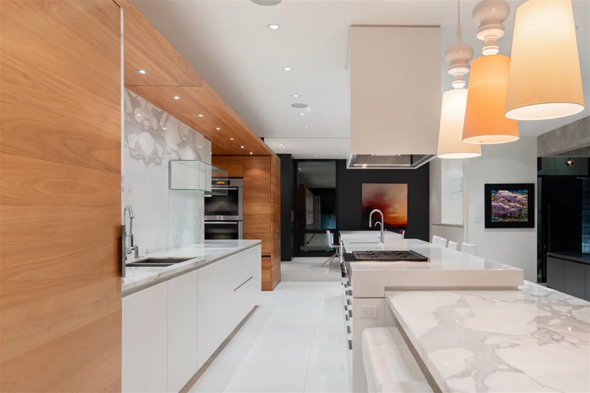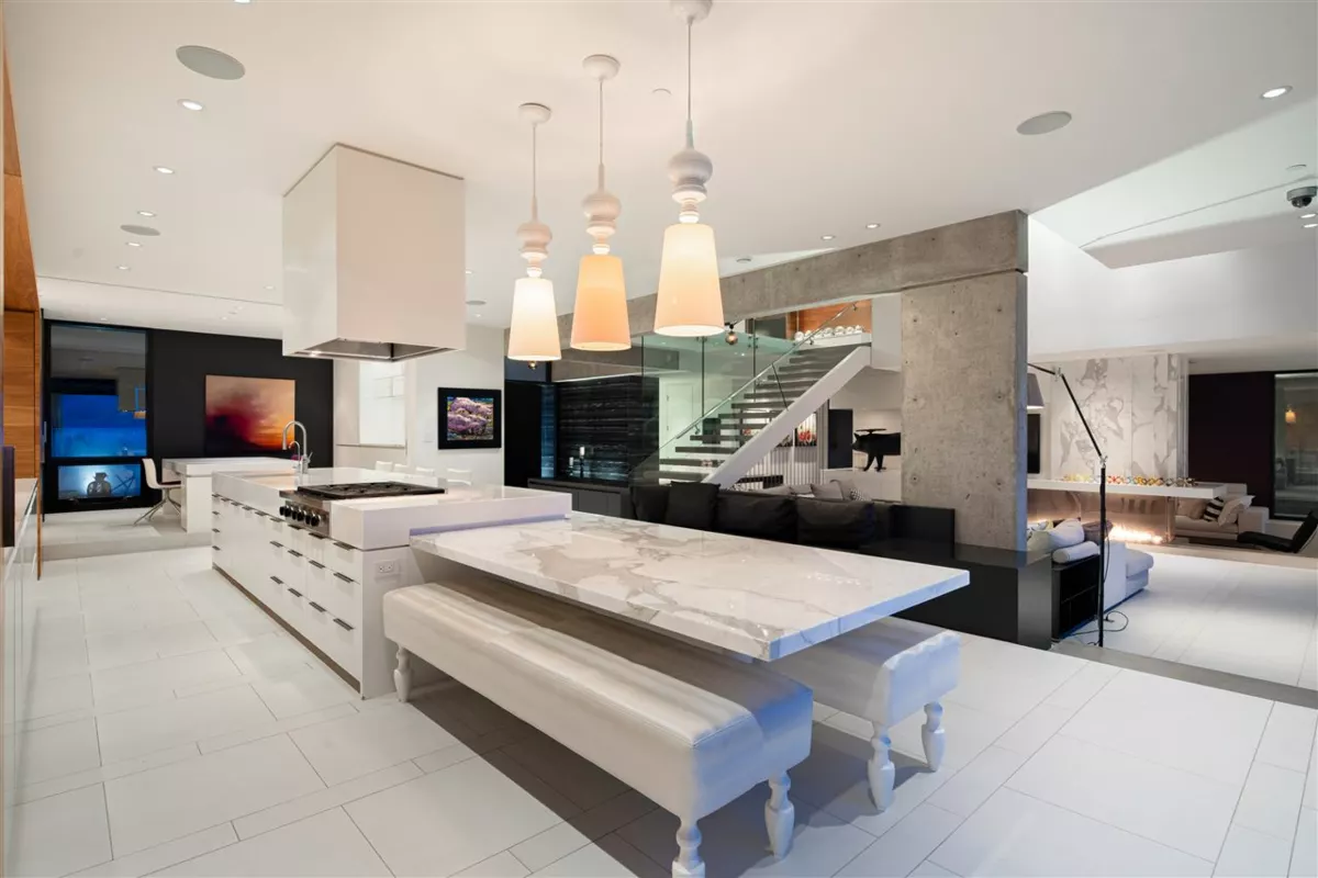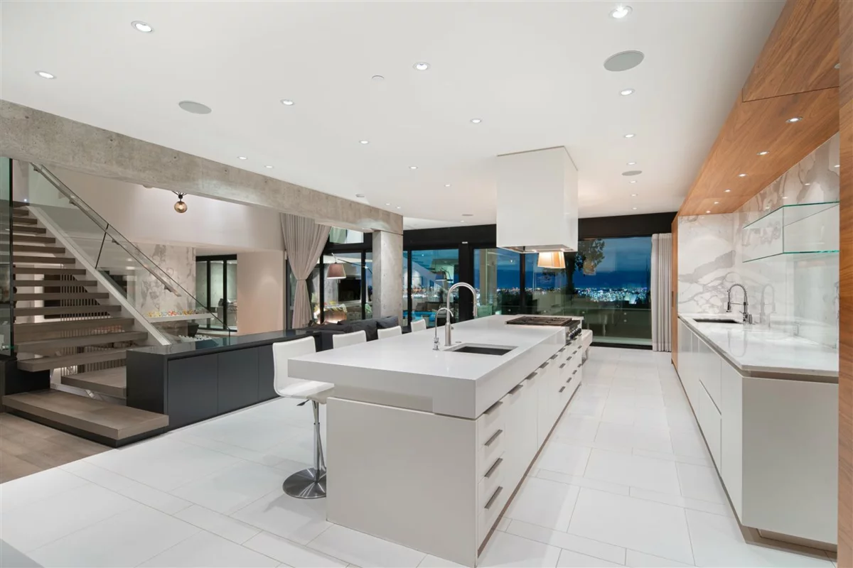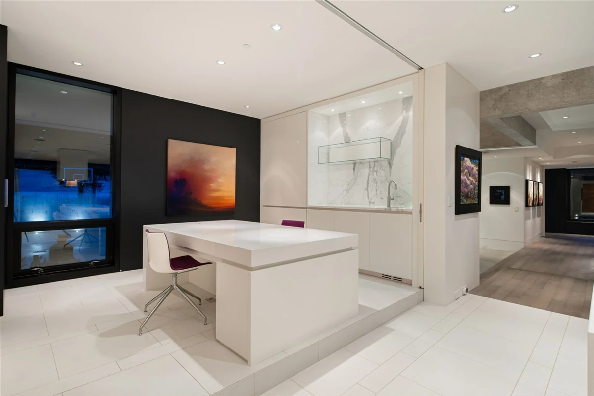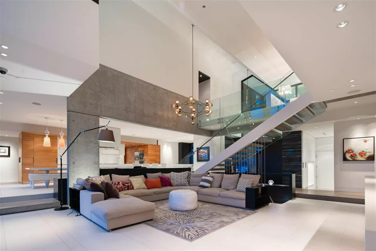 A truly modern architectural masterpiece by Mcleod Bovell Modern Houses that is not only unique and beautiful, but also functional and maximize the sweeping views of Downtown Vancouver and the Ocean. This concrete constructed contemporary home is situated in a gently sloped 27094 sq ft lot, with over 10000 sq ft inside, bright and spacious. The double height living area is open and airy. Through the huge aluminum glass pivot doors which created smooth transition from indoor to outdoor living, is the expansive outdoor area that is covered by 25 ft roof overhang that allows the family to enjoy all year long, with compliments of BBQ area, fire pits and infinity pool overlooking the fascinated views. Each section of the home is seamlessly blending into the next for a cohesive feel.