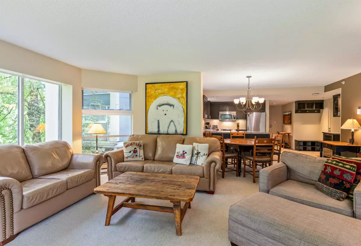 Live steps from the slopes in this two-bedroom ground floor residence in Woodrun Lodge, where ski-run views and direct access combine comfort and convenience. After a day outdoors, unwind in the spacious living area with a gas fireplace, prepare meals with ease in the well-appointed kitchen, or take in the fresh mountain air from either of the private patios. The suite also includes the convenience of in-suite laundry. Woodrun Lodge offers practical on-site features including a hot tub, outdoor pool, and fitness room—all just a short stroll from Whistler’s Upper Village. Zoned for Phase I, the property allows for unlimited personal use and nightly rentals.
