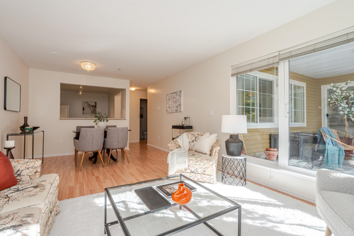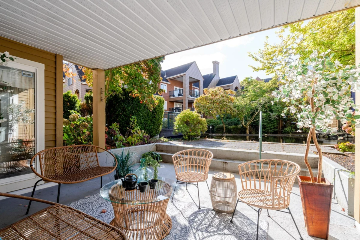 Welcome to The Burton at Windsor Woods, one of Tsawwassen’s most desirable communities! This beautifully maintained ground-floor home offers nearly 1,200 sq. ft. of bright, open living w/ 2 spacious bedrooms + 2 full bathrooms. The thoughtful layout showcases light laminate flooring, a well-appointed kitchen, generous bedrooms, and a spa-like ensuite. Step outside to your expansive 154sf partially covered patio overlooking the tranquil lagoon—an ideal setting for year-round BBQs, entertaining guests, or simply unwinding in peace. Easy walking access to transit, shopping, and restaurants, plus the convenience of secured underground parking + a fantastic recreation centre complete with a gym, sauna, and hot tub! Call today!