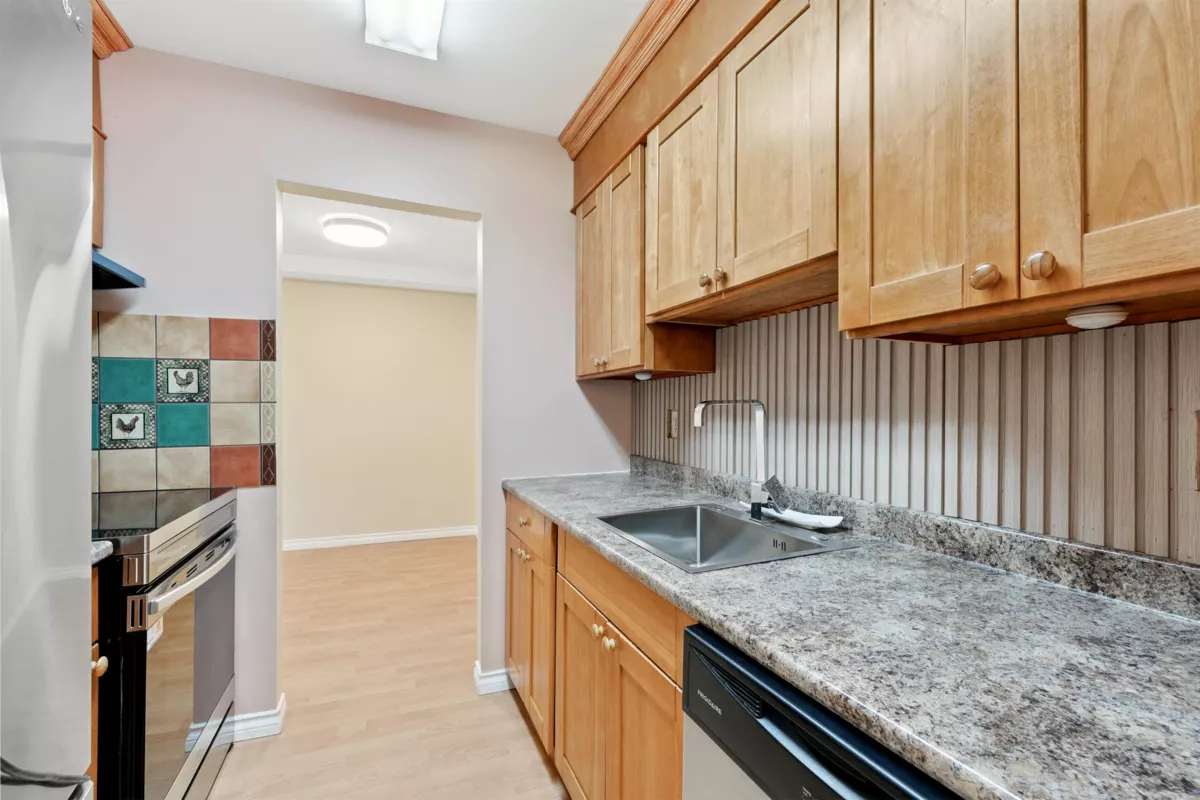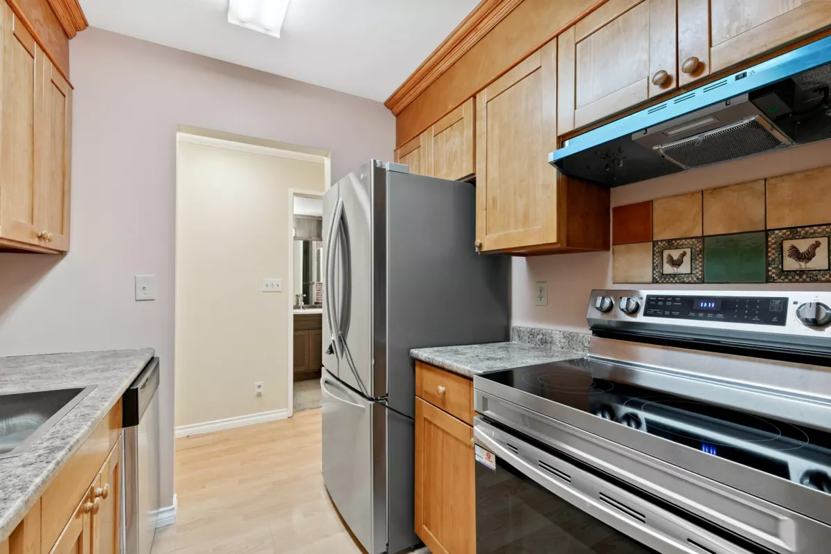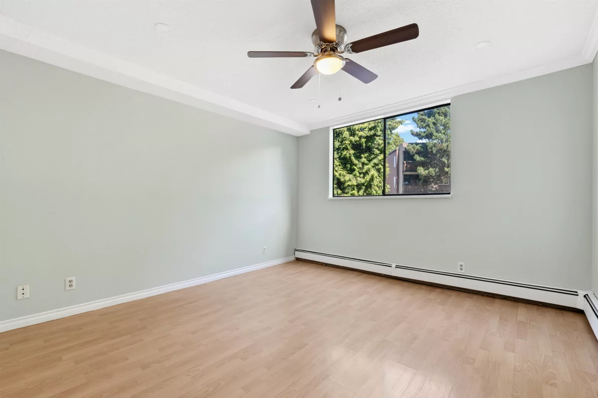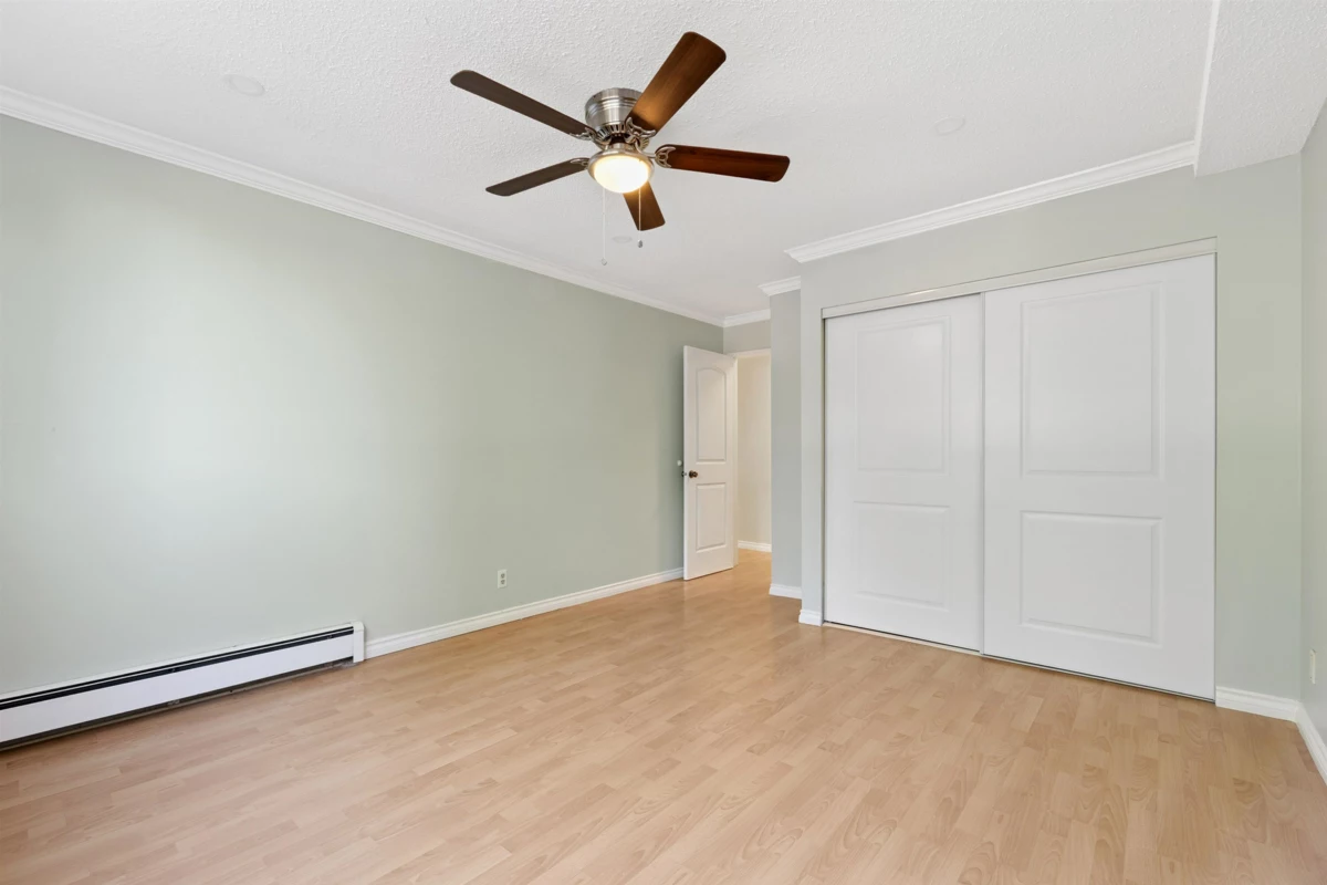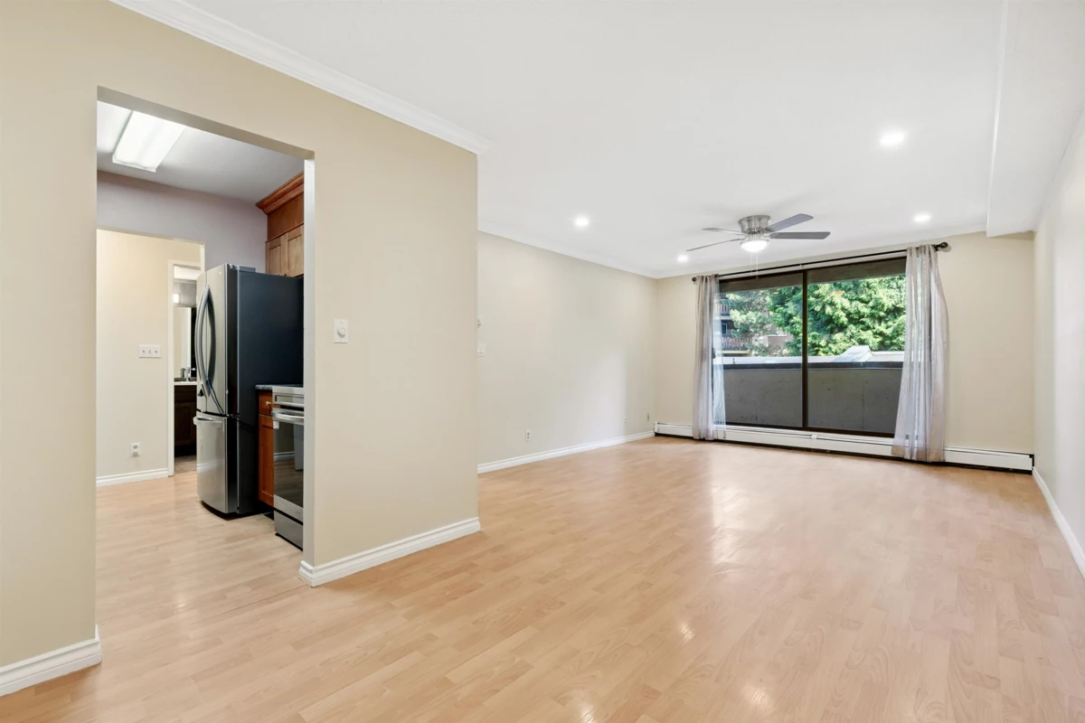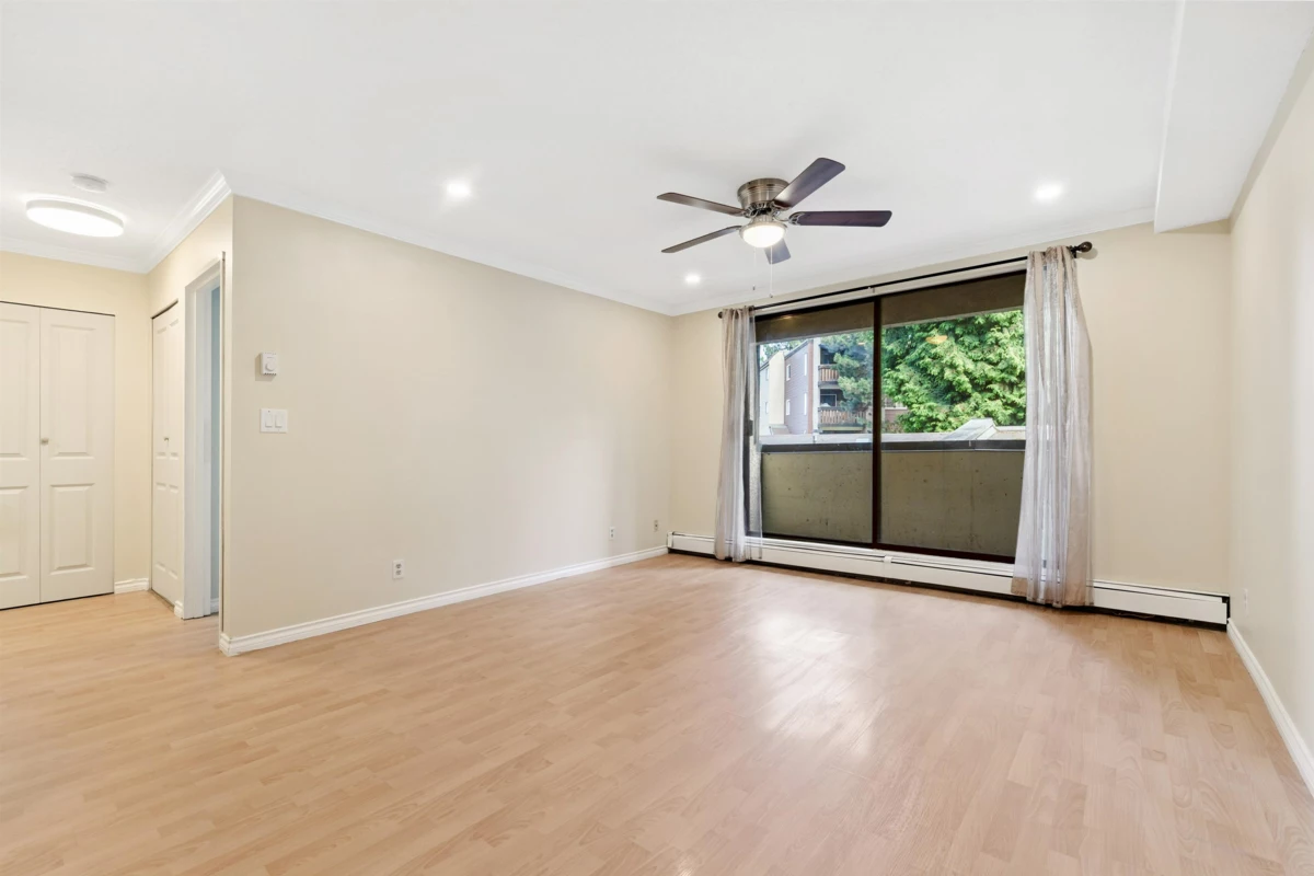 Ready to move in - spacious 1-bedroom condo with a large covered balcony at Chancellor Gate! Freshly renovated, features include renovated kitchen, bathroom, fresh paint, laminate floors, new appliances and much more! Well run strata with low maintenance fee that includes heat, hot water and access to a spa-like amenities at "The Paddock" - outdoor pool, hot tub, sauna, basketball court, pool tables, lounge area etc. Perfect and affordable starter home located in the middle of everything, yet- private and quiet. less than 5-min walk to great parks, schools, bus stops; 20-min walk to Richmond Centre, Skytrain station, Kwantleen University!