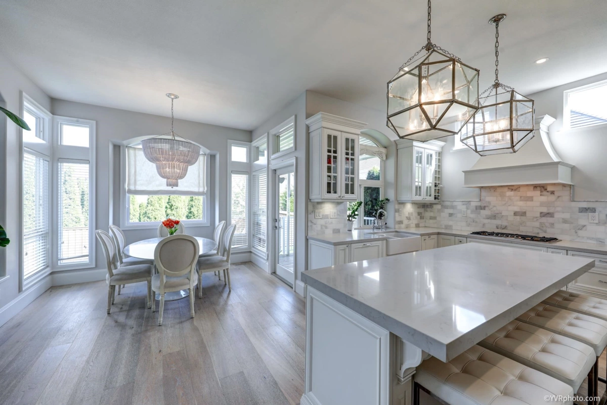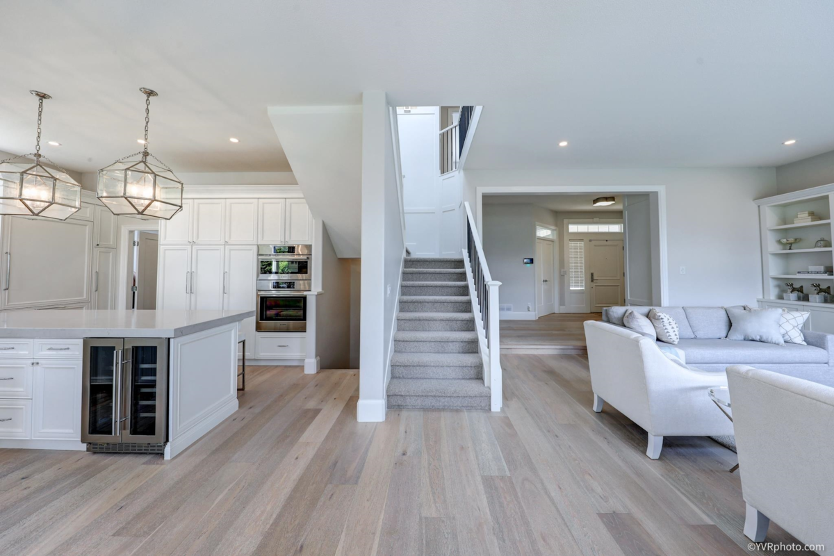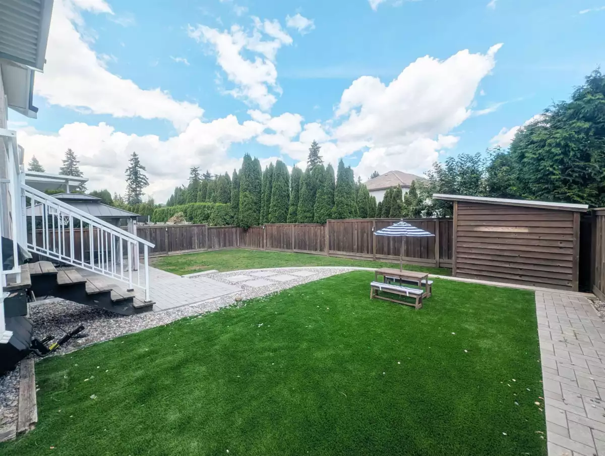 Gorgeous and tastefully renovated family home on a 6,100 sqft lot in prestigious Fraser Heights. Originally a Foxridge Show Home, this property features quality upgrades including a heat pump, central A/C, security cameras, new flooring, designer lighting, new hot water tank, and in-floor heating in bathrooms. The garage includes a Level 2 EV charger. A grand foyer leads to an elegant living room with soaring 12' ceilings. The open-concept main floor showcases a well-equipped kitchen with Bosch & Sub-Zero appliances. Upstairs offers three spacious bedrooms, including a large private master suite. The lower level includes a bedroom and rec room with potential for a mortgage helper. Fully fenced backyard ideal for outdoor living. Close to schools, transit, highways, and shops!