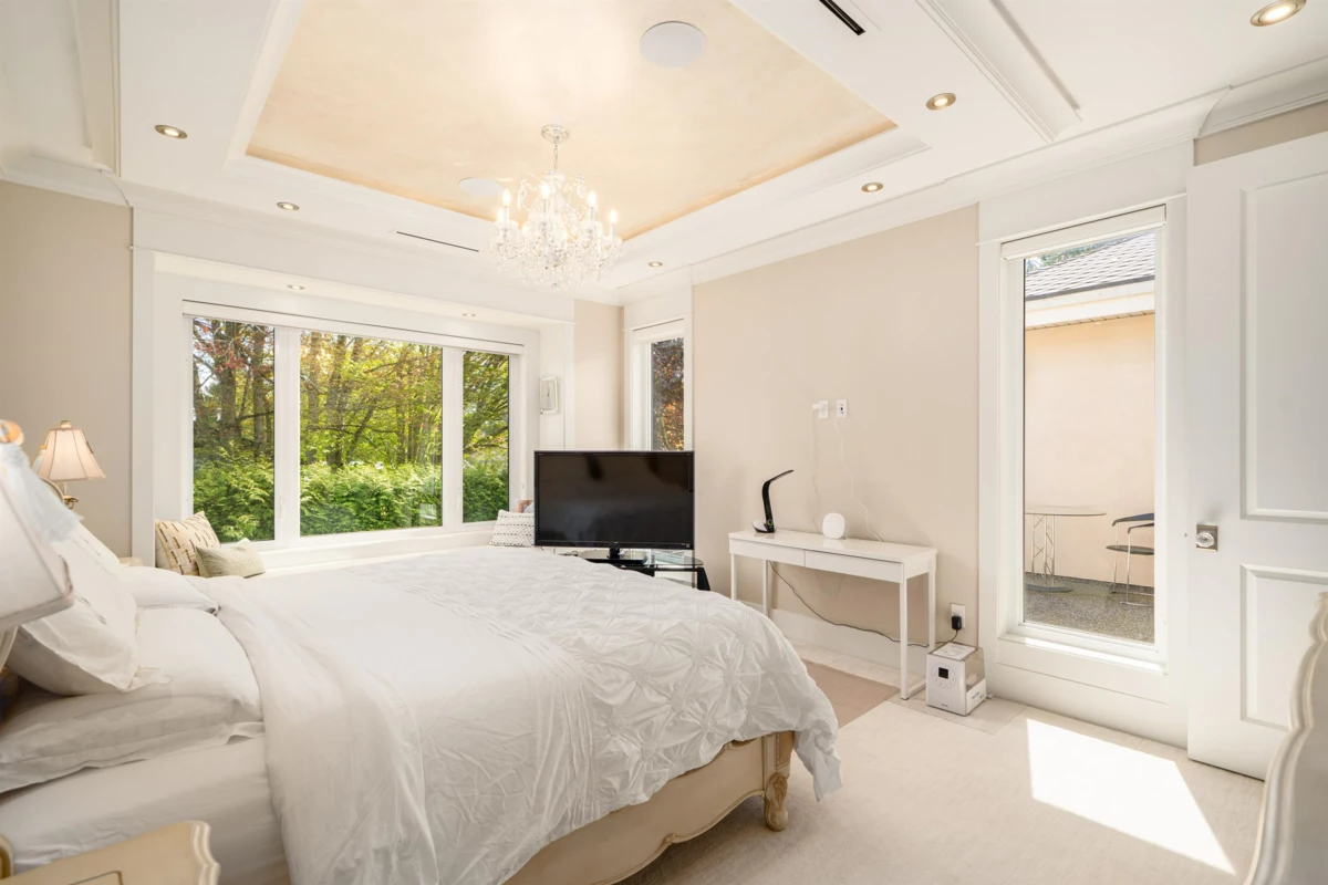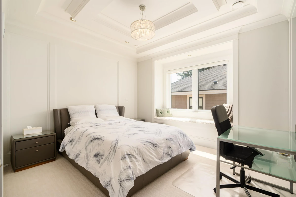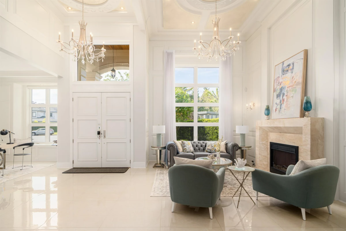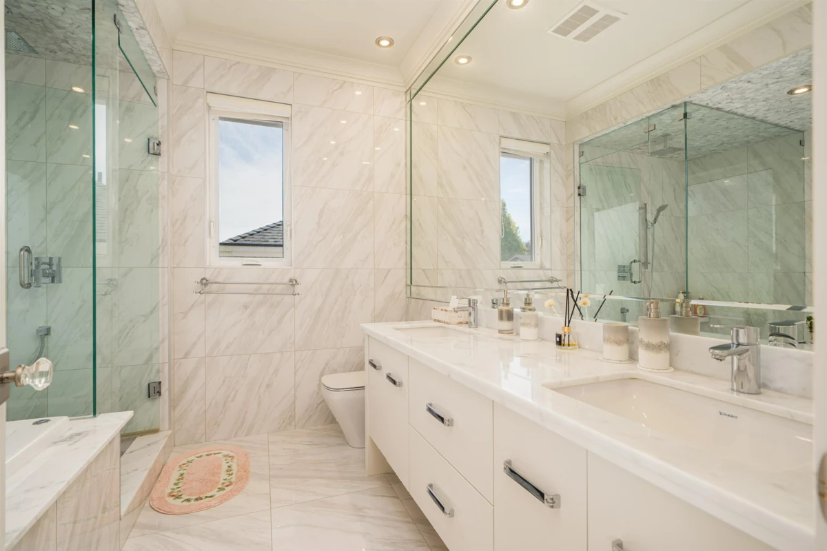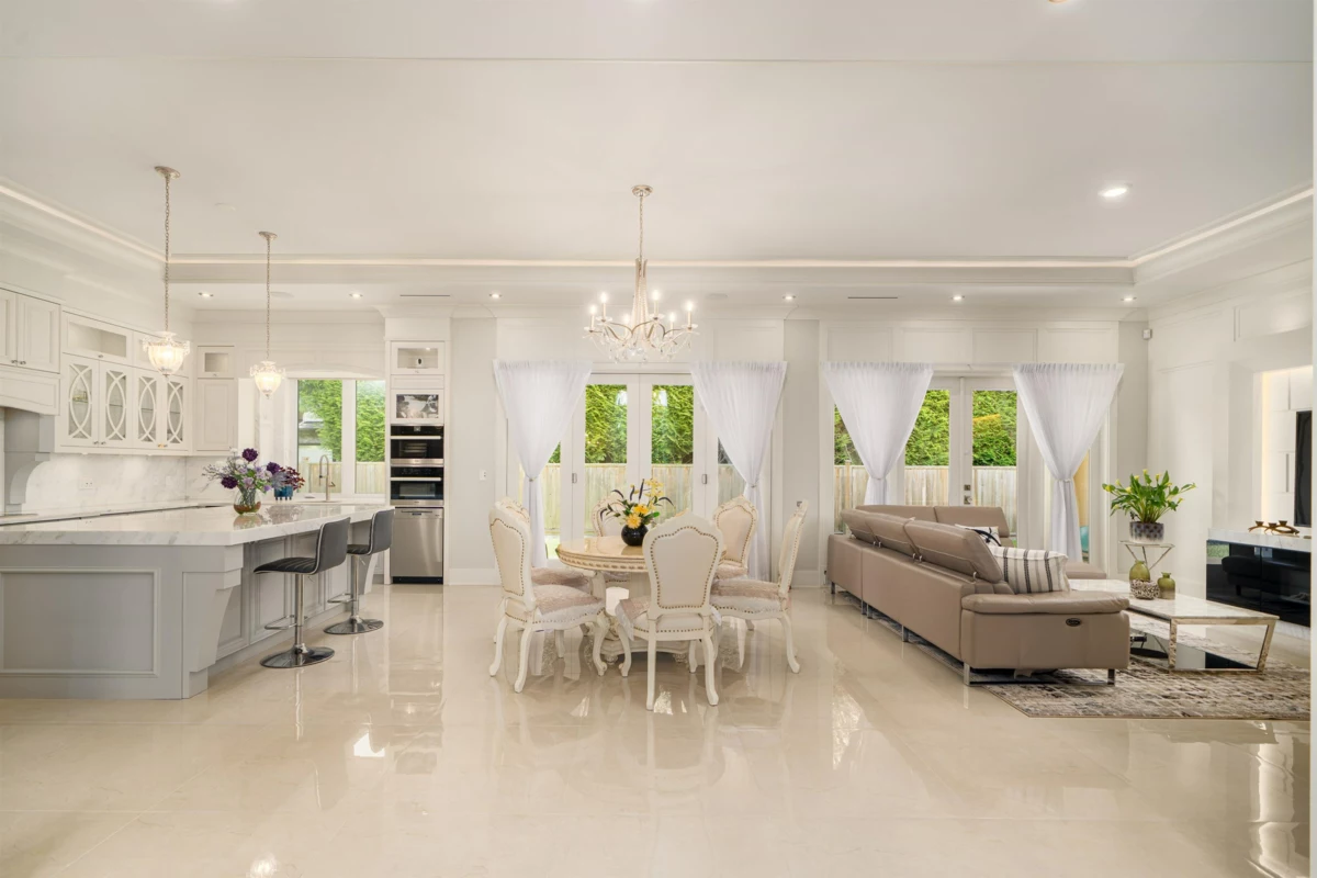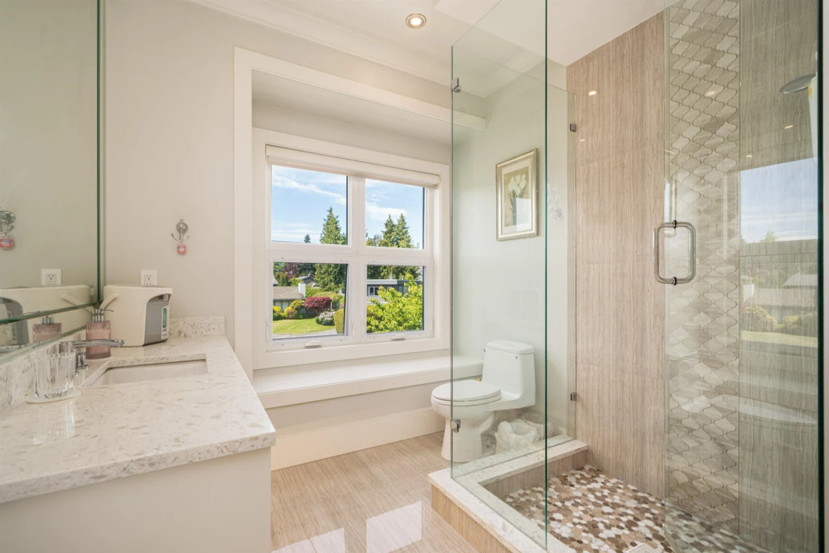 Better than new! Stunning custom home in prestigious Broadmoor. Open-concept design with soaring ceilings in elegant living/dining areas, feature walls, and Schonbek lighting. Gourmet kitchen with premium cabinets, marble counters, and top-tier Sub-Zero & Wolf appliances. Upscale plumbing fixtures, including smart Toto toilet. Main floor media room with ensuite doubles as guest room. Upstairs offers two spacious master suites plus two cozy bedrooms. Huge private deck—perfect for gatherings. Durable diamond-shaped asphalt shingle roof. Smart home system adds comfort and security. Meticulously built for discerning buyers. Walk to top schools, parks, transit, shops, and more. School catchments: Maple Lane Elementary & Steveston-London Secondary.