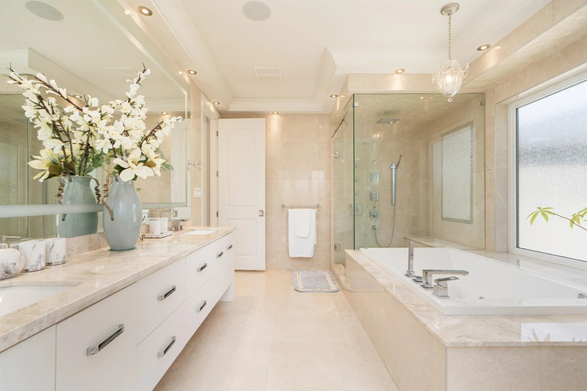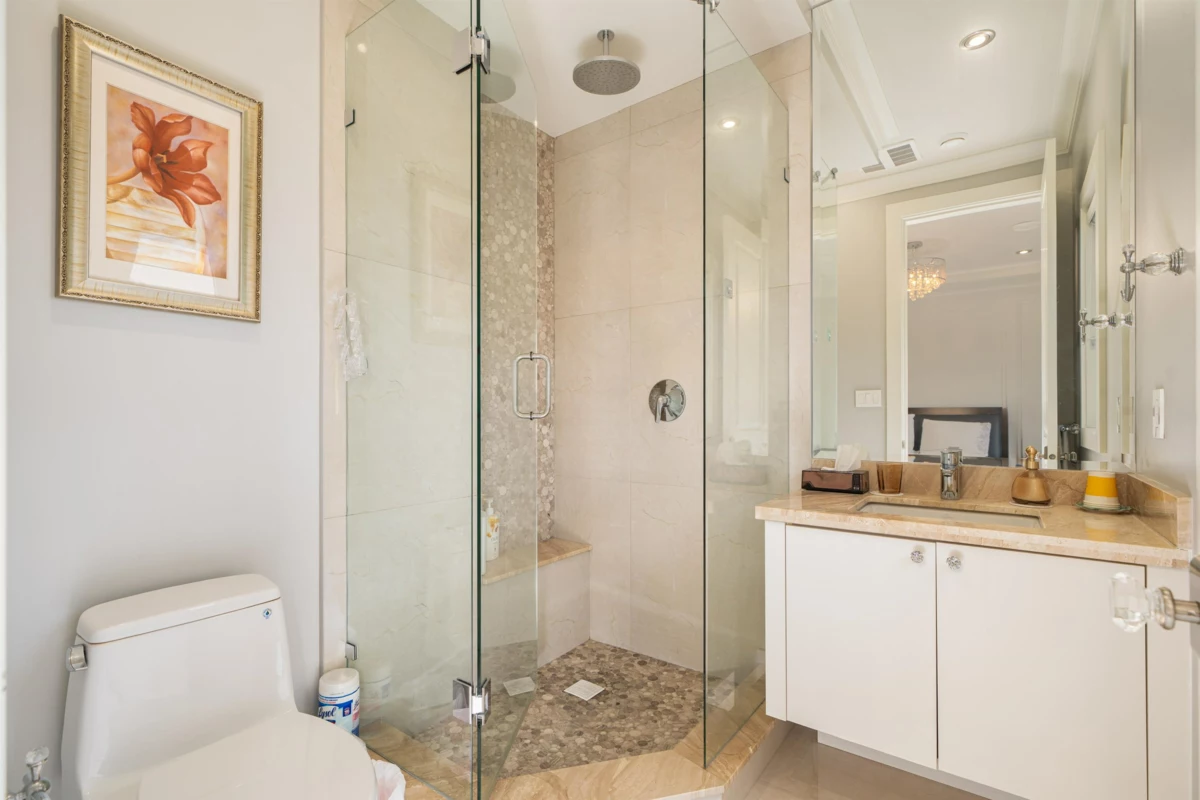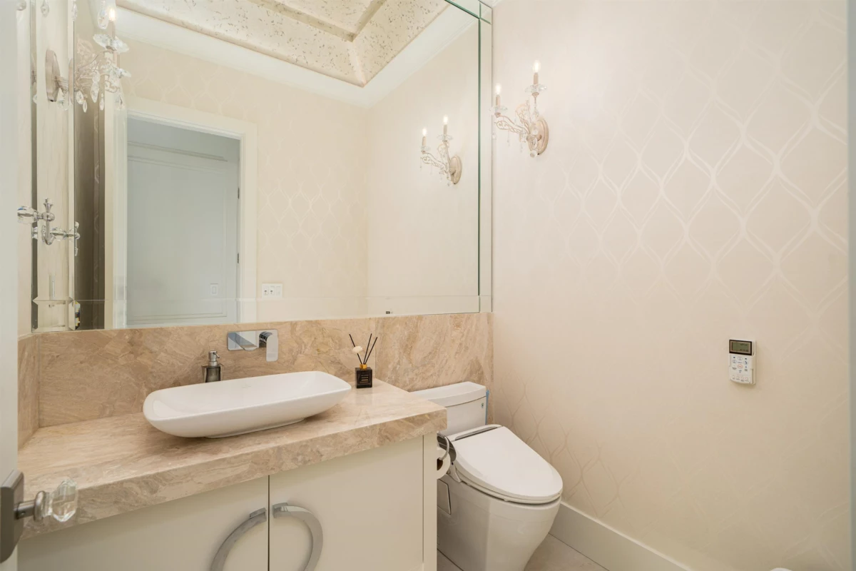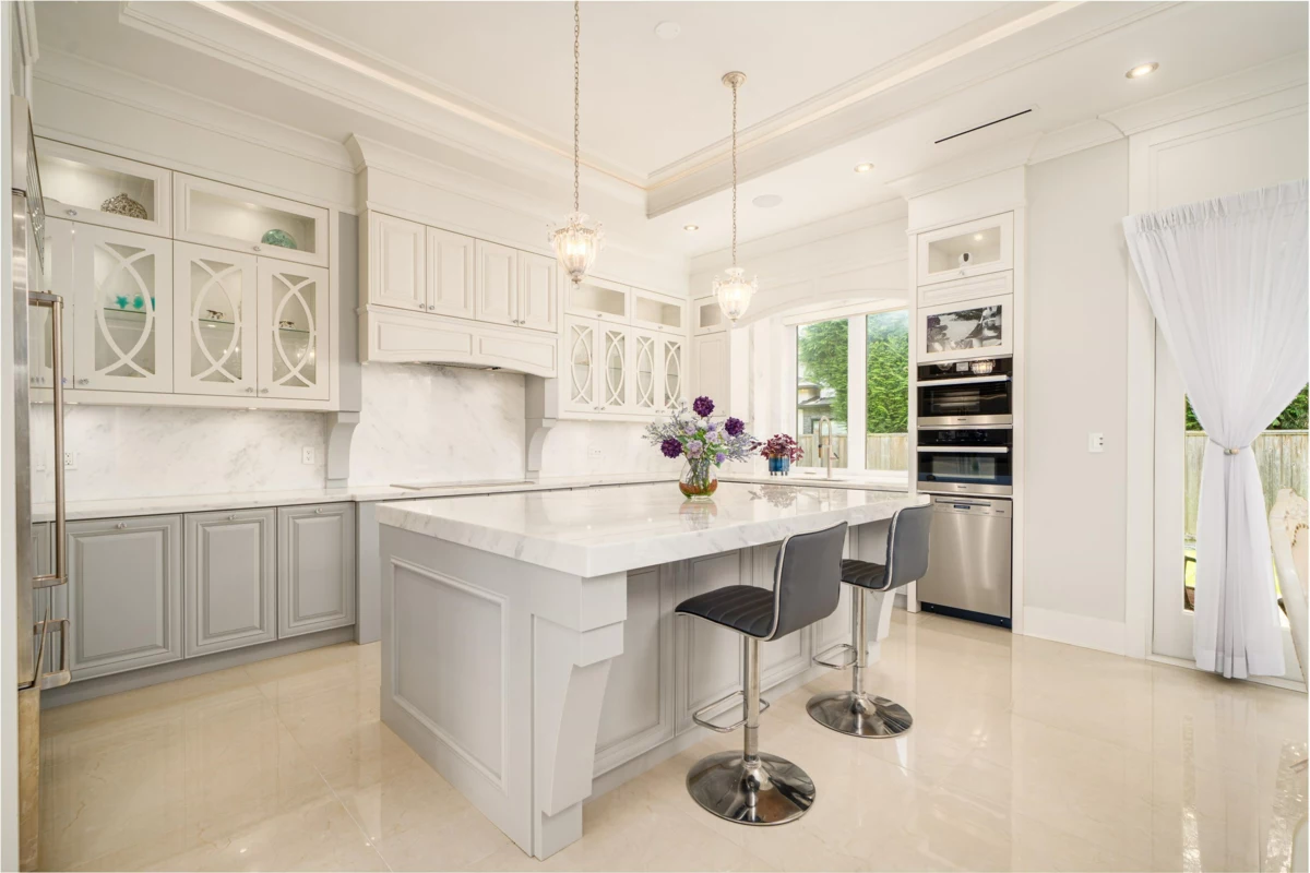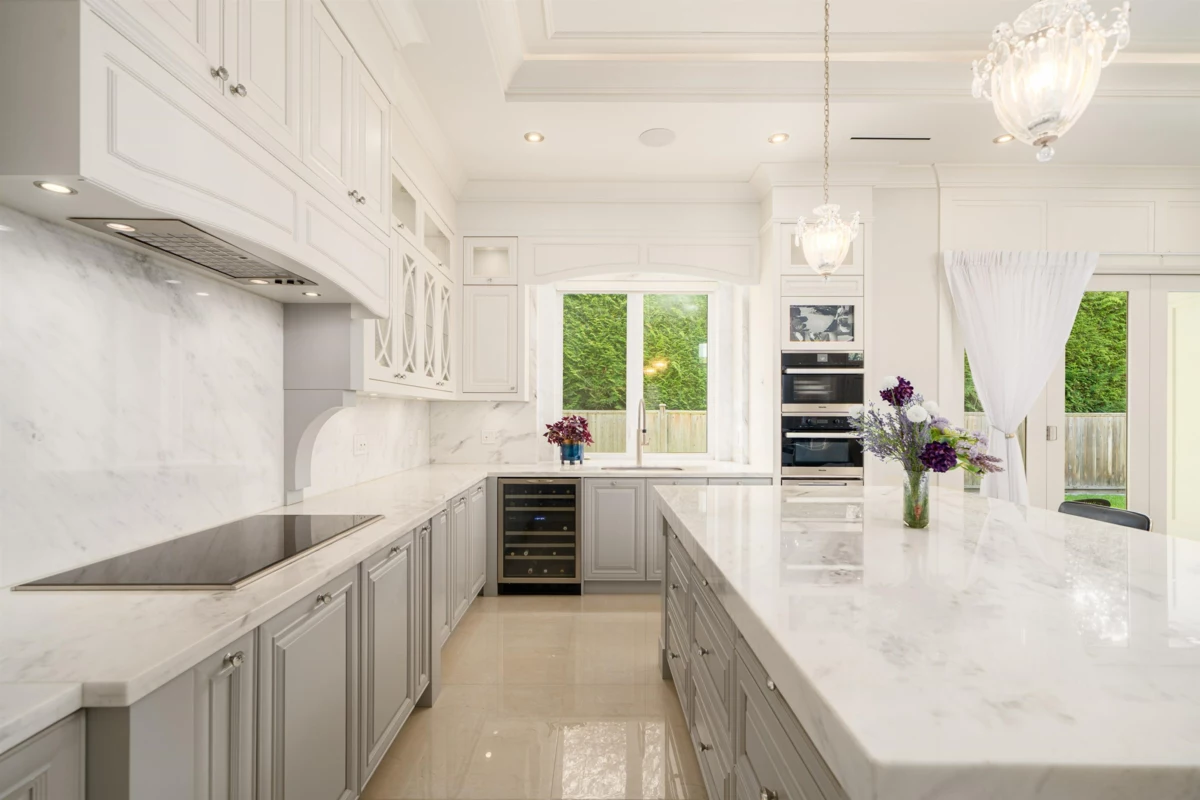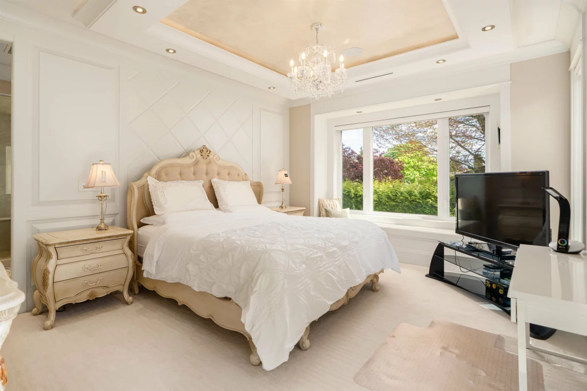 Better than new! Stunning custom home in prestigious Broadmoor. Open-concept design with soaring ceilings in elegant living/dining areas, feature walls, and Schonbek lighting. Gourmet kitchen with premium cabinets, marble counters, and top-tier Sub-Zero & Wolf appliances. Upscale plumbing fixtures, including smart Toto toilet. Main floor media room with ensuite doubles as guest room. Upstairs offers two spacious master suites plus two cozy bedrooms. Huge private deck—perfect for gatherings. Durable diamond-shaped asphalt shingle roof. Smart home system adds comfort and security. Meticulously built for discerning buyers. Walk to top schools, parks, transit, shops, and more. School catchments: Maple Lane Elementary & Steveston-London Secondary.