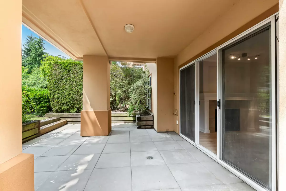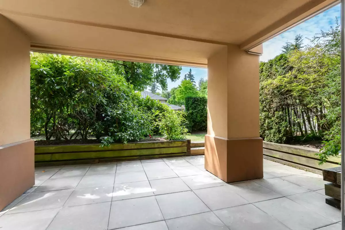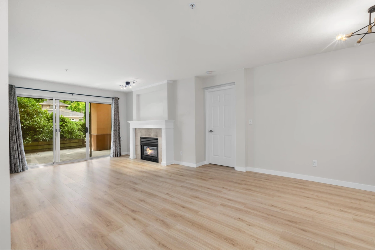 Enjoy privacy and sunshine in this updated ground-floor SOUTH facing unit at Villa Pacific, featuring 2 large bedrooms, 2 bathrooms, 2 parking and an expansive patio perfect 297 sqft patio. With bedrooms thoughtfully separated for privacy, the home feels bright, open and maintained well through the years with white cabinetry, stainless steel appliances, and a cozy gas fireplace. The primary bedroom offers a walk-in closet and ensuite large enough for any accessible needs. Pet-friendly and perfect for dog owners or garden enthusiasts. Located at the end of the cul-de-sac, Footsteps to Semiahmoo Trail, transit, shopping, and restaurants. Move in Anytime