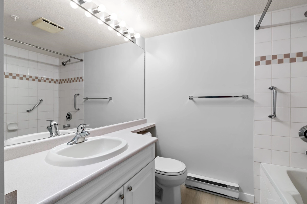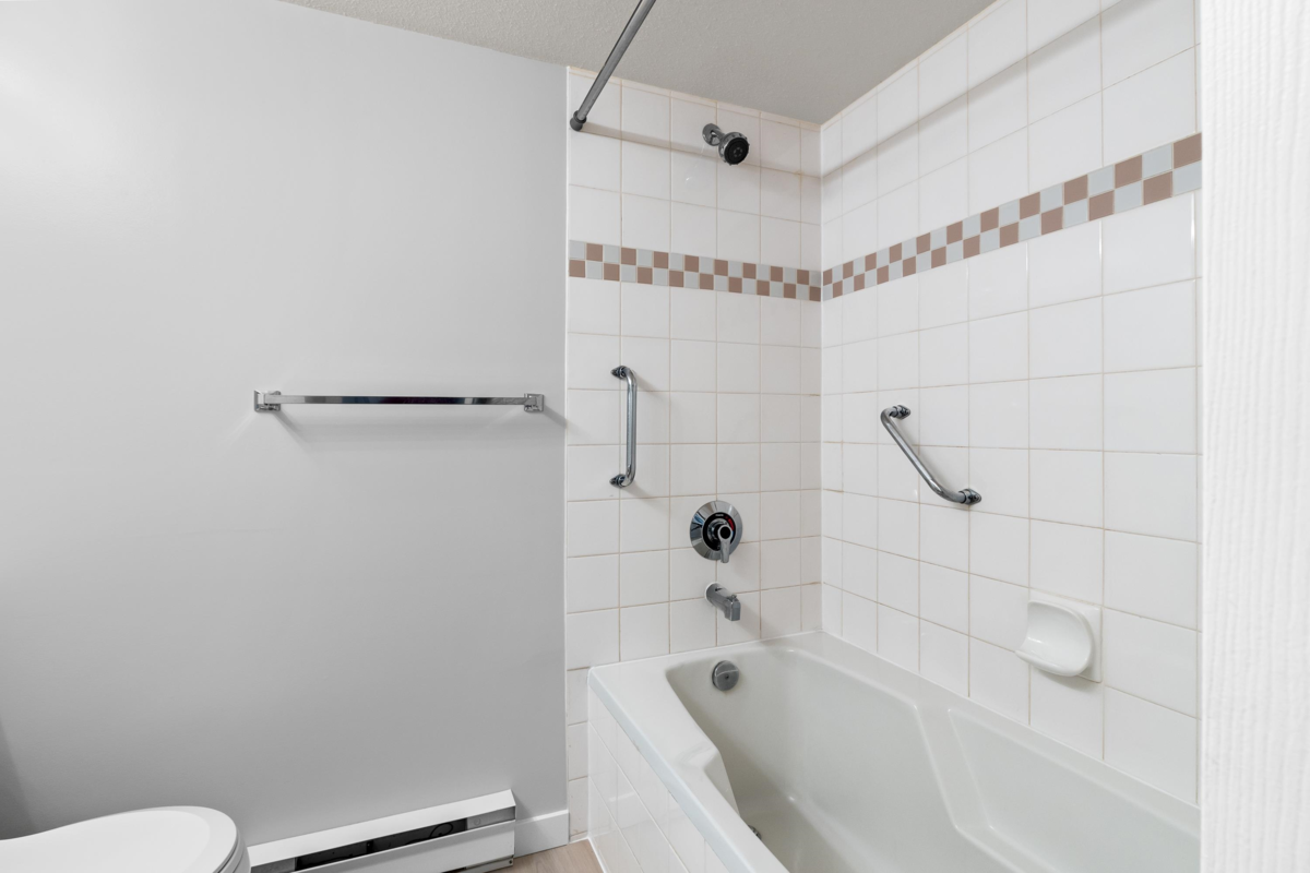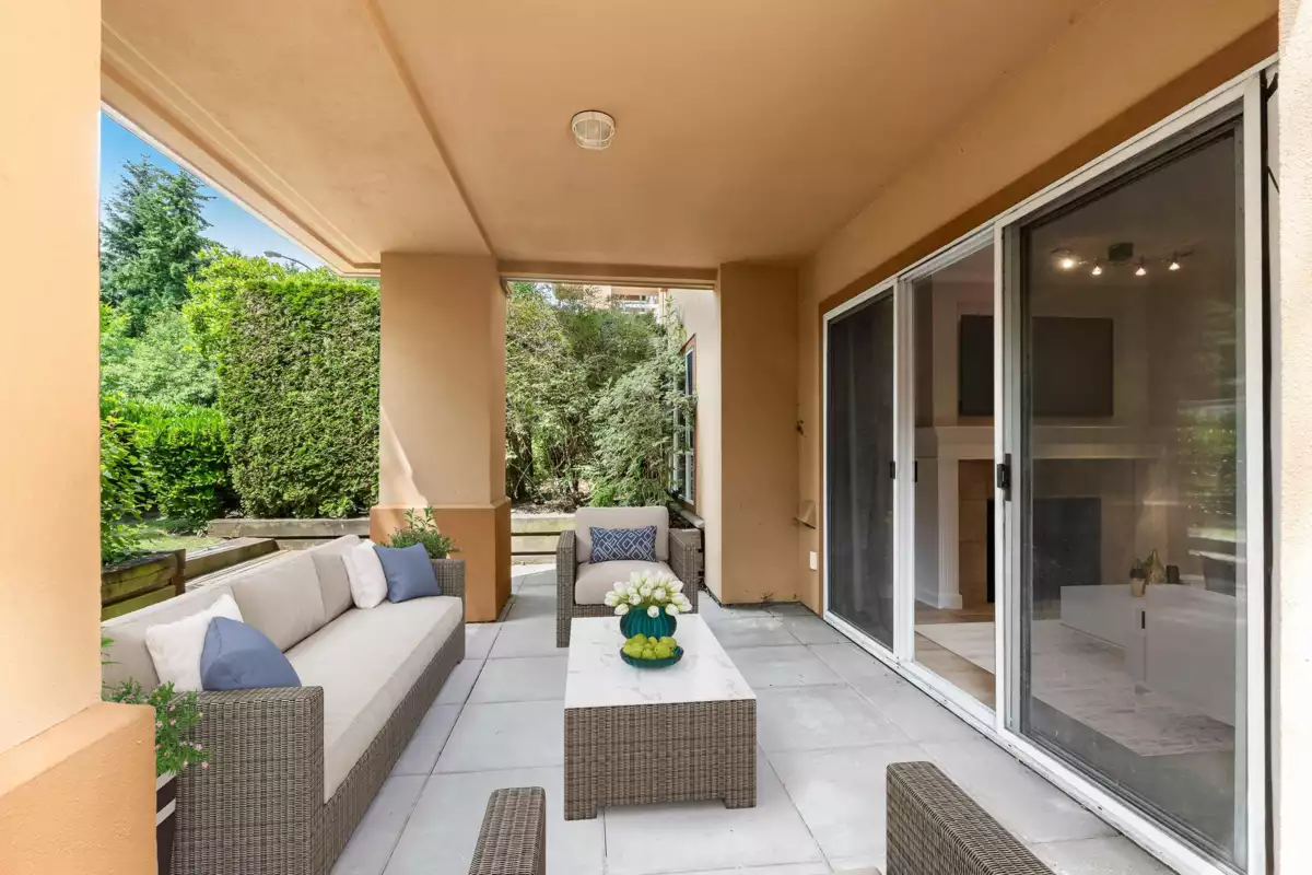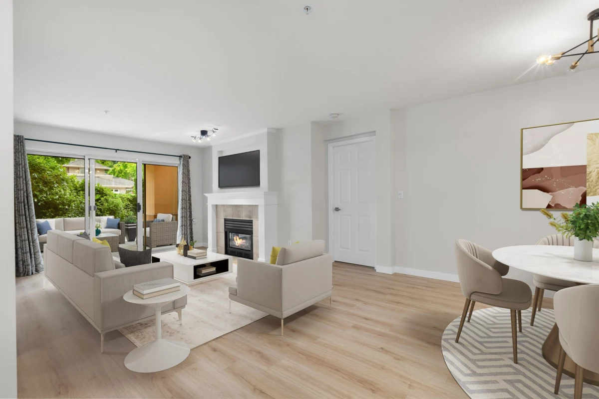 Enjoy privacy and sunshine in this updated ground-floor SOUTH facing unit at Villa Pacific, featuring 2 large bedrooms, 2 bathrooms, 2 parking and an expansive patio perfect 297 sqft patio. With bedrooms thoughtfully separated for privacy, the home feels bright, open and maintained well through the years with white cabinetry, stainless steel appliances, and a cozy gas fireplace. The primary bedroom offers a walk-in closet and ensuite large enough for any accessible needs. Pet-friendly and perfect for dog owners or garden enthusiasts. Located at the end of the cul-de-sac, Footsteps to Semiahmoo Trail, transit, shopping, and restaurants. Move in Anytime