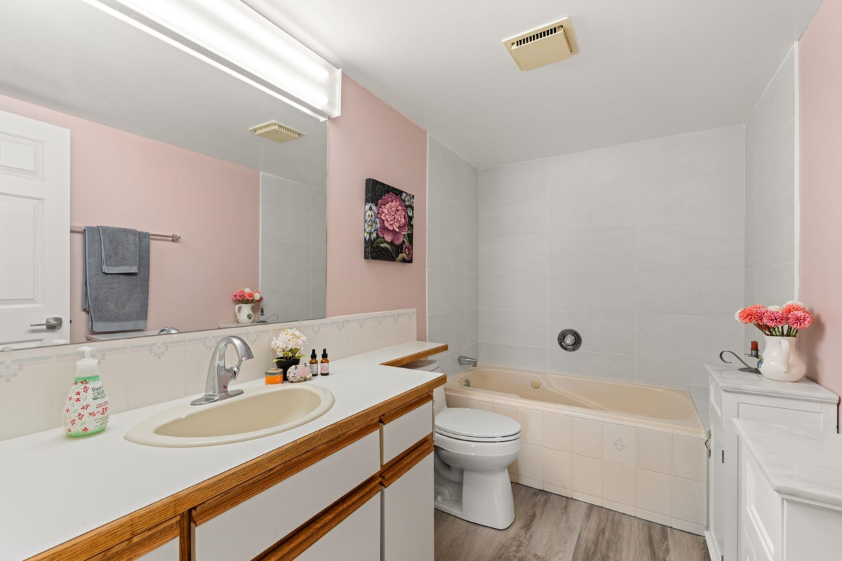 Welcome to this spacious 2 bed, 2 bath CORNER unit condo with 1,283' of living space in a beautifully cared-for 55+ building in central Abbotsford. This home has been thoughtfully updated with many RENO's including: NEW KITCHEN CABINETS, glass backsplash, UPDATED engineered flooring in the living areas and bedrooms, vinyl in the kitchen and bathrooms, new toilets, one new vanity, and updated baseboards. Enjoy in-suite laundry, his & her closets, a large patio, private storage locker, and secure underground parking. The building, built in 1988, has been well maintained and offers great amenities including a guest suite, workshop, and amenities room. Bright, inviting layout, close to Seven Oaks Mall, Transit Hub, Mill Lake park, and on the quieter NORTH side of the building!!!