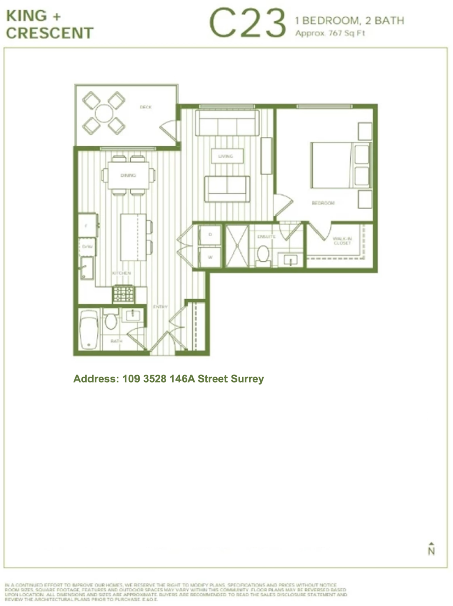Welcome to King + Crescent by award-winning Zenterra in vibrant South Surrey! This rare 1 bed, 2 bath ground-floor unit features a smart, functional layout with a spacious dining area, generous primary bedroom, and a over-sized patio perfect for morning coffee or relaxing in privacy. Includes 1 parking & 1 storage locker. Located in the desirable Semiahmoo Trail & Elgin Park school catchments, close to shopping, dining, parks, and Nicomekl trails. Easy access to Hwy 99, Crescent Beach, and the US border. A beautifully designed home with unmatched value—don’t miss your chance to view this gem in person!