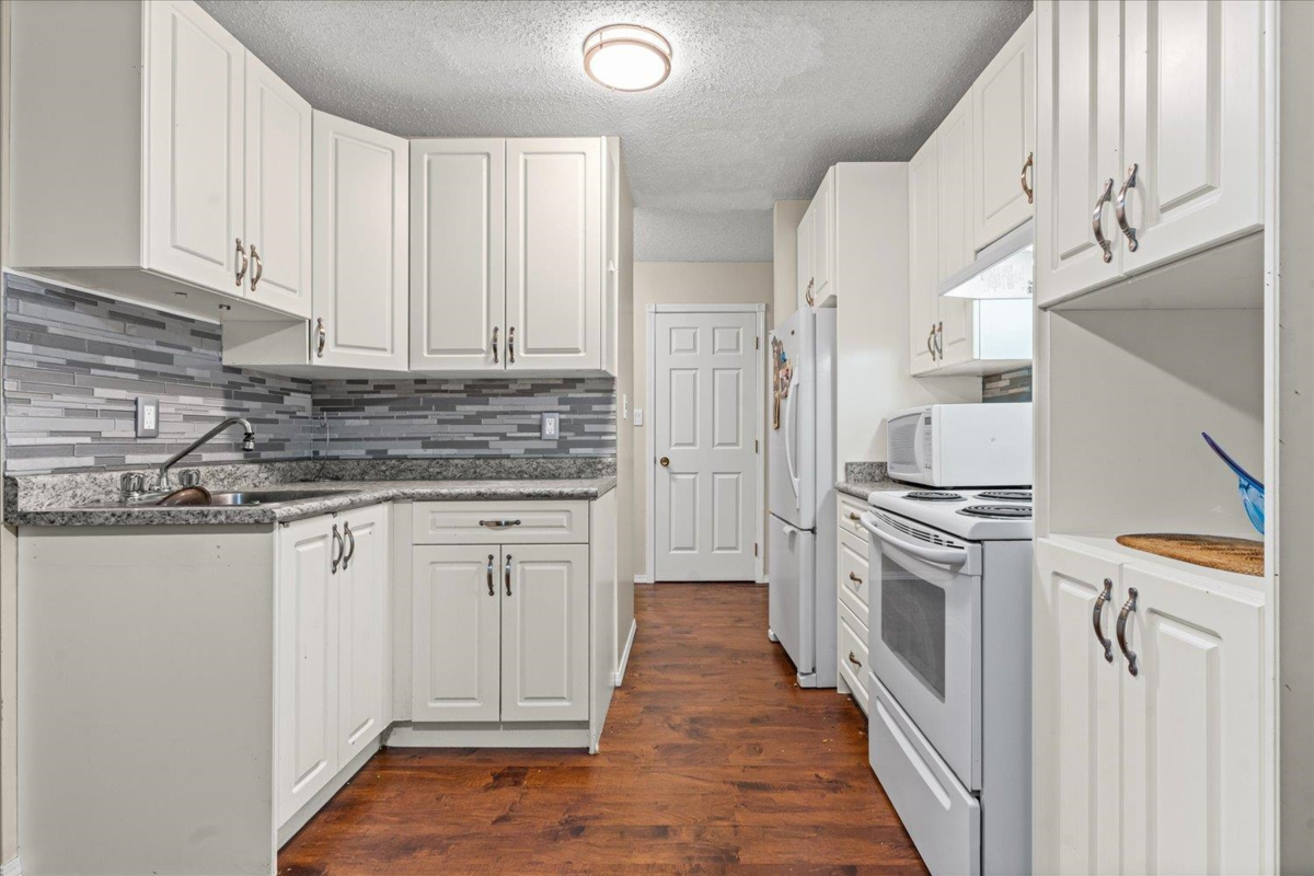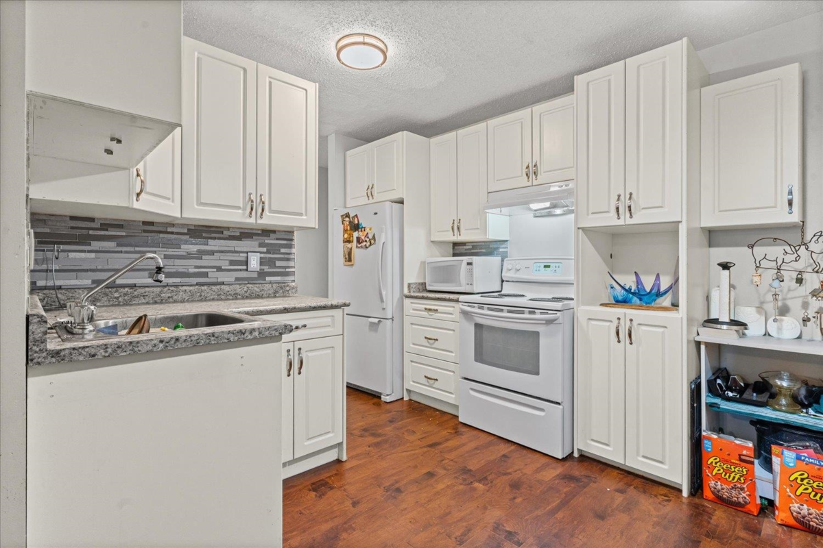 EXTREMELY MOTIVATED SELLER! Great value here with one of the lowest priced 1 bedroom/1 bathroom condos, located at Ridgewood Court. The updated Kitchen offers newer cabinets, countertops, tile backsplash and flows into the open concept dining/living room and out to the private sundeck that overlooks a greenspace! The low strata fee of $305.93 includes heat & hot water! One secure under-building parking and storage locker included. Conveniently located steps to shopping, restaurants, transit, recreation, hospital and medical buildings! Relish the peace of 55+ adult living. Call today to book your private showing!