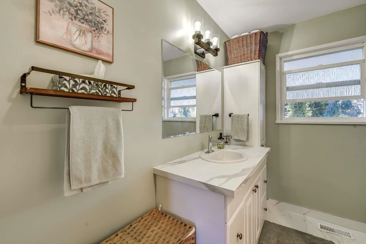 This Well kept home sits on generous size lot with wide Front, and Back lane update over time. Newer roof .Hot water tank, updated double pan window tastefully updated kitchen and bathroom, Fully fenced yard ,Gardening ready to go fruit trees. main floor 3-bed room, with 2pc in suite and 1 full bath . Fully finished basement with full bath and separate Entrance currently used by family . Can be changed into Mortgage helper or in-law suite. Guildford Mall library, indoor rec center just 10to15 minutes walk or quick drive . variety of restaurant coffee shop close by both levels of school . Easy access to Portman Bridge and Highway1. Bus service gateway to sky train station on 108 ave .Hurry before its gone open house Sunday nov 30 from 2to4