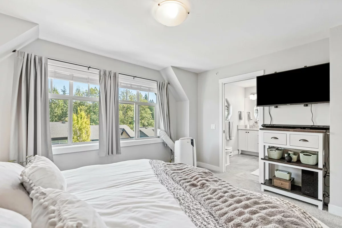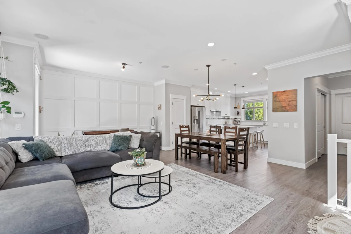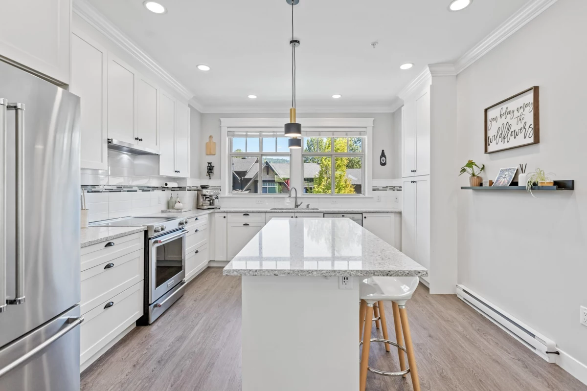 WOW! A Must-See Townhome in Albion’s Magnolia Grove! A Rarely available END UNIT with Private Setting, Partial Greenbelt Views & Playground Access as well as an abundance of Windows for Natural Lighting!! The Spacious Gourmet Kitchen features Quartz Counters, Lots of Extra Storage & Pantry Area, Garburator, Undermount Lighting and flows into the dining and living areas with built-in Bluetooth speakers and an Electric Fireplace. Upstairs features a Spacious Master Bedroom, Spacious Ensuite w/ Large Glass Shower, Walk-In Closet & Plenty of Storage! The MASSIVE 4 BAY FULL GARAGE is a RARE FIND and ideal for Large Vehicles, Toys, Storage, Work Area & much more! The home is roughed-in for HEAT PUMP, and includes Central Vaccum & Security System!