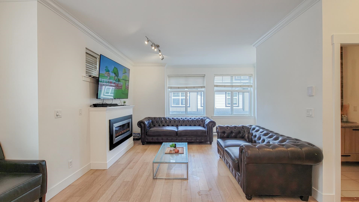 This stunning corner unit townhome offers an abundance of natural light with extra windows, creating a bright and inviting atmosphere. The modern kitchen features a tall pantry, sleek marble countertops, and a long island with bar seating—perfect for entertaining. Cozy up in the formal living room with an elegant fireplace, or enjoy the additional family room and den on the main floor. Additional upgrades include laminate flooring, epoxy-coated garage flooring, and modern lighting. Conveniently located near top-rated schools, shopping, and recreation, this home is a must-see!