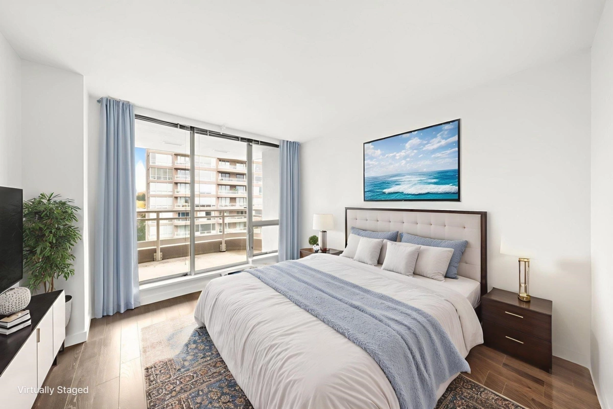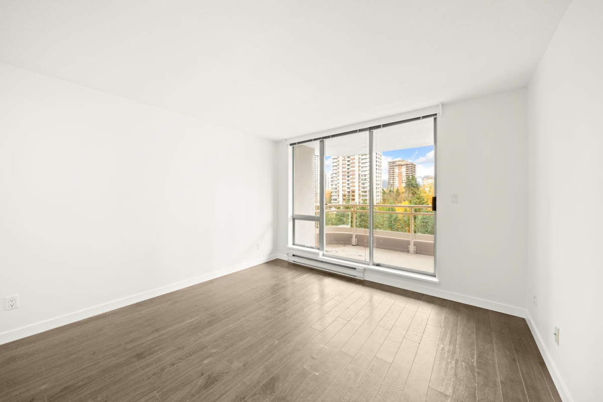 Welcome to Strathmore Towers — an ideal opportunity for first-time buyers and savvy investors! This well-designed 670 sq ft one-bedroom home offers a highly functional layout with generous living space and a large 130 sq ft balcony to enjoy open city views. The unit includes one secured underground parking stall and a dedicated storage locker for added convenience. Perfectly located just steps from Lougheed Town Centre, SkyTrain, shops, and restaurants, this home puts everyday essentials right at your doorstep. A fantastic combination of comfort, location, and value.