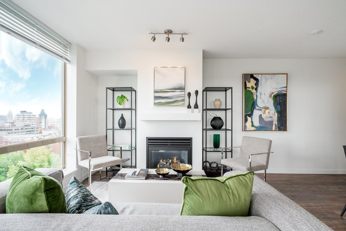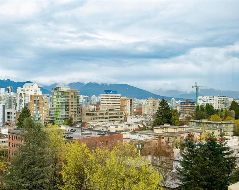 Luxury corner sub-penthouse with beautiful ocean, mountain, and city views at the posh “Compton”, a high-quality, concrete Polygon building located on a quiet tree-lined street in the highly-desirable South Granville area. Great layout includes 2 spacious bedrooms (primary bedroom accommodates king bed), 2 bathrooms + den + flex room, open-concept floorplan with gas fireplace. Bright kitchen features s/s appliances and granite counters. Situated just blocks to cafes, shops, theatre, and restaurants on Granville Street, and easy stroll to Granville Island and seawall. Nearby bus stops and coming-soon subway station. 1 parking (potential EV chrg). Pets: 1 dog or 2 cats allowed. Perfect for those seeking a very elegant home in a lovely walkable neighbourhood.