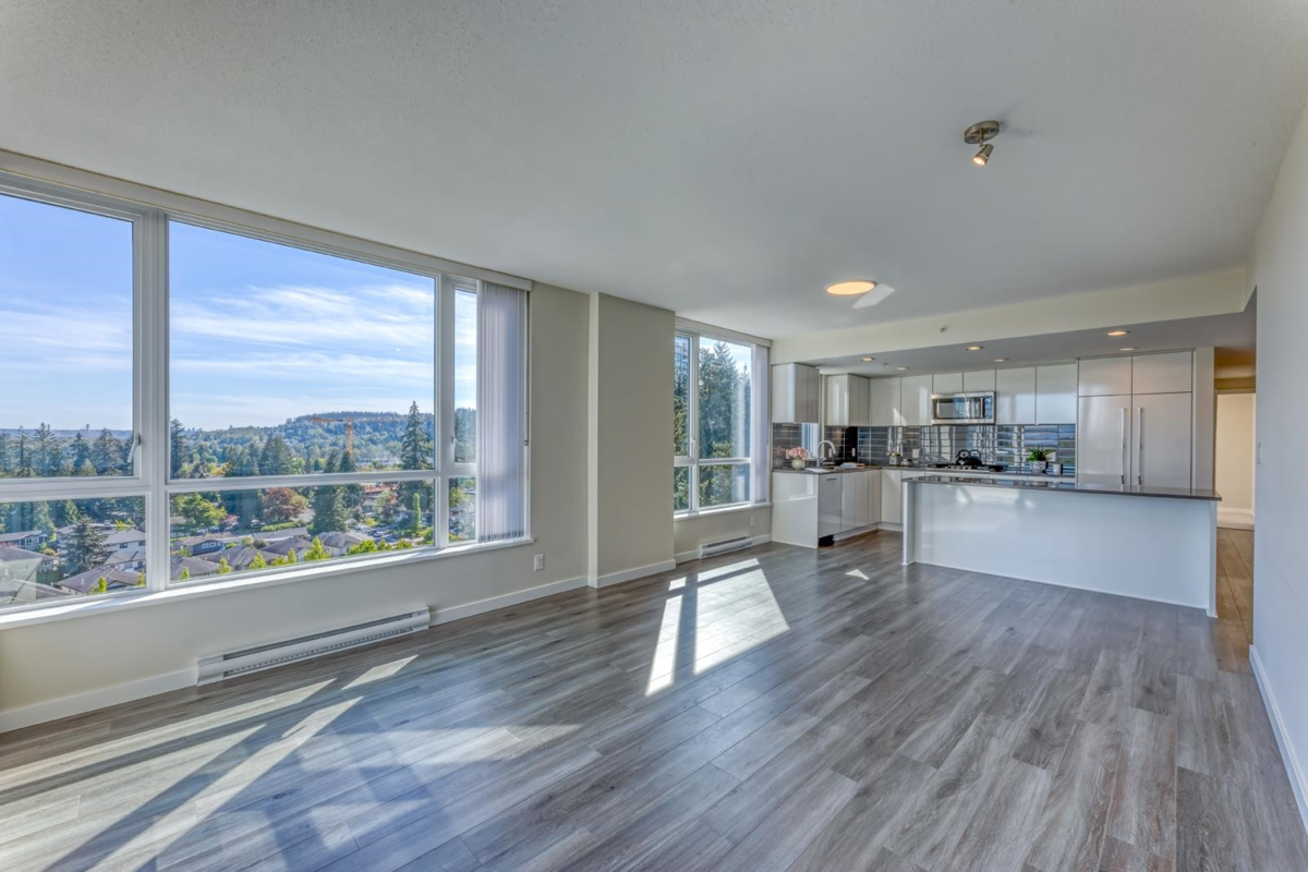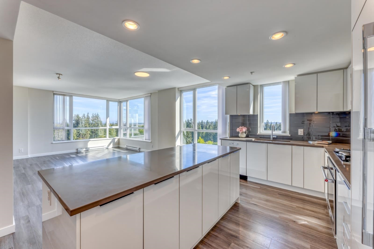 REDUCED! BEAUTIFUL VIEW! Rarely available 3 bed 2 bath 1260 SF SE corner home in the sought-after Windsor Gate Community by Polygon! Boast Open-Concept design, laminate flooring in living space, large picture windows. Gourmet kitchen with Huge Island, Quartz countertops, Gas stove & S/S appliances. South-facing Primary bedroom with Walk-in Closet & 5 PC Dream Ensuite. Spacious 2nd & 3rd bedroom. Side by Side Front load Laundry. Covered Balcony. 1 parking 1 locker. Original Owner, Like New Condition. The building is equipped with EV parking and exclusive amenities. Residents have access to the Nakoma Club, offering an pool, fitness center, and lounge. Located steps from Coquitlam Centre, Lincoln SkyTrain, Town Centre Park and Schools.
