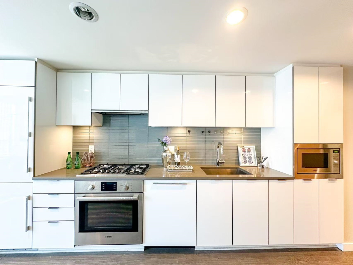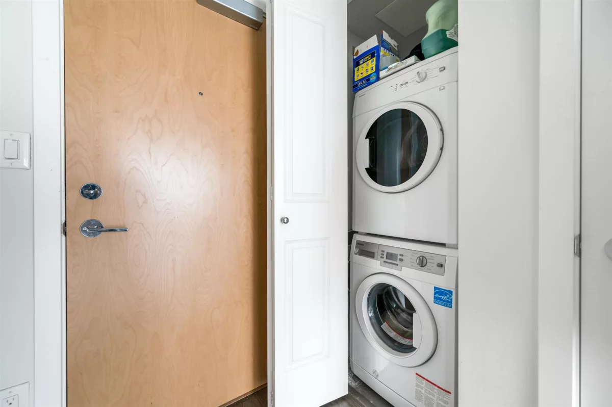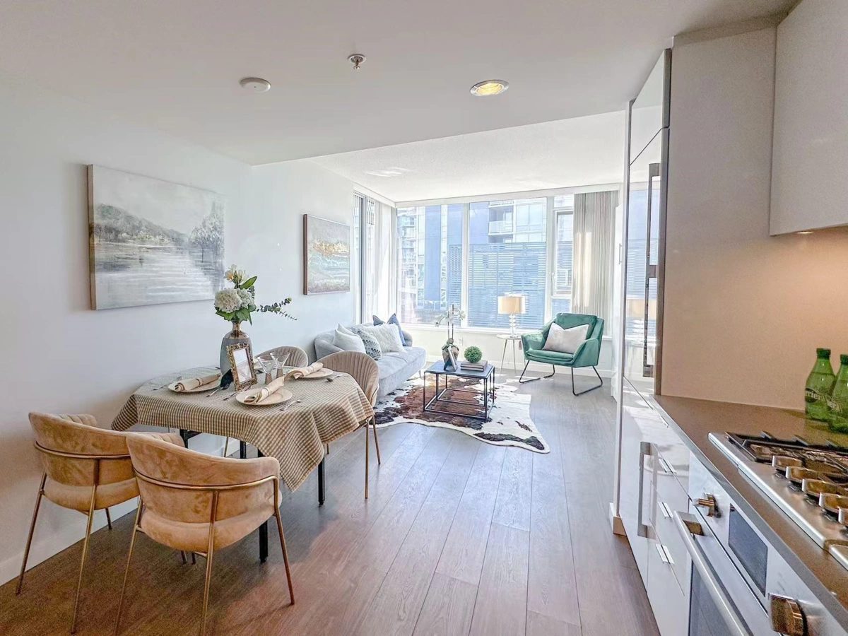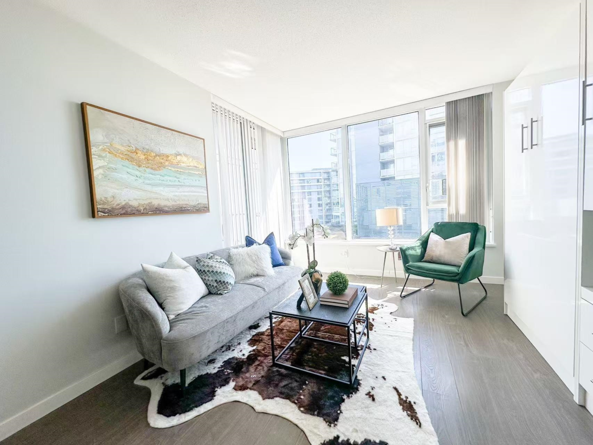 Welcome to Avanti by Polygon! This bright and spacious south-east facing 1-bedroom concrete apartment with ultimate convenience. Located on a quiet street across from a park, just steps away from Aberdeen Centre, Continental Shopping, Yaohan Centre, Union Square, and the new Canada Line station. Enjoy a wide range of resort-style amenities, including a swimming pool, hot tub, dance/yoga studio, lounge, and fitness center. Air cooling & heating system for year around comfort. Bosch brand gas cooktop, self-cleaning wall oven, energy efficient dishwasher, Panasonic microwave and integrated refrigerator completes this ultra-modern kitchen.Bonus: built-in muffin two beds! 1 Parking + 1 Locker included.Public EV charger .Open House 1-4pm Sun , Nov 2