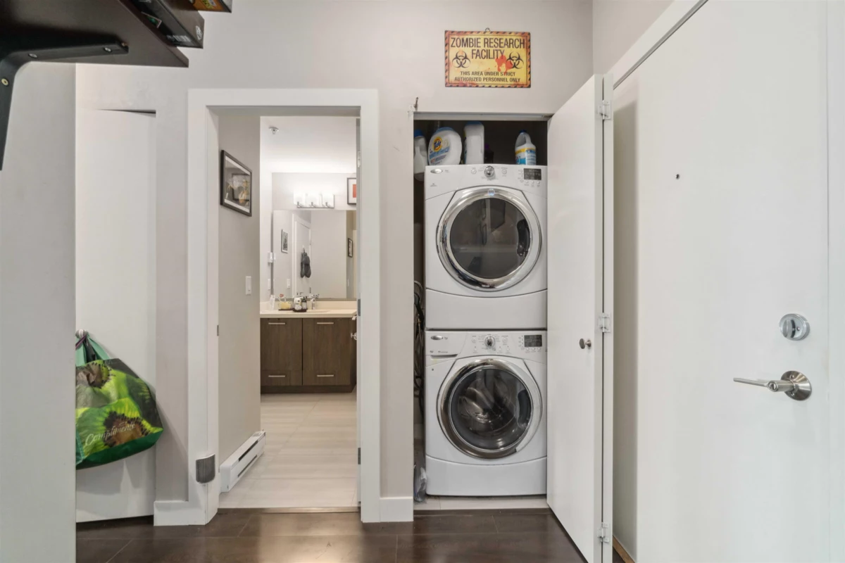 Great location in the Austin Heights neighborhood of West Coquitlam. Situated on a quiet side street, you can walk to Blue Mountain park, Vancouver Golf club or all the shopping and restaurants along Austin. The 4 storey Charland building with its historic brick architecture, features 9 foot ceilings, open plan layout, gourmet kitchen with quartz counters, custom designed cabinets, high end stainless steel appliances & centre island with built in microwave. Halogen pot lights & under cabinet lighting, Porcelain tile flooring in bathroom & laundry closet. Soaker tub with full height tile surround. In suite laundry with front loading stackable washer and dryer. 1 bedroom with a den area. Enjoy your outdoor living with a covered south facing patio. Great for investment or move in.