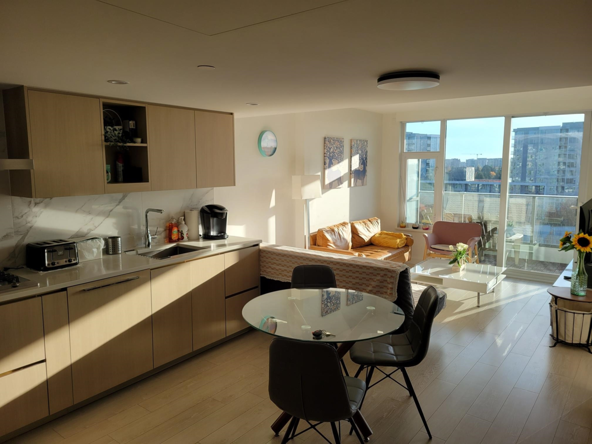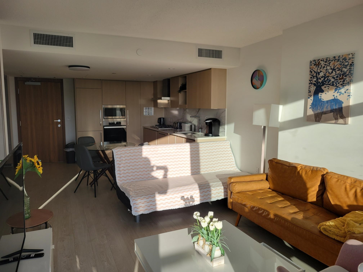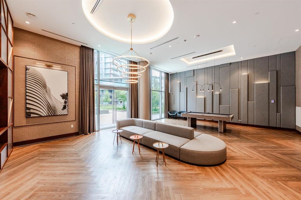 Galleria Da Vinci by Concord. Bright SW facing 1 Bdrm unit. Enjoy the nice city, mountain and water views from the full sized balcony. Just a few steps away from Capstan Station, Union Square, with all the shops, restaurants and daily necessites right at your doorstep. Extensive use of wide plank laminate flooring and quartz througout the open kitchen and bathroom. Miele appliance. Galleria makes with smart technology of the central A/C smart thermostats, wireless NFC entry, smart bidget toilet with remote. Amentities offer high-quality lifestyle experience, featuring such as indoor pool, whirlpool ,hottub, sauna & steam room, gym, heated stone lounge, party room with pool table & ping pang table, karaoke, card, and mahjong rooms. 1 EV parking & 1 bike locker. A REAL PLEASURE TO VIEW.