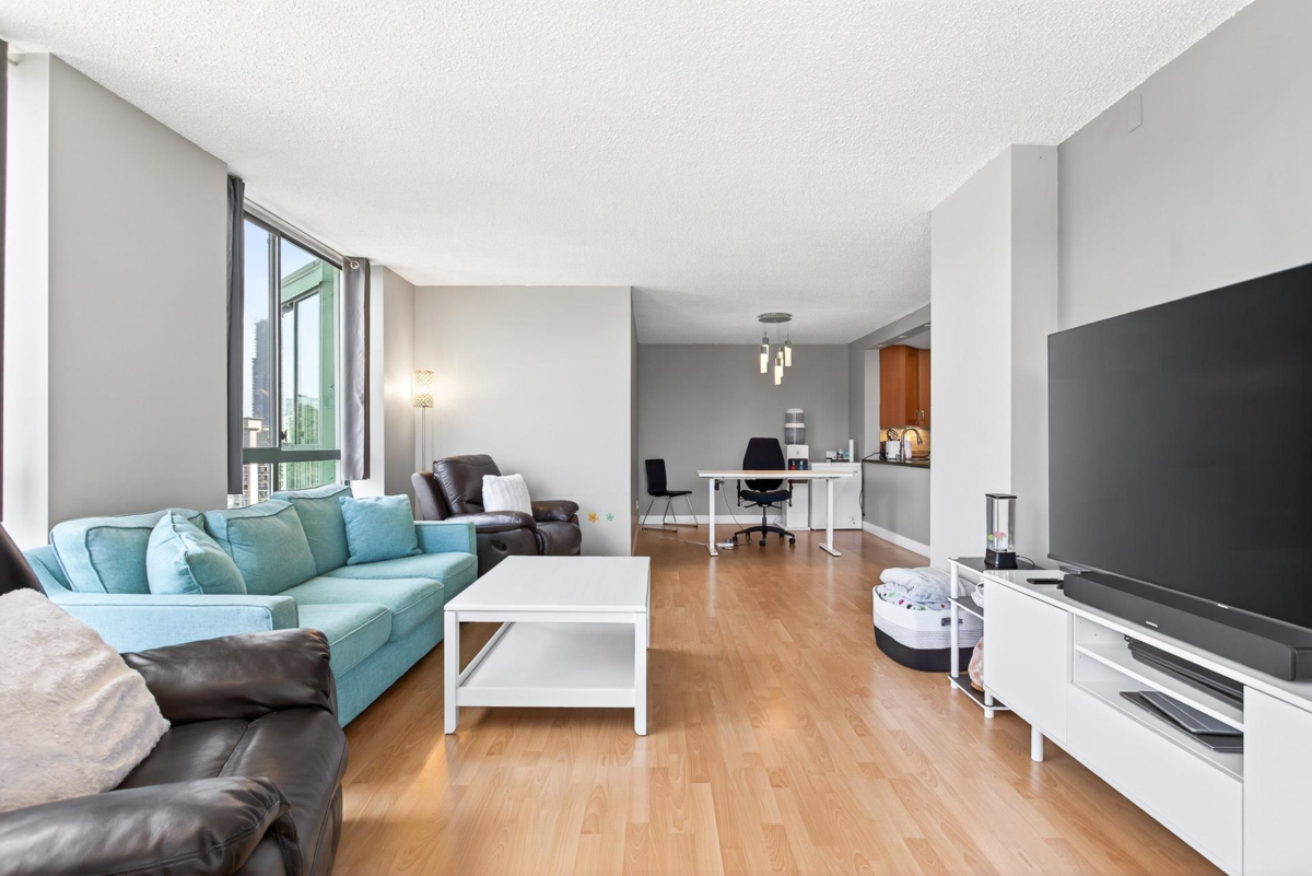 GREAT VALUE IN THIS WELL MAINTAINED BUILDING, BUILT BY "BOSA". CRONER UNIT, SUNNY, BRIGHT WITH LARGE BALCONY OVERLOOKING PARK. VERY FUNCTIONAL LAYOUT, OPEN CONCEPT WITH LARGE KITCHEN, BEDROOMS, IN SUITE LAUNDY WITH EXTRA STORAGE, GREAT FOR A LARGE FAMILY! VERY CENTRALLY LOCATED, MINUTES WALK TO SKYTRAIN STATION, SHOPPING AND RESTUARANTS. DON'T MISS THIS ONE.