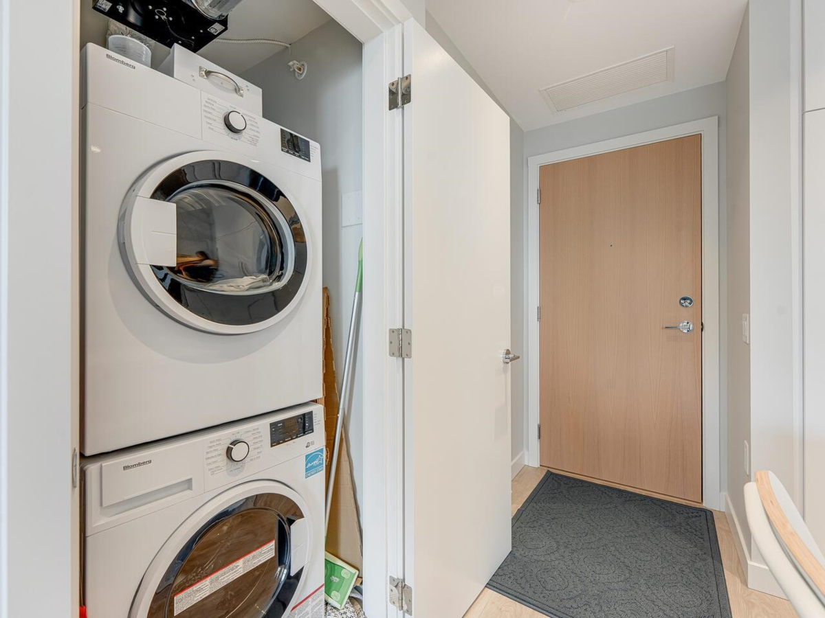 Ocean View 1-Bedroom in West Wind by Polygon! Newer concrete building located in the heart of UBC campus, within walking distance to the university, golf course, shops, restaurants, and the new community centre. Surrounded by nature and top schools. This bright 1-bed, 1-bath home features an open layout with A/C, a designer kitchen with quartz countertops and premium appliances. Expansive windows showcase stunning ocean and forest views. Includes one parking and one storage locker. Extremely well kept, like new, with a great tenant and good rent. Great for investment buyers. Book your private showing today!