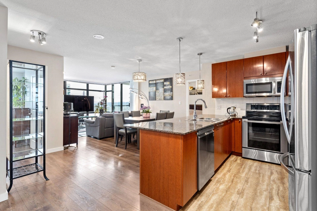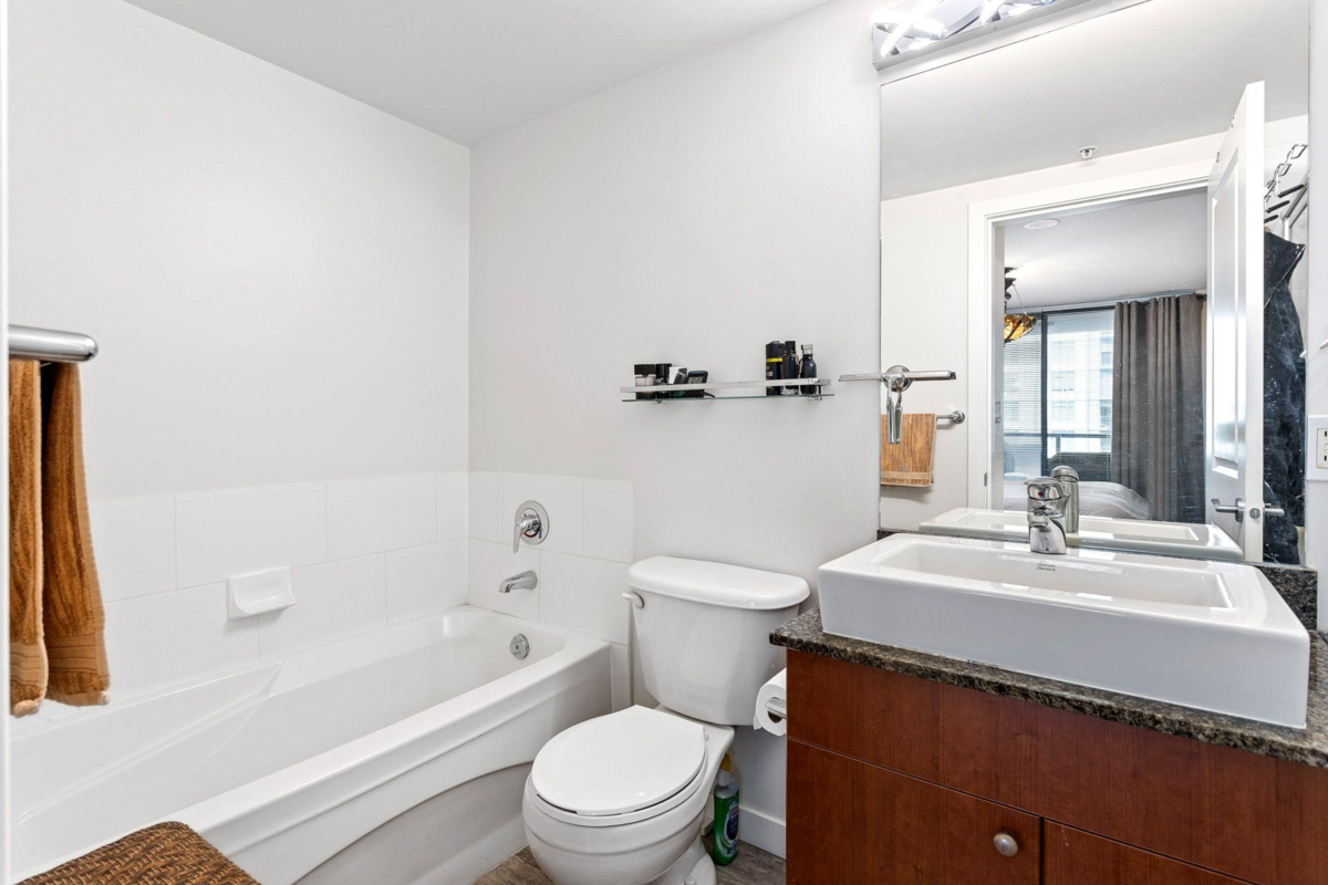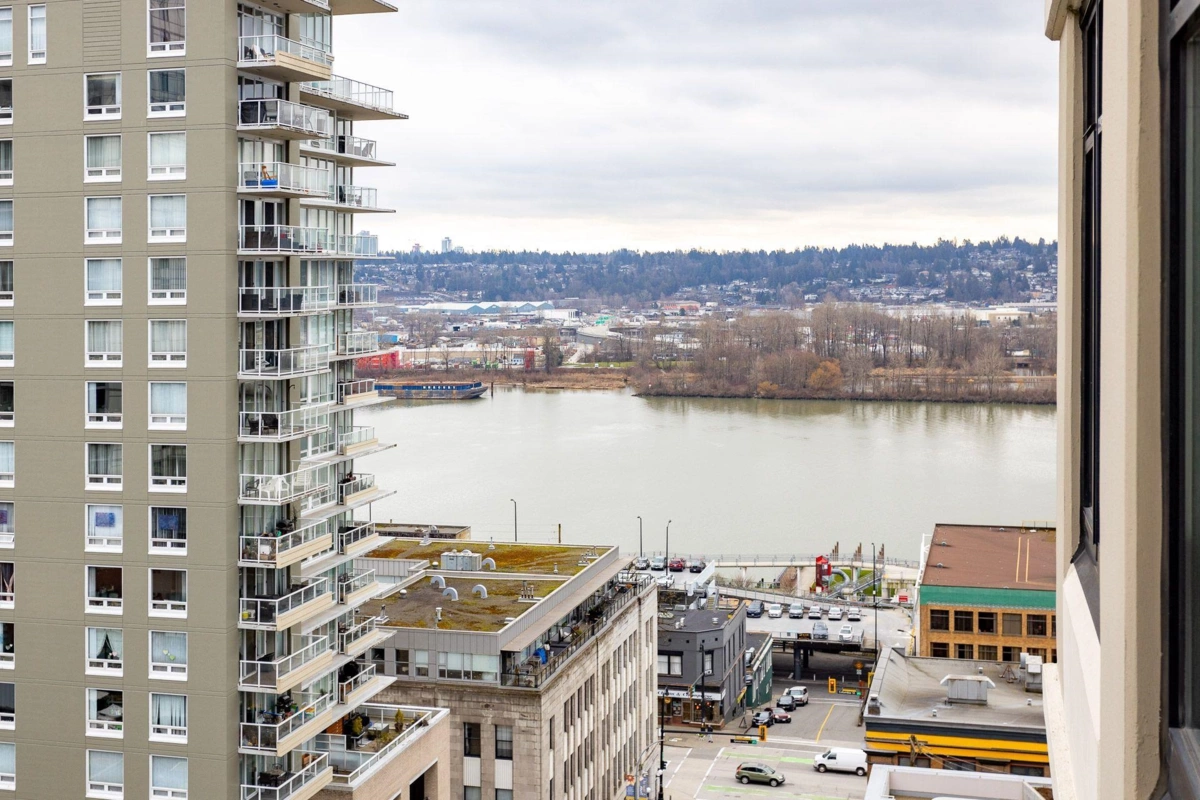 Best value in the building! Welcome to The POINT by Onni, located in the heart of Downtown New Westminster. This stunning unit boasts floor-to-ceiling windows, offering breathtaking city, water, and mountain views. The open-concept layout places the bedrooms on opposite sides for added privacy. Enjoy wood floors, sleek granite SS appliances, and a cozy fireplace in the living room. A spacious balcony, accessible from both the living room and the primary bedroom with an ensuite, extends your living space. Just steps from the SkyTrain, shops, and restaurants, or take advantage of the building's top-tier amenities, including an indoor pool, sauna, hot tub, rec room, media room, and fitness center. Bonus: Comes with two massive storage lockers! 2 Pets allowed