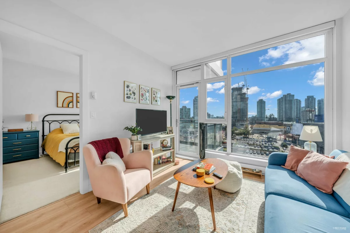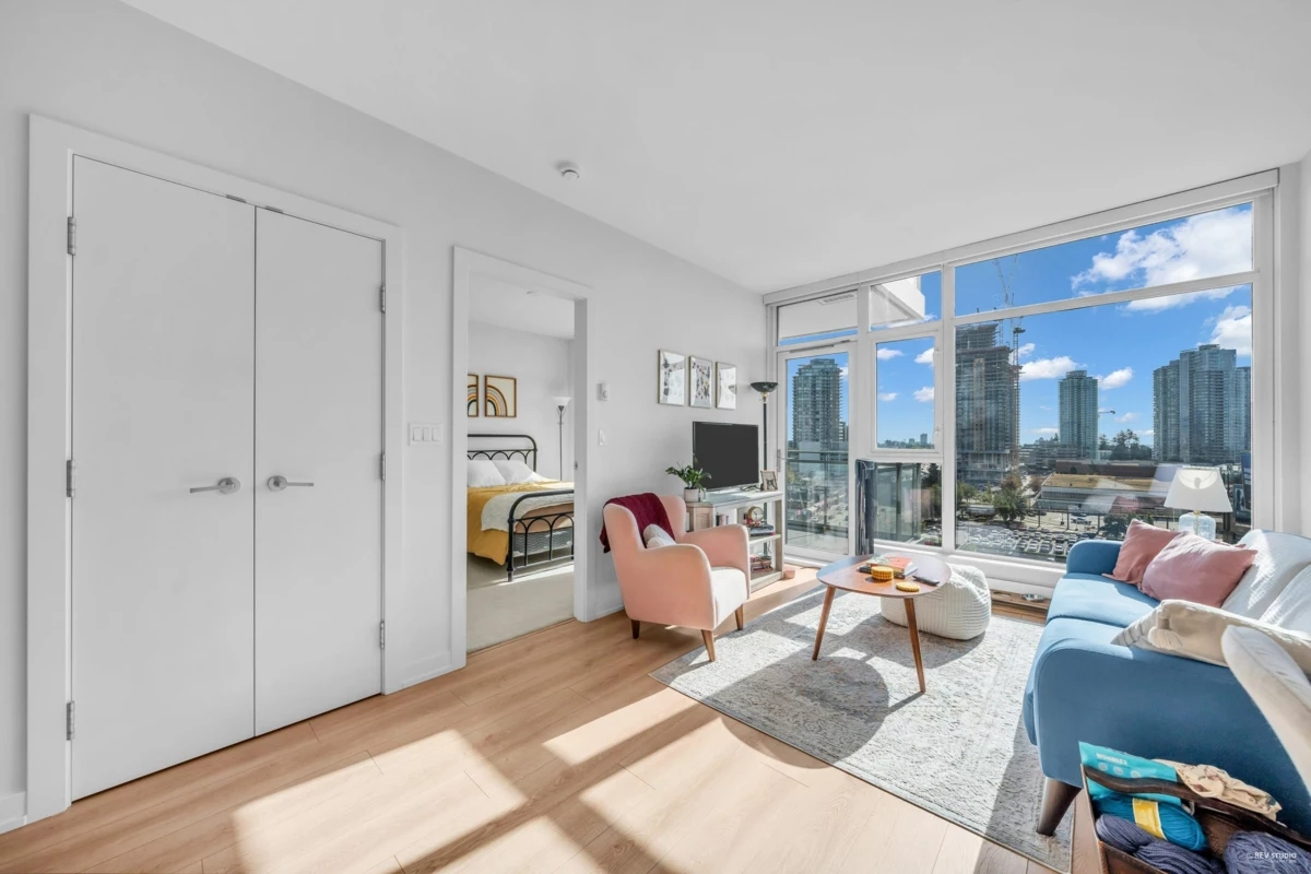 CENTRAL LOCATION!!! Discover the pinnacle of city living at STATION SQUARE'S 35-storey Tower One! A sunlit one-bedroom with spanning 603 sq ft, complete with a private balcony nestled on the 11th floor. Greet each morning with weeping southeast views that frame the energy of dynamic Metrotown, while the hallway-free open floor plan fills the space with natural light and serene quiet. Indulge in top-tier amenities: 24/7 concierge and security for peace of mind, a fully equipped fitness centre, a yoga studio, a welcoming guest suite, a lively entertainment pavilion, and lush playgrounds and gardens for relaxation. Location is unbeatable - directly connected to Metropolis and Crystal Mall for shopping and dinning. Plus, just steps from transit stops, the local library, and community centre.
