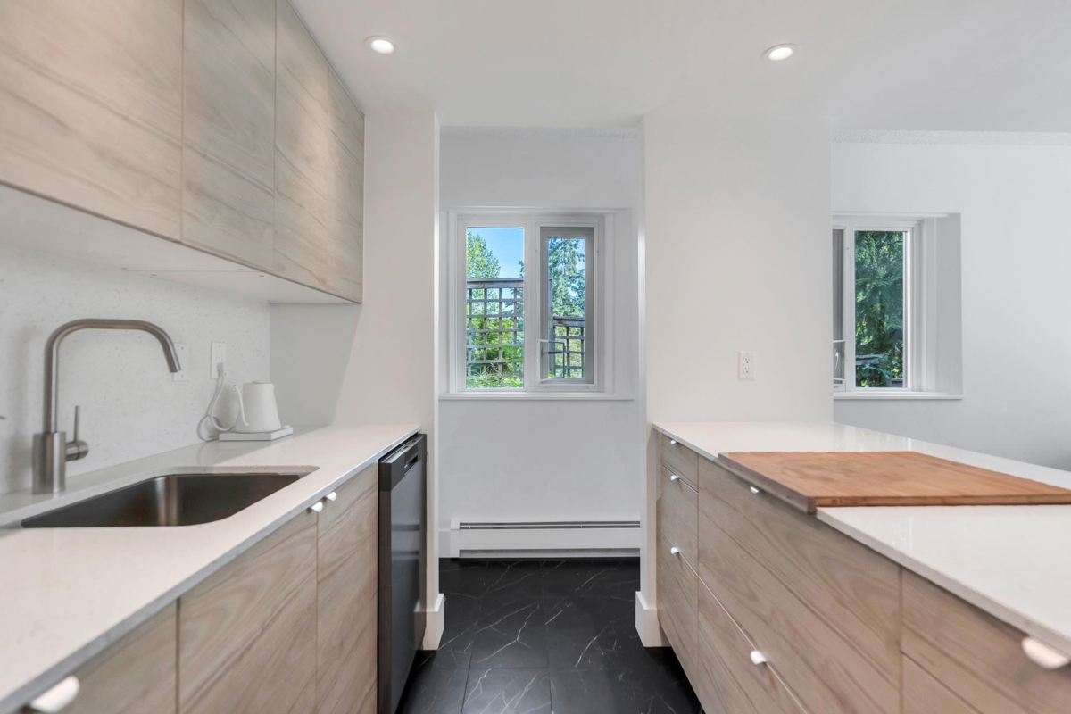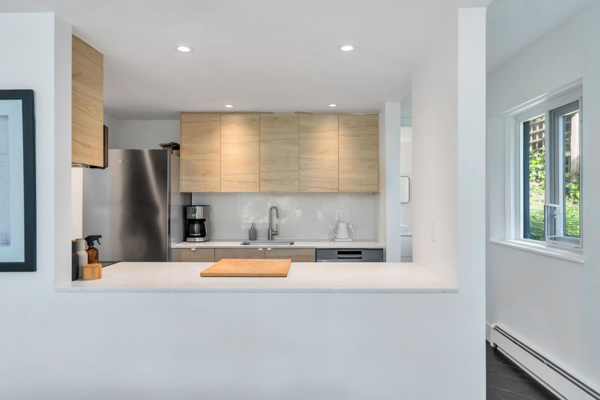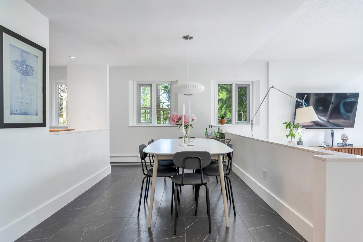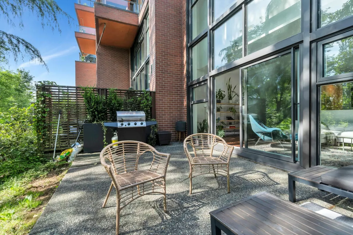 Stunning ground floor, loft style corner unit in Tsawwassen’s favourite building, The Classic. This private 1,458 sq.ft. 2 bedroom home offers a sunken living room, soaring floor to ceiling windows, and golf course views. Designed to maximize natural light, the layout is both functional and inviting. Recent upgrades include beautifully renovated bathrooms, fresh paint, new carpet, and a sleek open concept kitchen with stainless steel appliances, quartz countertops, and porcelain tile flooring. The unit also comes with tandem parking and a storage locker. Perfectly located within walking distance to all of Tsawwassen’s best amenities, this exceptional home combines comfort, style, and convenience in one unbeatable package.