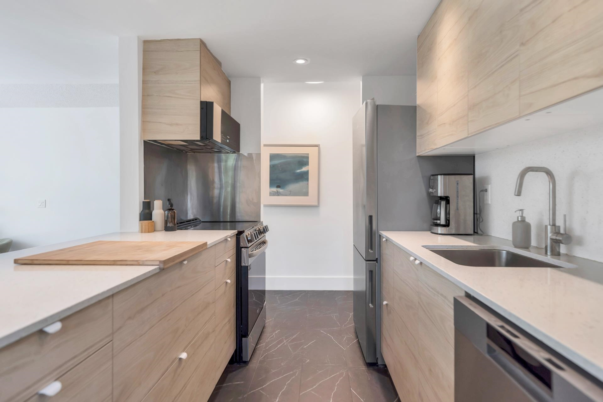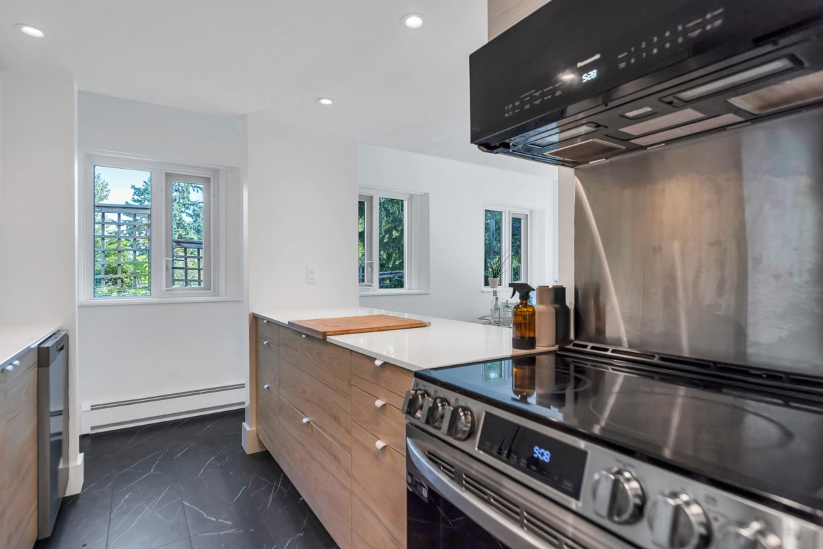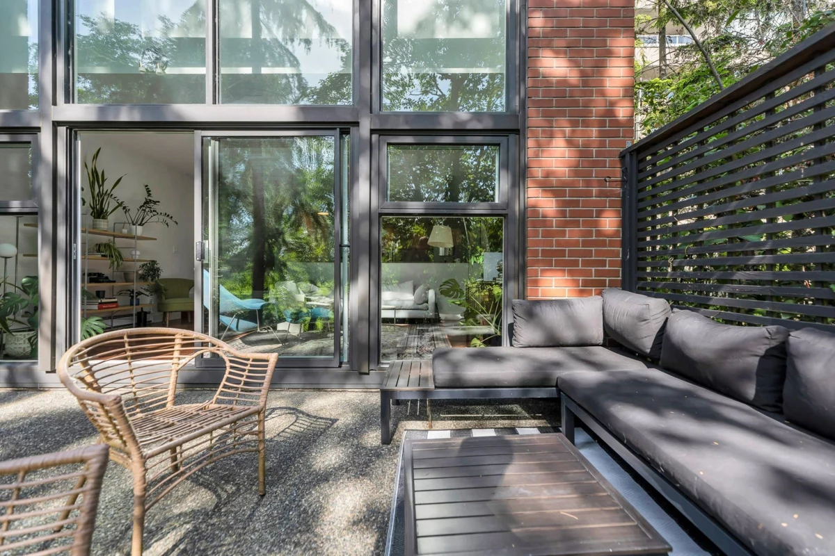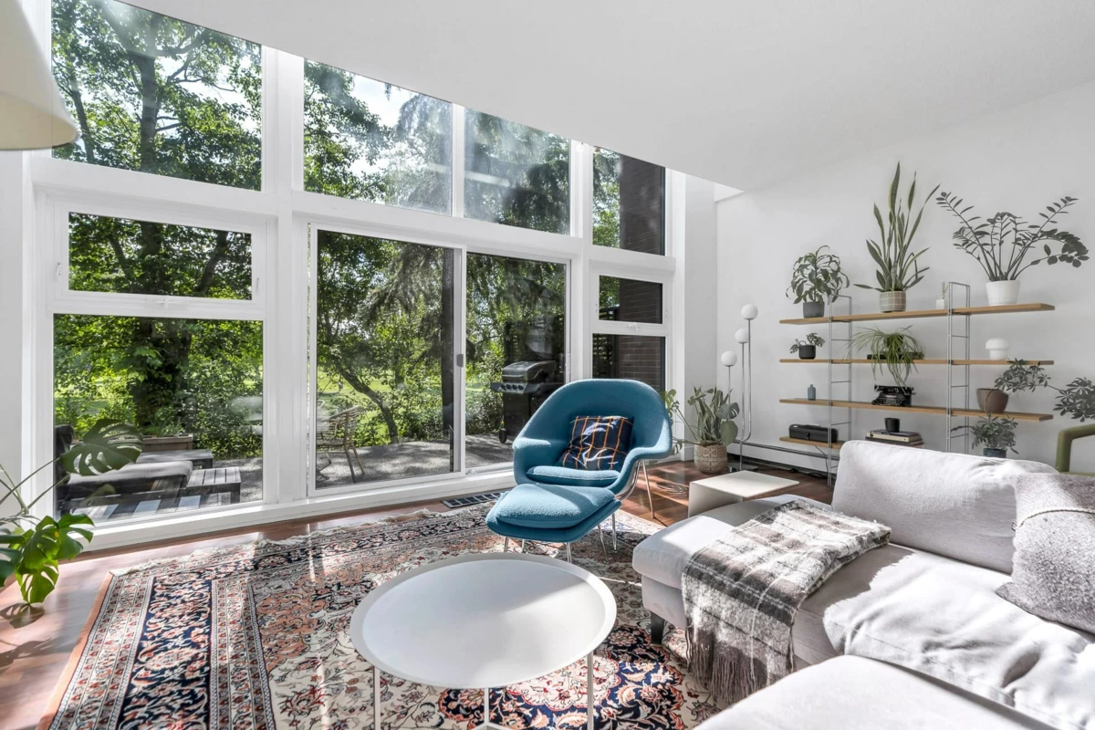 Stunning ground floor, loft style corner unit in Tsawwassen’s favourite building, The Classic. This private 1,458 sq.ft. 2 bedroom home offers a sunken living room, soaring floor to ceiling windows, and golf course views. Designed to maximize natural light, the layout is both functional and inviting. Recent upgrades include beautifully renovated bathrooms, fresh paint, new carpet, and a sleek open concept kitchen with stainless steel appliances, quartz countertops, and porcelain tile flooring. The unit also comes with tandem parking and a storage locker. Perfectly located within walking distance to all of Tsawwassen’s best amenities, this exceptional home combines comfort, style, and convenience in one unbeatable package.