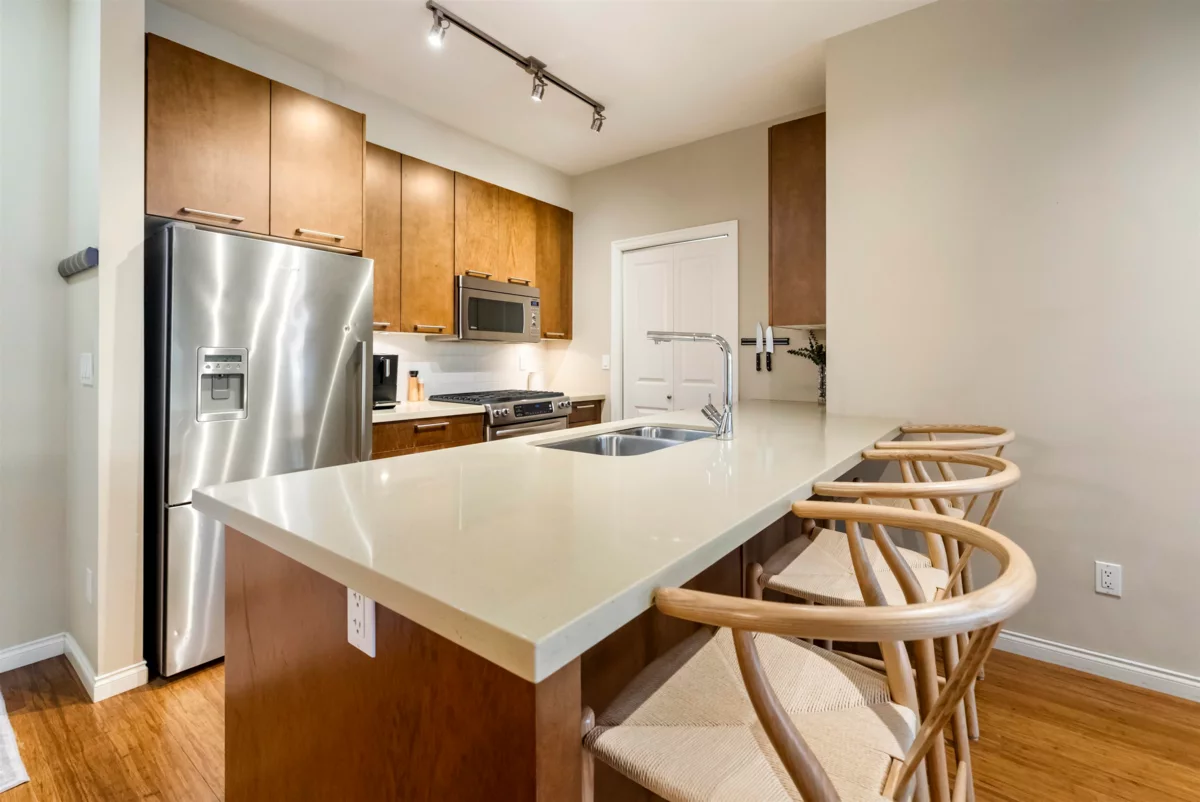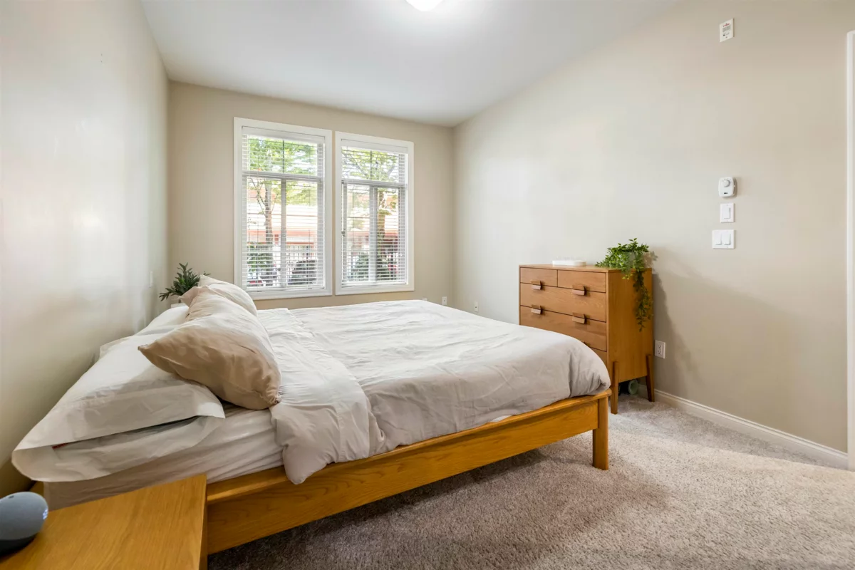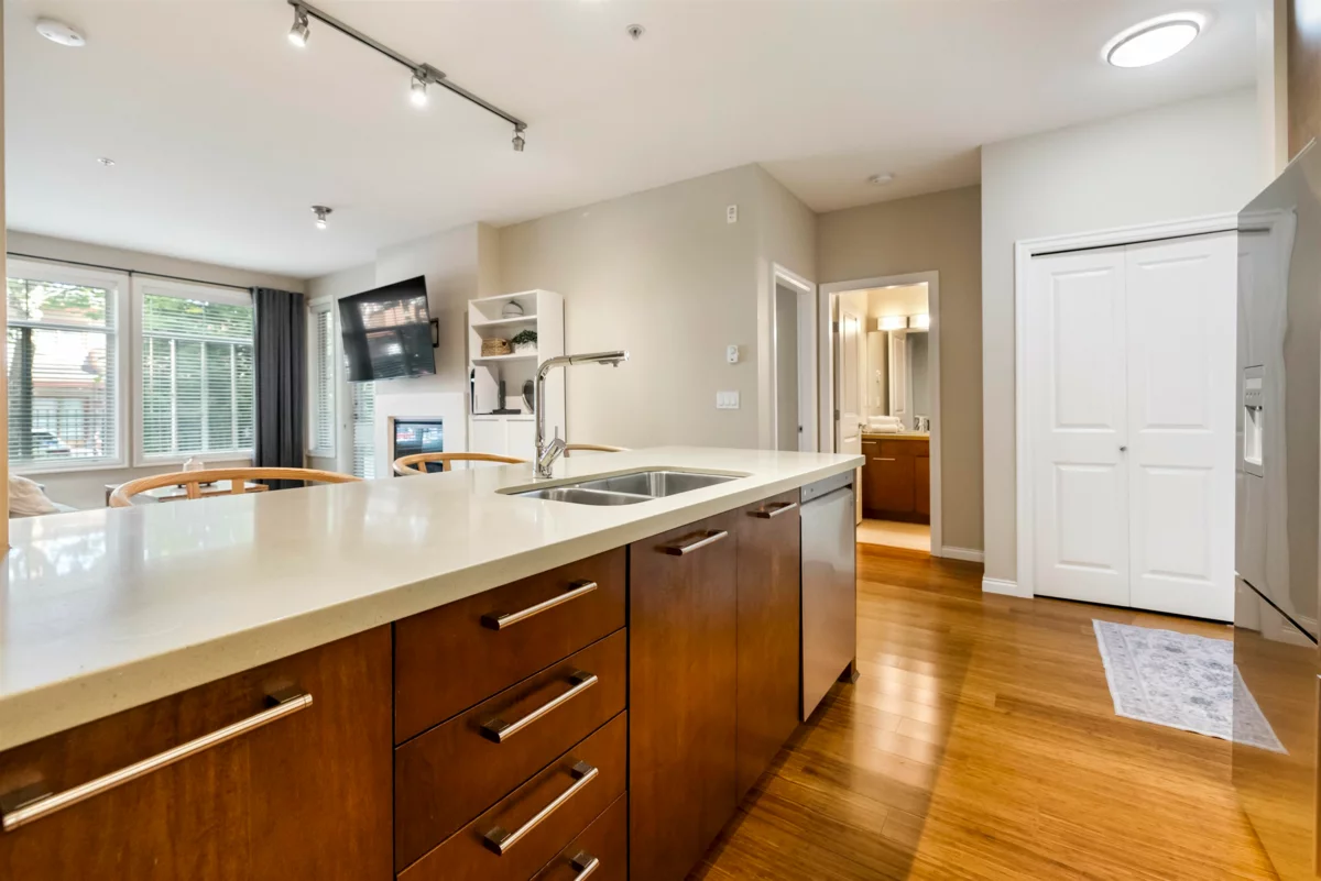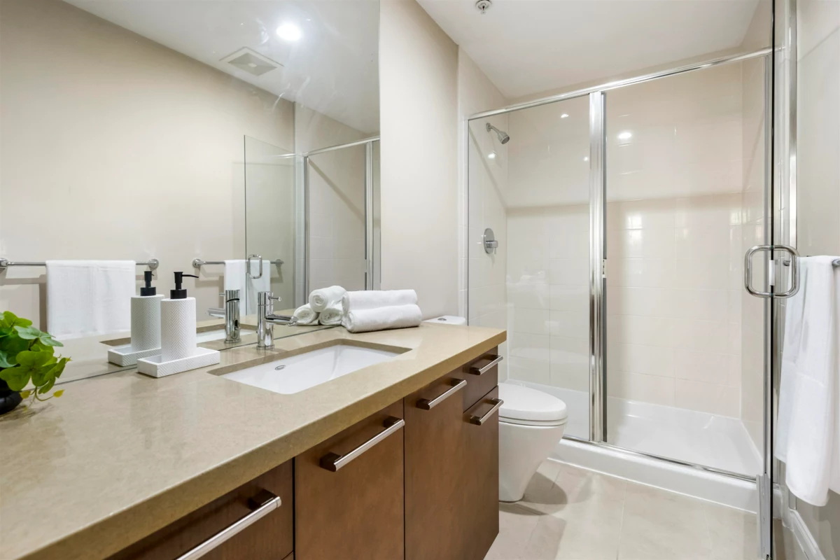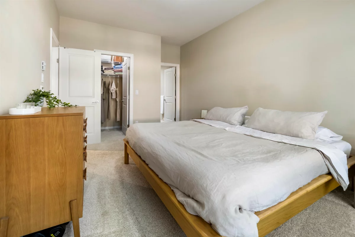 Tehama, built by Dawson Lakewood Developments is situated in the prestigious Rosemary Heights neighbourhood of Morgan Creek. Surrounded by tree-lined streets and scenic walking paths, this is one of the most desirable locations in South Surrey. This large 2 bed 2 bath offers a great layout with bedrooms on opposite sides. Huge primary w/ walk-in-closet & heated floors in the ensuite. S/S appliances in the kitchen, incl. a gas range + upgraded dishwasher, & quartz counters throughout. Bamboo flooring & updated carpeting in the bedrooms. 1 parking (with EV rough-in) & 1 storage locker + bike storage. This is a very well maintained building. Quick access to Hwy 99. & excellent shopping, dining, & amenities. Rosemary Heights Elementary and Grandview Secondary catchments.