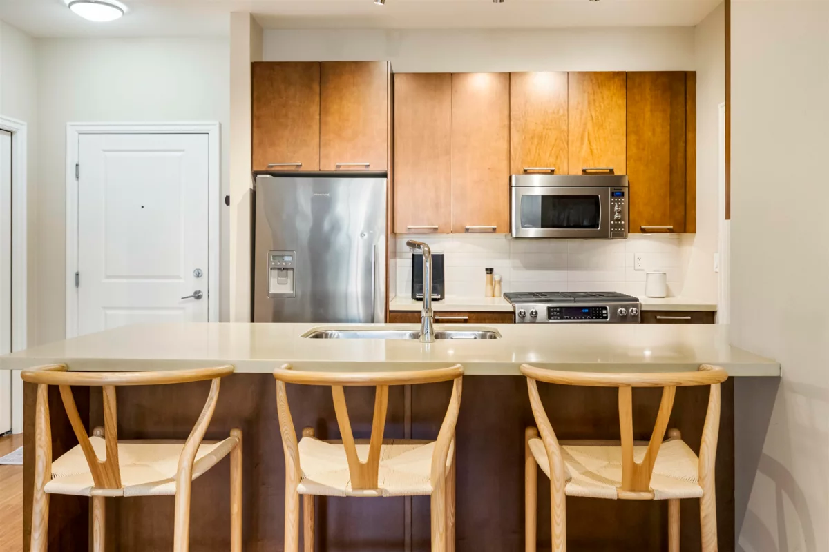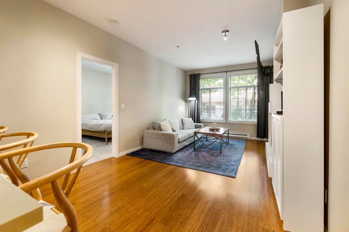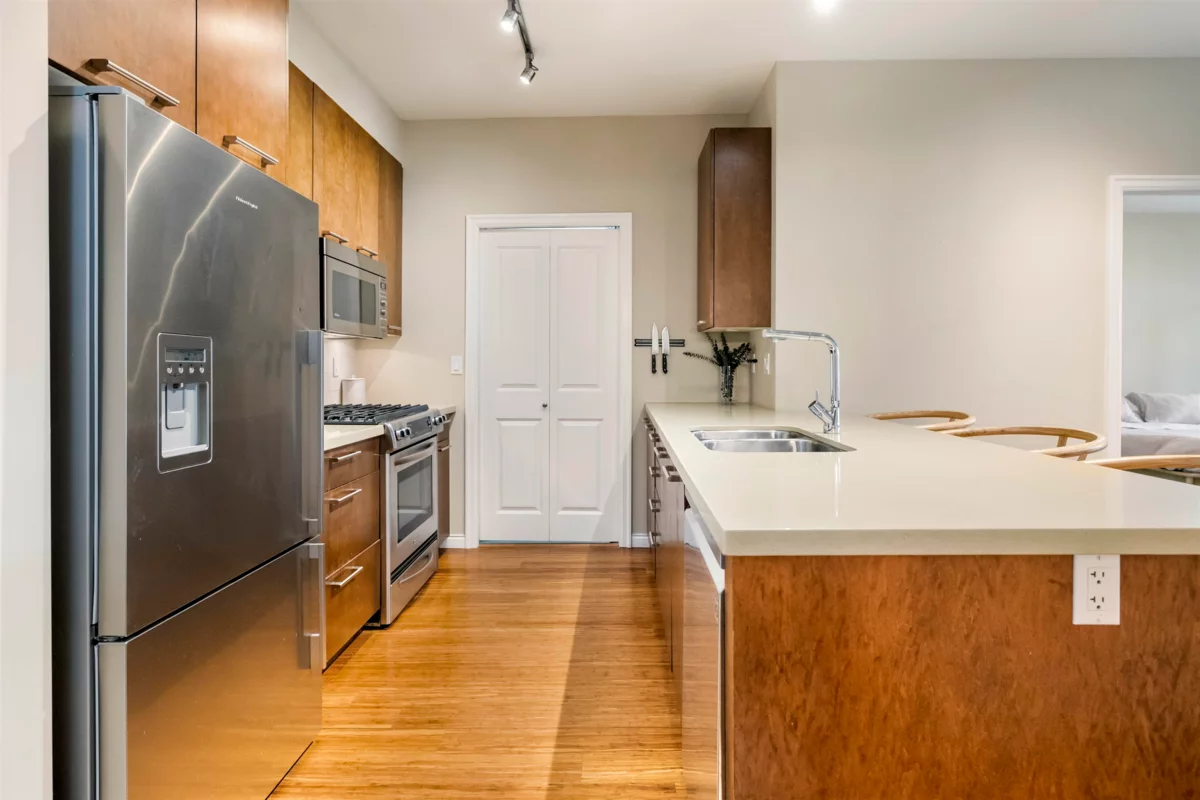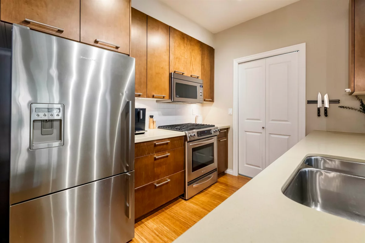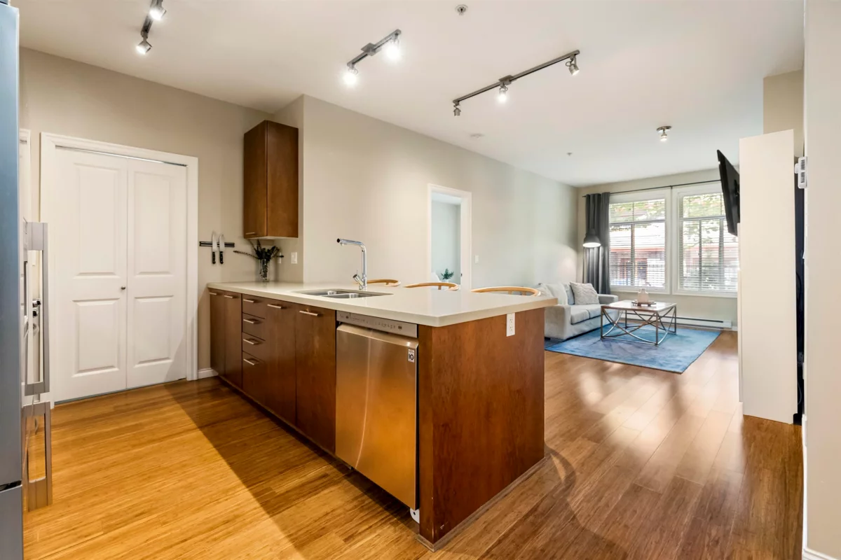 Tehama, built by Dawson Lakewood Developments is situated in the prestigious Rosemary Heights neighbourhood of Morgan Creek. Surrounded by tree-lined streets and scenic walking paths, this is one of the most desirable locations in South Surrey. This large 2 bed 2 bath offers a great layout with bedrooms on opposite sides. Huge primary w/ walk-in-closet & heated floors in the ensuite. S/S appliances in the kitchen, incl. a gas range + upgraded dishwasher, & quartz counters throughout. Bamboo flooring & updated carpeting in the bedrooms. 1 parking (with EV rough-in) & 1 storage locker + bike storage. This is a very well maintained building. Quick access to Hwy 99. & excellent shopping, dining, & amenities. Rosemary Heights Elementary and Grandview Secondary catchments.