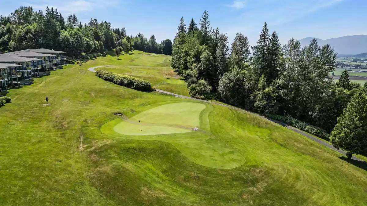 RARE FIND! MASTER ON MAIN 1/2 DUPLEX RANCHER with FULL BASEMENT on HOLE 1 at THE FALLS GOLF COURSE! Over 3,100 sq.ft. of LUXURY living featuring CENTRAL A/C, HARDWOOD floors, QUARTZ counters, soft-close cabinetry, and SPA-INSPIRED bathrooms. The GOURMET kitchen offers a N/G stove, S/S appliances, LARGE walk-through pantry, and AMPLE storage. Enjoy BREATHTAKING PANORAMIC VALLEY VIEWS from every level—especially from the MASSIVE COVERED PATIO overlooking the fairway and green! Includes a TRIPLE GARAGE (2 cars + golf cart), 3 MASTER BEDROOMS each with ENSUITE, 4 gas fireplaces, MEDIA ROOM, and SPACIOUS laundry. Nestled in exclusive “VISTA GREEN” on The Falls, Chilliwack’s premier Eastern Hillsides community. BEST LAYOUT IN THE DEVELOPMENT—DON’T MISS OUT!