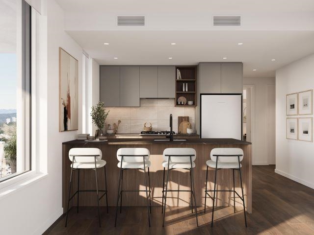 This rare 3 bed, 2.5 bath townhome in Coquitlam's first and only waterfront community offers 1,505 sf of interior home space. Enjoy 255 sf of expansive patio area with dual entry options for added convenience. The home features 9' ceilings, durable laminate floors, efficient heating and cooling systems, and side-by-side washer/dryer. The kitchen features Fisher & Paykel appliances, quartz countertops, a porcelain tile backsplash, and a convenient pantry. The primary ensuite offers a double vanity, rain shower, medicine cabinet, shower niche, spacious walk-in closet and fits a king bed! Amenities at Encore include a fitness centre, entertainment lounge with a catering kitchen, a karaoke room, an outdoor podium with greenspace, a BBQ, a ping pong table, fireside lounge, and more.