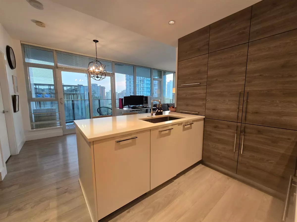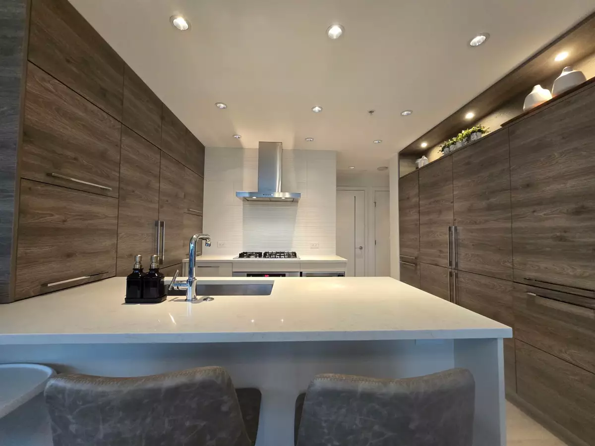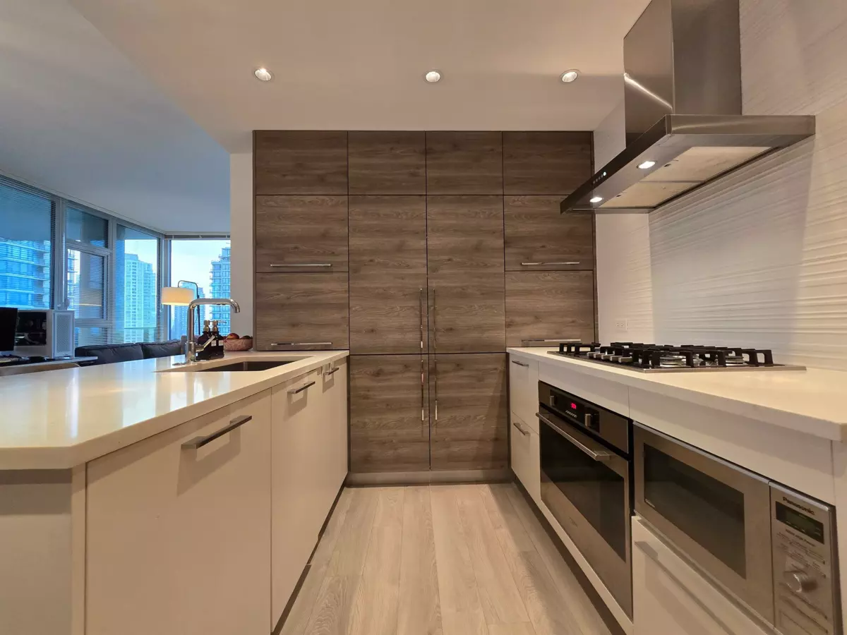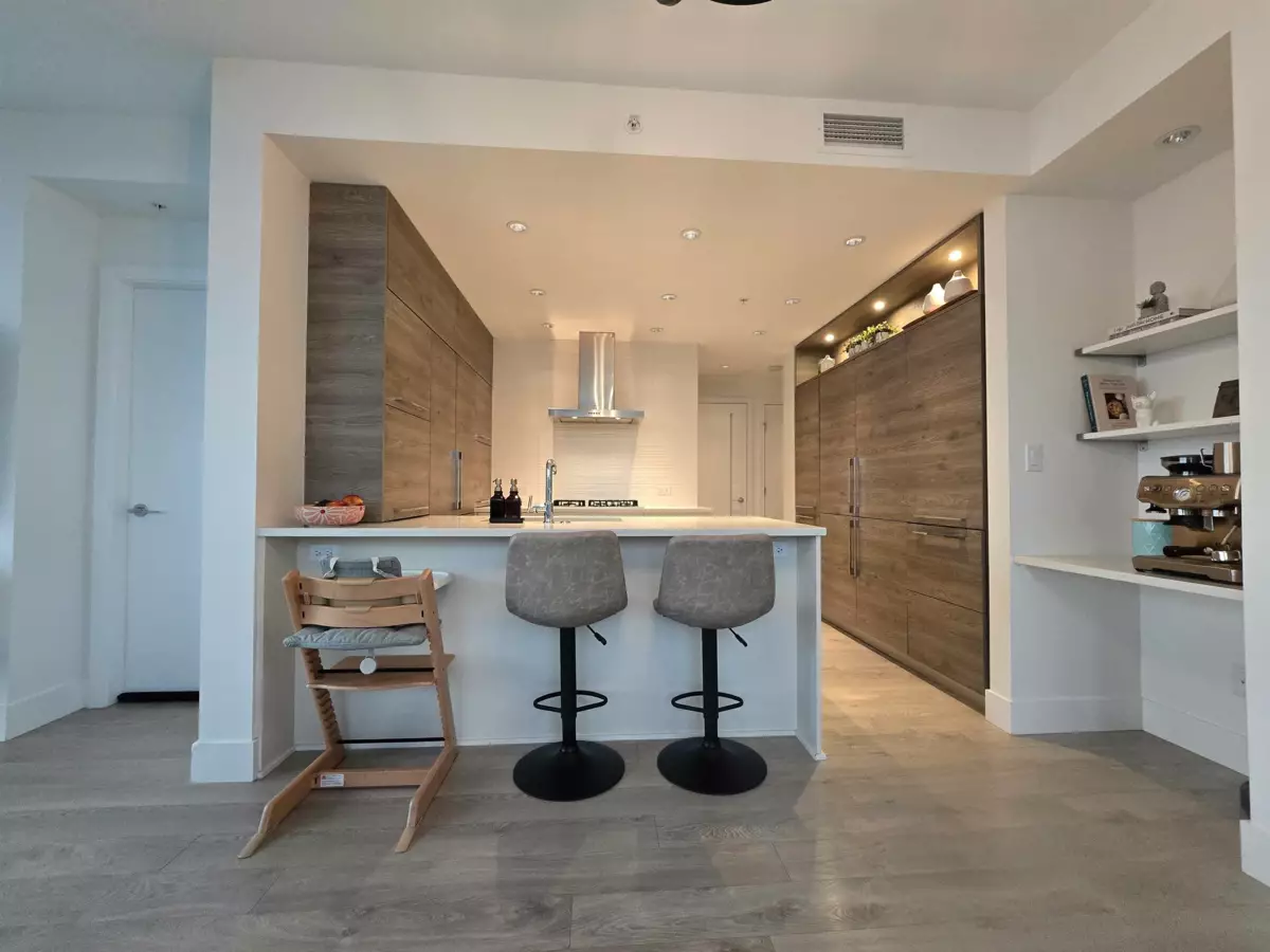 Welcome to this stunning northwest corner unit at Kings Crossing II by Cressey, offering breathtaking views of the city skyline and mountains. The home features Cressey’s signature open kitchen with integrated appliances and quartz counters, plus central air conditioning for year-round comfort which is controlled by the latest Google Nest Learning Thermostat. The large balcony is perfect for outdoor living, while the building's amenities include a concierge available from 8 AM to 11 PM, a state-of-the-art gym, indoor basketball and squash courts, and steam/sauna rooms. This complex includes a Pricemart and a large commercial gym right downstairs for ultimate convenience. Bonus: the unit comes with one of the building's larger parking spaces and a storage locker.