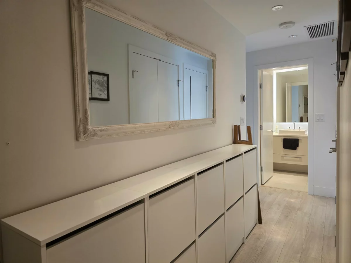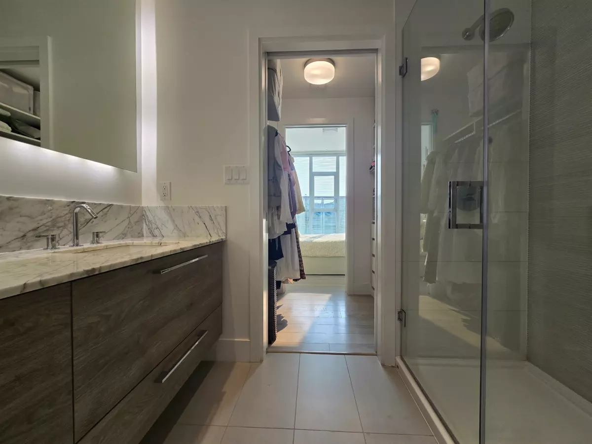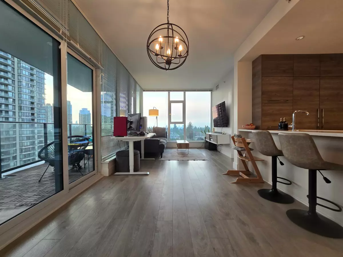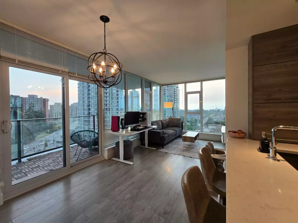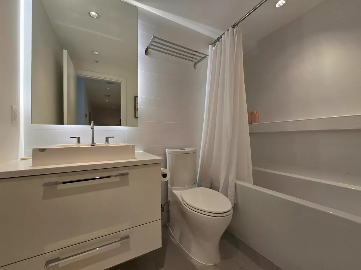 Welcome to this stunning northwest corner unit at Kings Crossing II by Cressey, offering breathtaking views of the city skyline and mountains. The home features Cressey’s signature open kitchen with integrated appliances and quartz counters, plus central air conditioning for year-round comfort which is controlled by the latest Google Nest Learning Thermostat. The large balcony is perfect for outdoor living, while the building's amenities include a concierge available from 8 AM to 11 PM, a state-of-the-art gym, indoor basketball and squash courts, and steam/sauna rooms. This complex includes a Pricemart and a large commercial gym right downstairs for ultimate convenience. Bonus: the unit comes with one of the building's larger parking spaces and a storage locker.