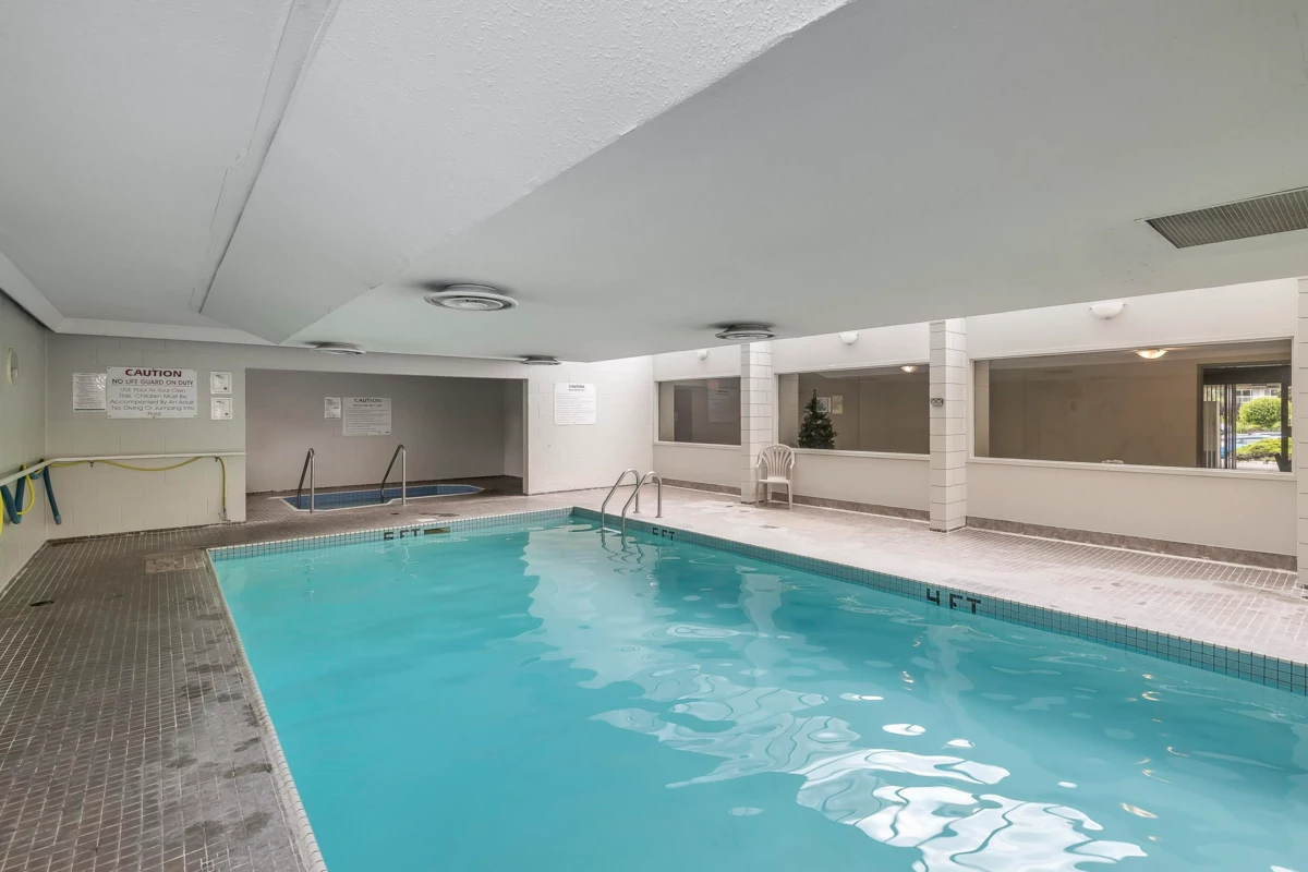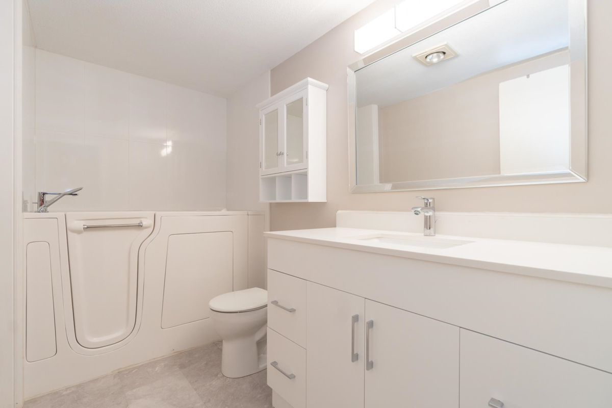 Welcome to Evergreen Village. One of Abbotsford's most desirable and well maintained 55+ buildings. Units like this don't come available often. This hidden gem is a ground floor corner unit and is located right by the entrance door and right by the parking lot for easy access. Featuring well lit 2 bedrooms, 1.5 bath, with updated kitchen cabinets and a professionally installed bathtub for anyone who may need assistance. The building offers top-tier amenities: indoor pool, hot tub, workshop, library, hobby/recreation rooms, and secured underground parking. Prime location with a bus stop out front and all essentials nearby. Call Today!