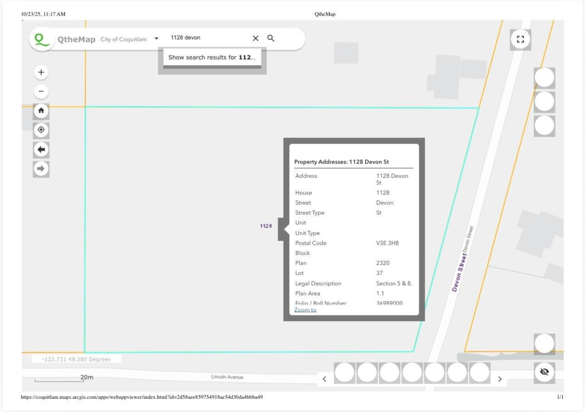 The 1128 Devon Street area boasts an array of lifestyle amenities, including parks, beaches, trails, dog parks, and shopping malls. The nearby Northbound Cedar Dr @ Lincoln Ave bus station is just 0.66 km away, providing convenient access to public transportation. You'll also find a range of grocery stores, restaurants, and coffee shops within walking distance.