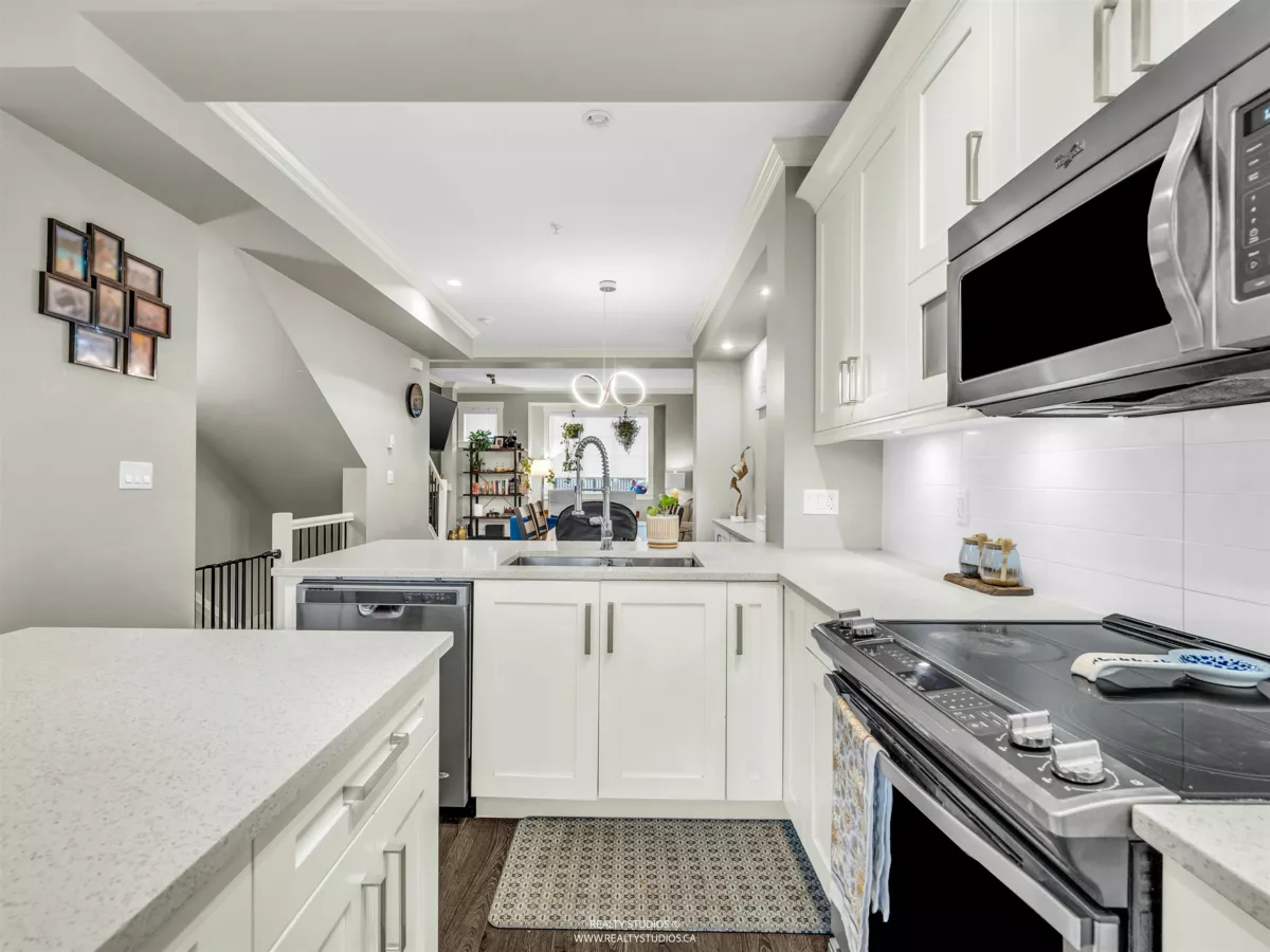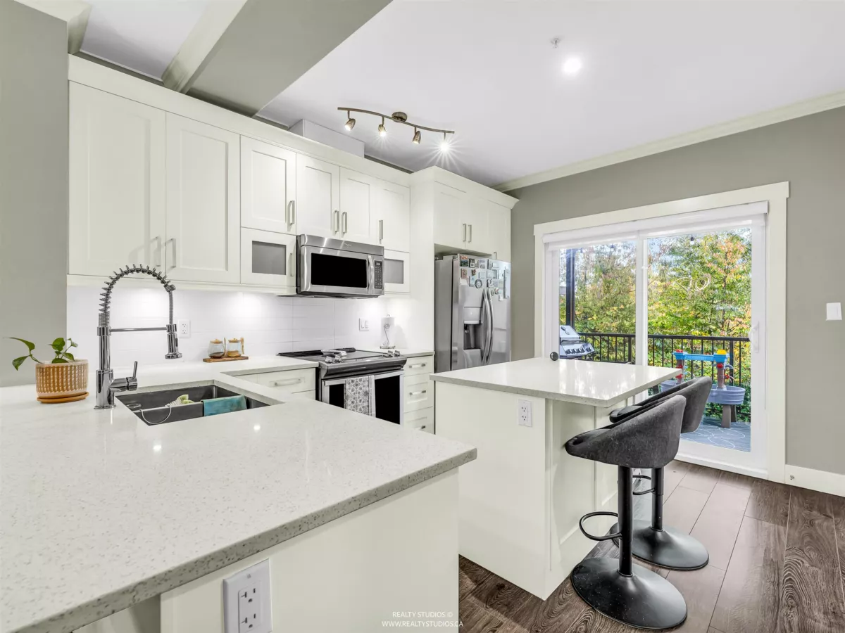 FAMILY FRIENDLY Albion Station! This three level townhome is on the QUIET, GREENBELT, west-side of the complex, backing greenbelt and then ALR land beyond. THREE BEDROOMS UPSTAIRS, DOUBLE GARAGE (tandem) offering some flex space, and an open concept living space on the main featuring a MODERN, WHITE KITCHEN with quartz counters and stainless steel appliances and a COVERED BALCONY overlooking the greenbelt. Backyard offers a PRIVATE COVERED PATIO + yard, great for pets and kids. Walkable to Albion Elementary, Samuel Robertson Technical (high school), Planet Ice Recreation Centre, Bruce's Market, and Kingfisher's Pub, plus minutes from the West Coast Express, other transit and commuting options and all levels of shops and services. OPEN HOUSE SUN, NOV 9, 12:30-2:30pm.