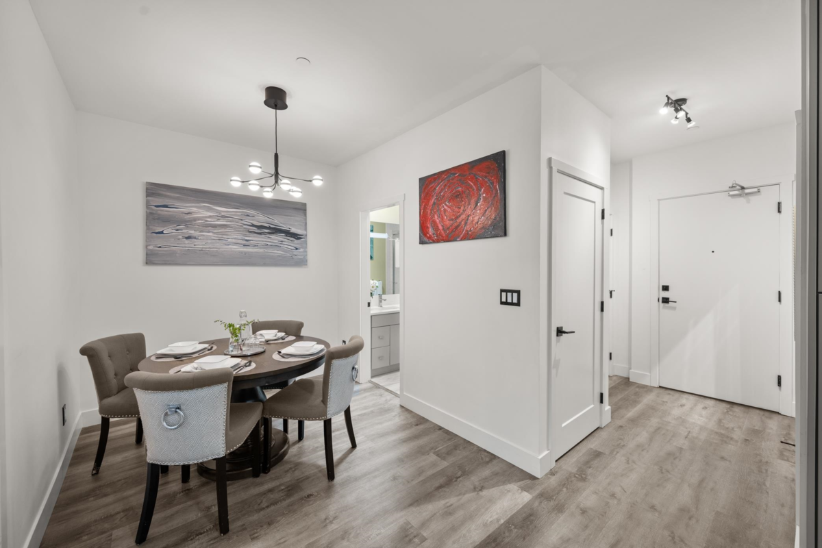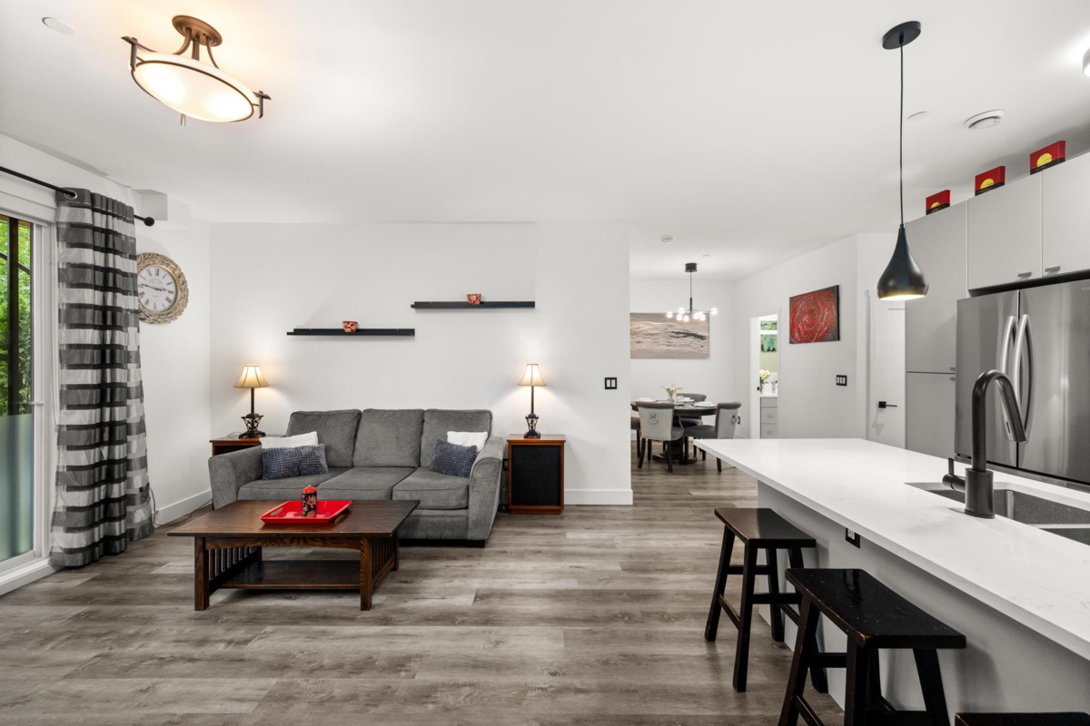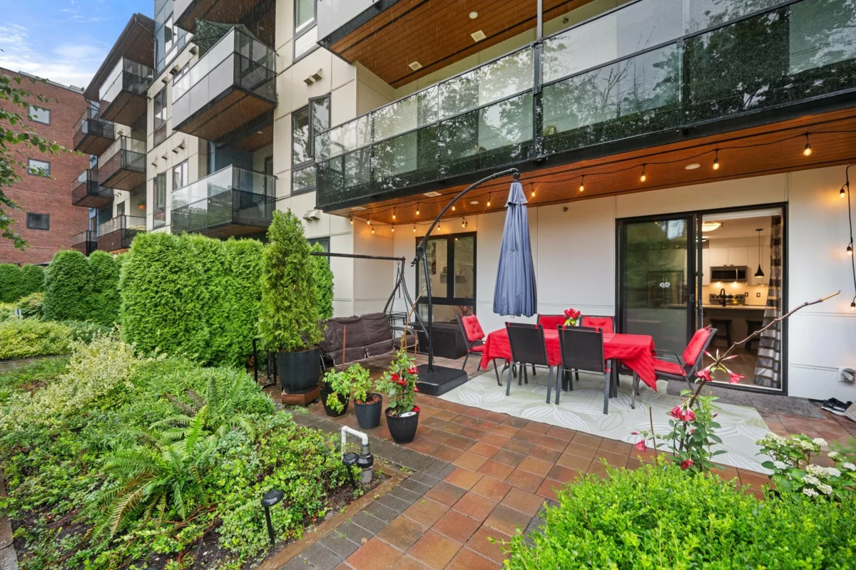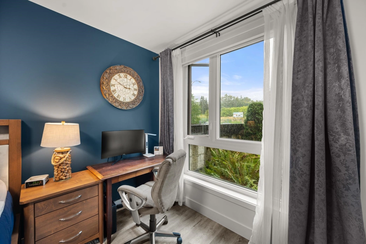 Bright and convenient, ground-floor condo with an oversized patio that feels like your own private retreat! This one-owner, 2-bed/2-bath home with den (perfect for office or pantry) offers a peaceful setting at the end of a no-through road. Enjoy modern comfort with air conditioning/heat pump, quartz countertops, laminate flooring, and stainless steel appliances. The 5-year-young building is located in the heart of Central Maple Ridge — close to shops, parks, and transit. Includes 2 parking stalls, a storage locker, and greenspace at your doorstep. A perfect blend of comfort, convenience, and nature — just move in and enjoy. Pets welcome!