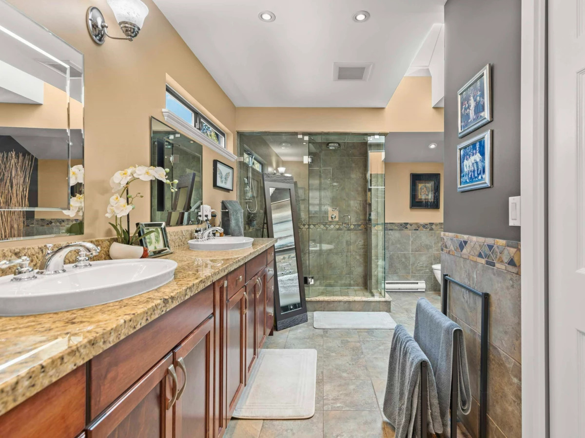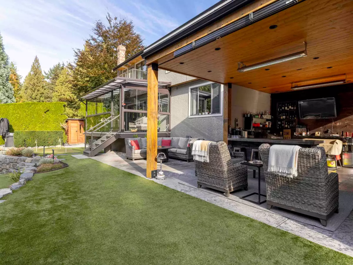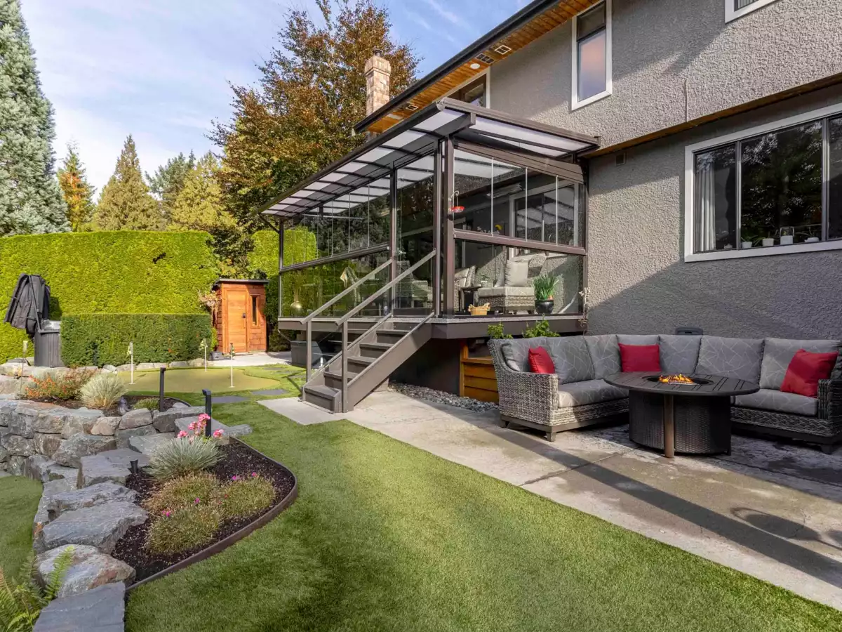 Impeccably maintained and fully updated home blends comfort, style and function. This property is a dream for families or down-sizers who prioritize connecting with friends and family. A soundproof main-floor office, formal living and dining rooms and an open kitchen/family room create an ideal, traditional flow. A crawl space like no other with a beautiful wine cellar, seating area and more. A/C on the main floor and in the primary. The heated solarium with custom Lumon glass opens completely to the outdoors, leading to a stunning landscaped yard with turf, multiple gas fire pits, covered bar and lounge and putting greens. An amazing garage features hockey flooring and boards, gym and theatre area. Located on a private, quiet street 5 min. from schools, parks, shops, rec centre and Hwy 1.