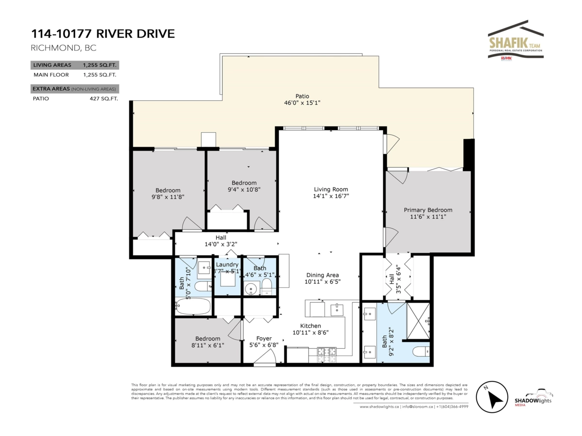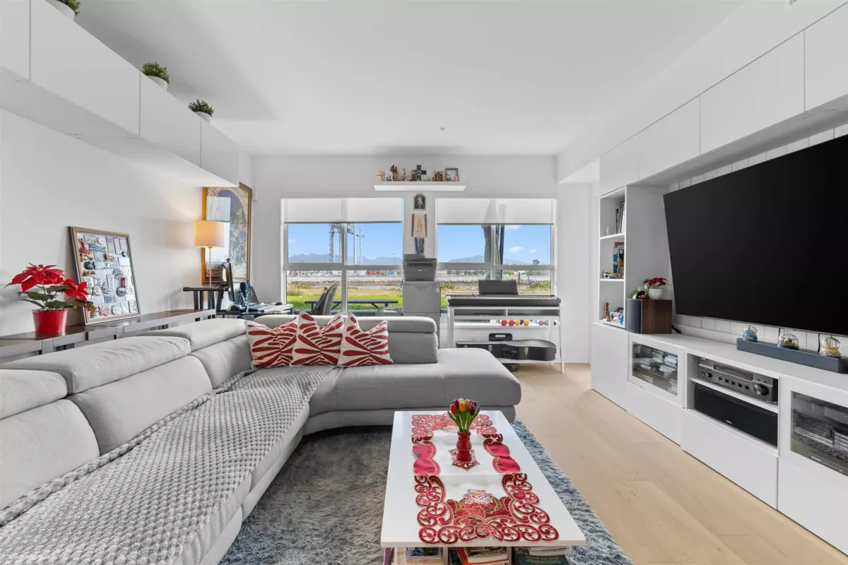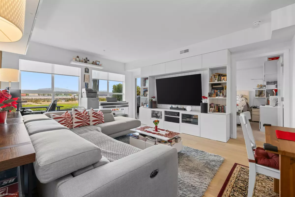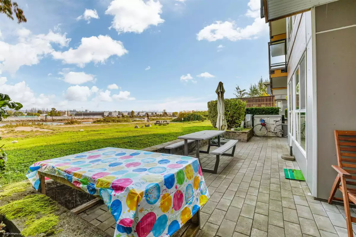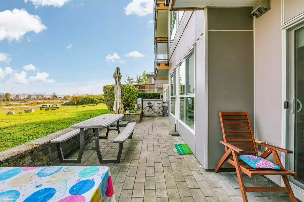 RARELY AVAILABLE! THIS 1255 SF ONE-LEVEL HOME in Parc Riviera Monaco offers 4 BR+2.5 baths+MASSIVE 427 sq ft patio w/ sweeping mountain & water views — perfect for morning coffee/summer BBQs/ sunset gatherings. A thoughtful layout separates bedrooms for privacy, w/ a KING-SIZED PRIMARY BR+generous ensuite w/ DB vanities. The open kitchen features high-end stainless steel appliances (DB-door fridge, 5-burner cooktop), 2-tone cabinetry & wide-plank engineered hardwood floors (carpets in BR). Strata fees include geothermal heating & cooling/city utilities/hot water/gas & use of resort-style amenities: indoor pool/hot tub/gym. Steps to parks, trails, and transit, with easy access to Vancouver and minutes to Costco. A rare opportunity to own space and style in a thriving riverfront community!