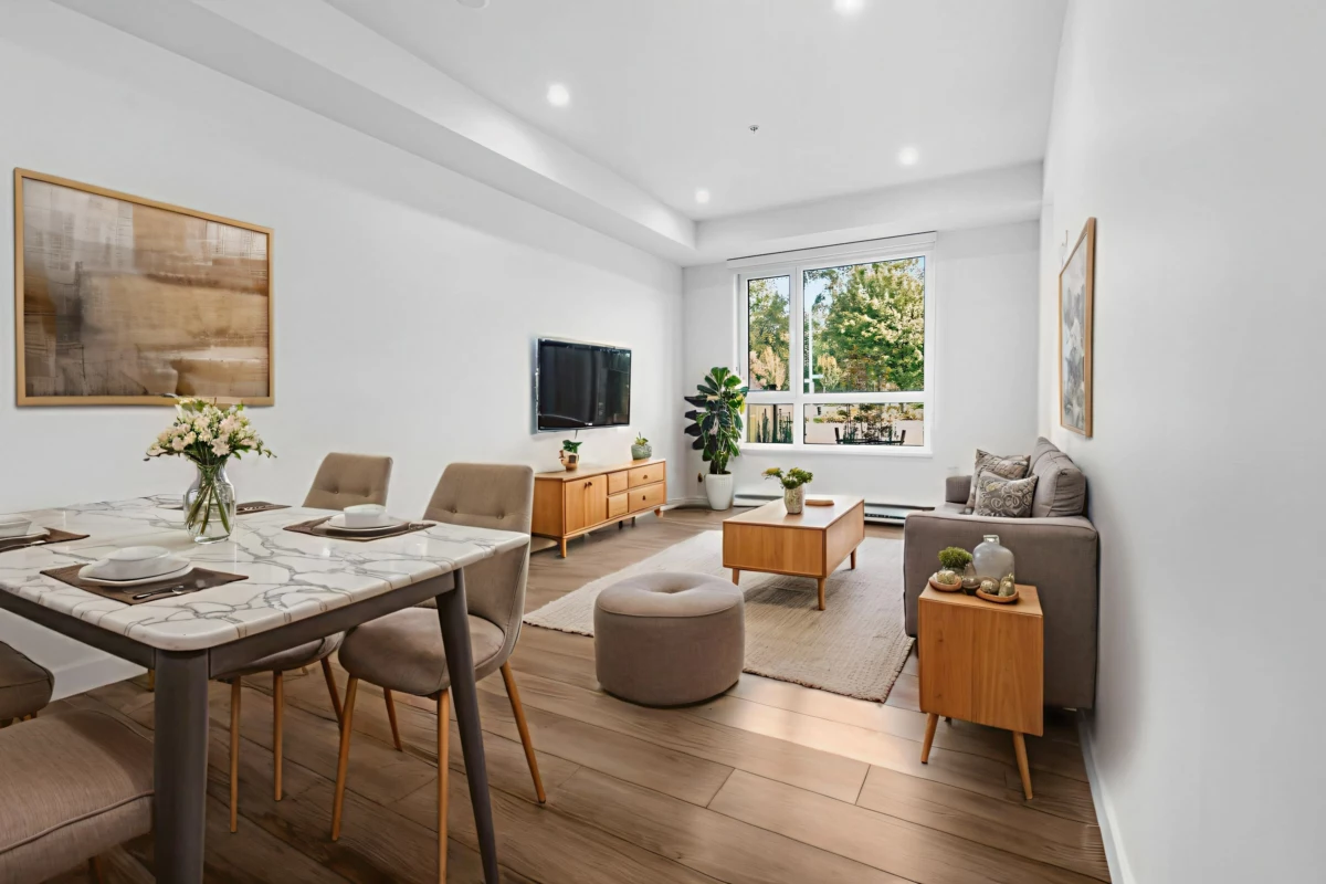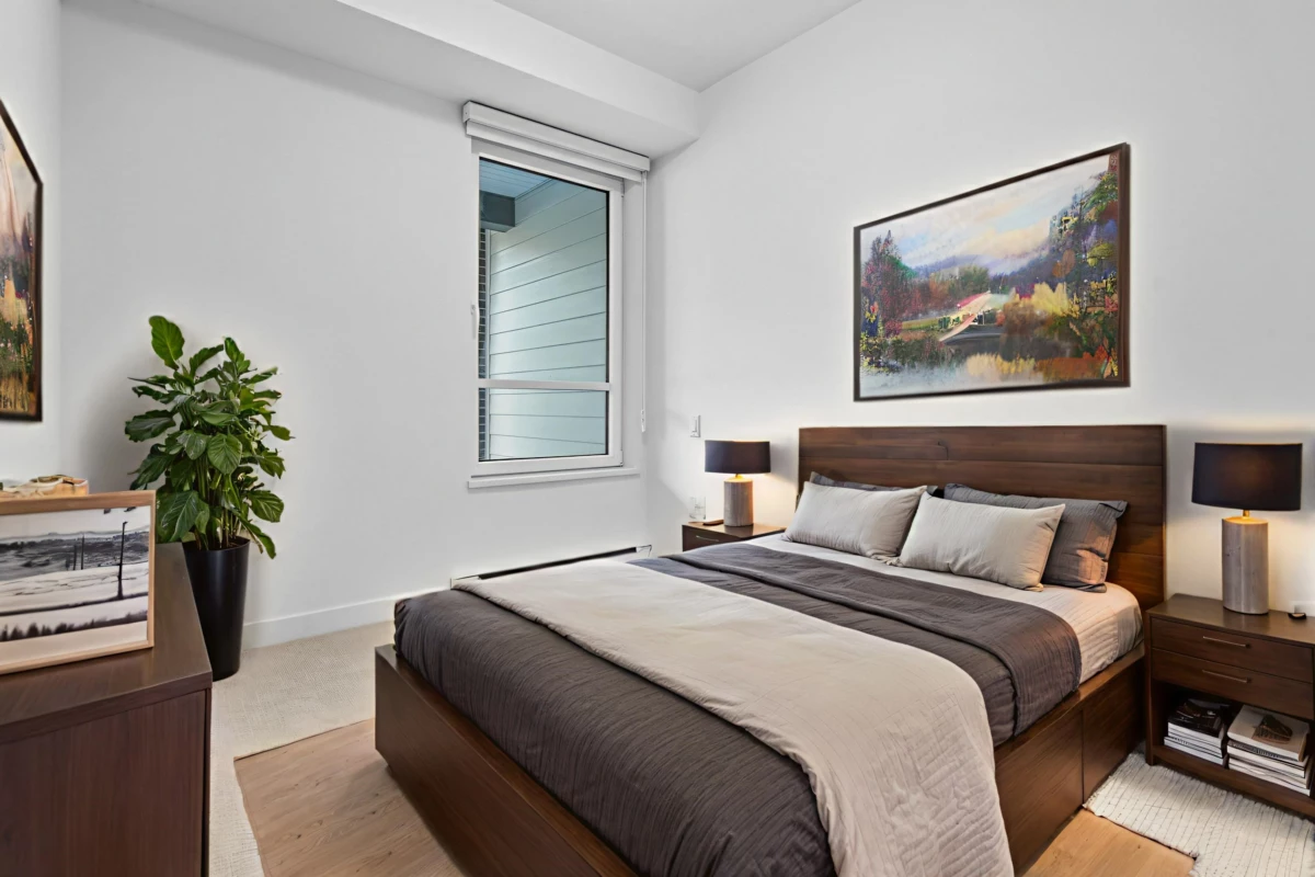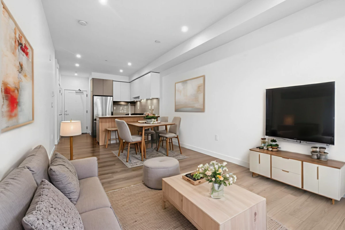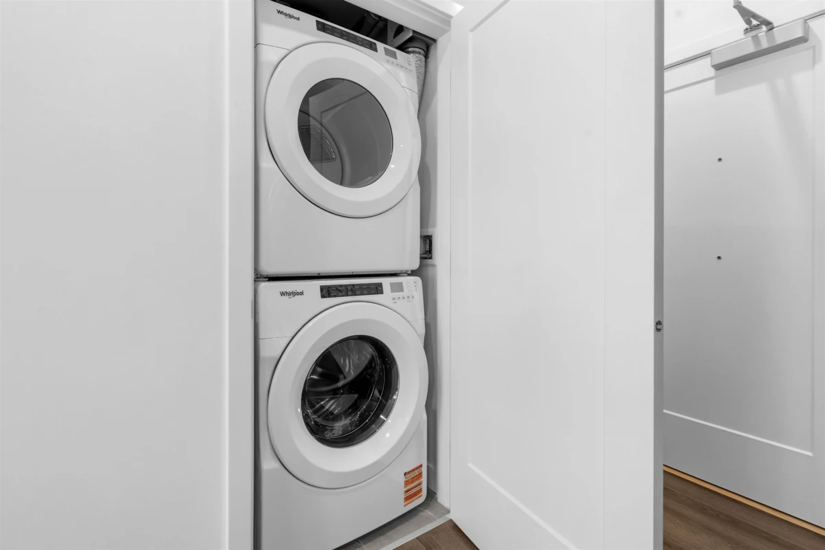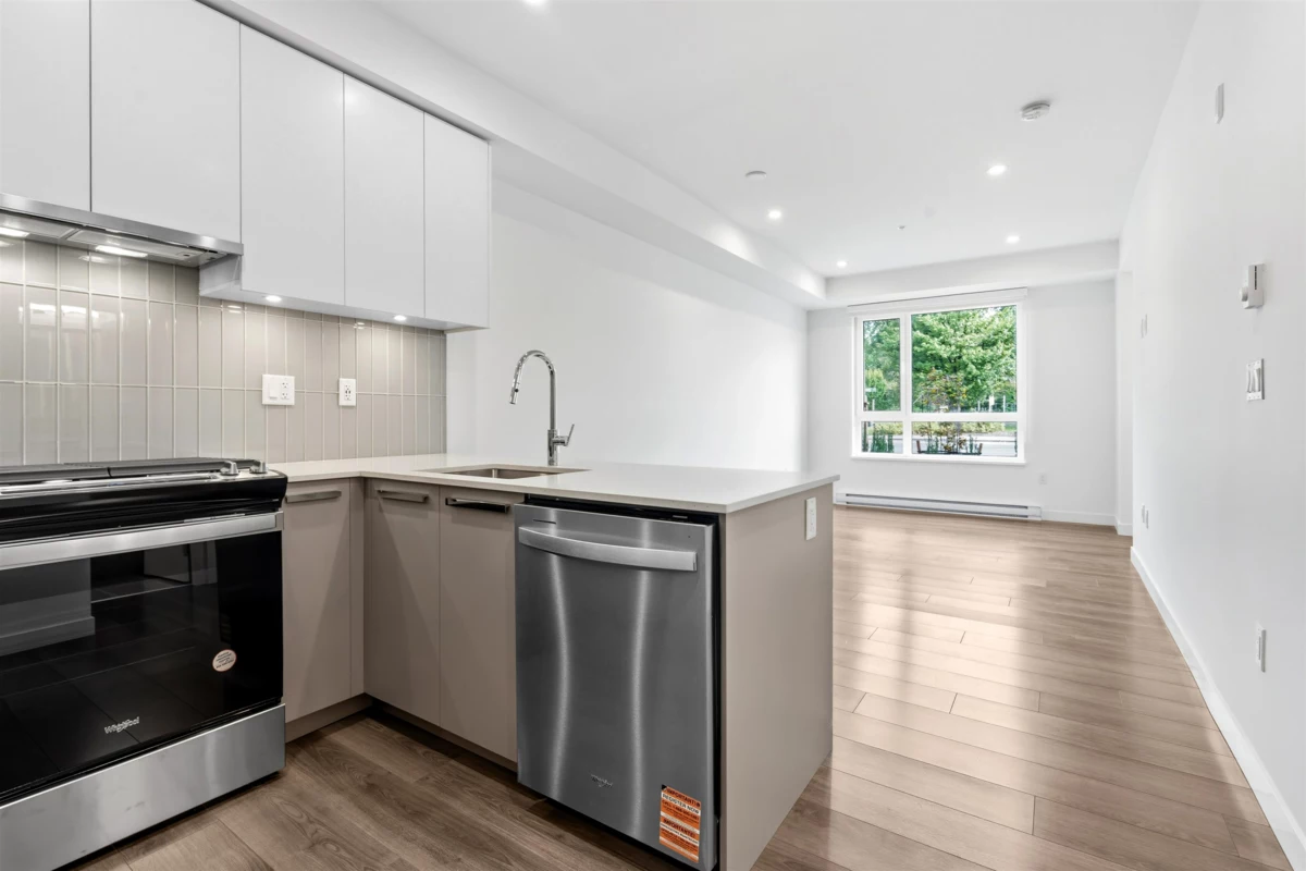 Welcome to Silva 1! This ground-level, 1 bedroom and 1 bathroom features a spacious ground-floor patio offering easy access to nearby parks and bus stops, perfect for relaxation or hosting. Enjoy refined cooking on a gas stove, complemented by premium finishes throughout — stainless steel appliances, quartz countertops, wide-plank flooring, in-suite laundry, and an elegant double-sink bathroom. Located in the heart of East Newton, you’ll be within walking distance of shops (Costco, Superstore, Canadian Tire, restaurants, and schools. The building features numerous amenities: a beautifully designed courtyard, fully equipped fitness center, co-working area, social lounges, community kitchen, and more. This is the perfect home for first-time home buyers, young couples or investors!