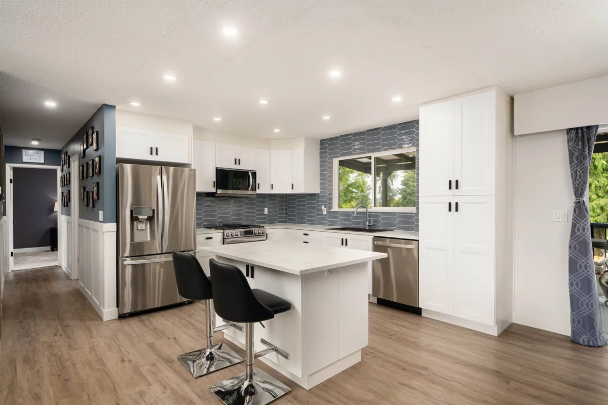 The perfect family home on a quiet street backing onto Bonson Park! This 4 bed, 3 bath home offers over 2000 sq ft of updated space on a 7200 sq ft lot. Inside you'll find new flooring, paint, updated wiring, A/C, appliances, kitchen cabinetry, and 3 fully renovated bathrooms. Custom playroom downstairs with built-in climbing frame are ideal for little kids. Outside, enjoy a private yard with new front and back fencing, above ground pool with wrap around deck, fire pit, Tonka Truck digging area, and freshly painted deck overlooking Bonson Park. Plenty of parking, 1 car garage, RV or boat parking, and suite potential downstairs. Walk to schools, sports fields, and rec centre. A peaceful location with room to grow—this home checks every box! OPEN HOUSE SAT CANCELLED