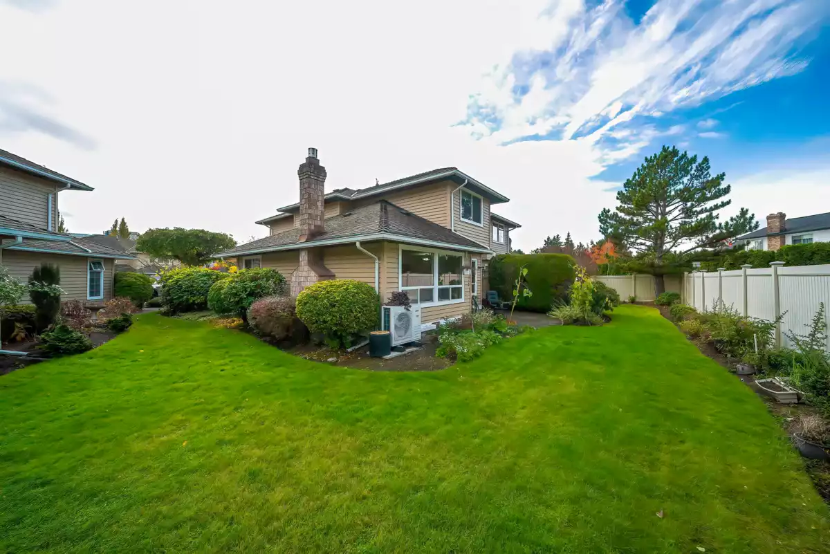 Welcome to Orchard Park, one of South Surrey’s most desirable townhome communities. Steps from parks, shops, restaurants, the library, and transit, yet offering rare peace and privacy. This spacious, recently renovated 2 bed, 3 bath townhome/duplex backs onto a quiet greenbelt with a walking path. Updates include new window, flooring, cabinetry, appliances, lighting, paint, tankless water heater, furnace, and A/C. Soaring vaulted ceilings, a cozy gas fireplace highlight the elegant interior. Enjoy a private patio, landscaped oversized yard, and double garage with extra parking. All ages welcome. 5 mins to White Rock Beach. Semiahmoo Secondary catchment.