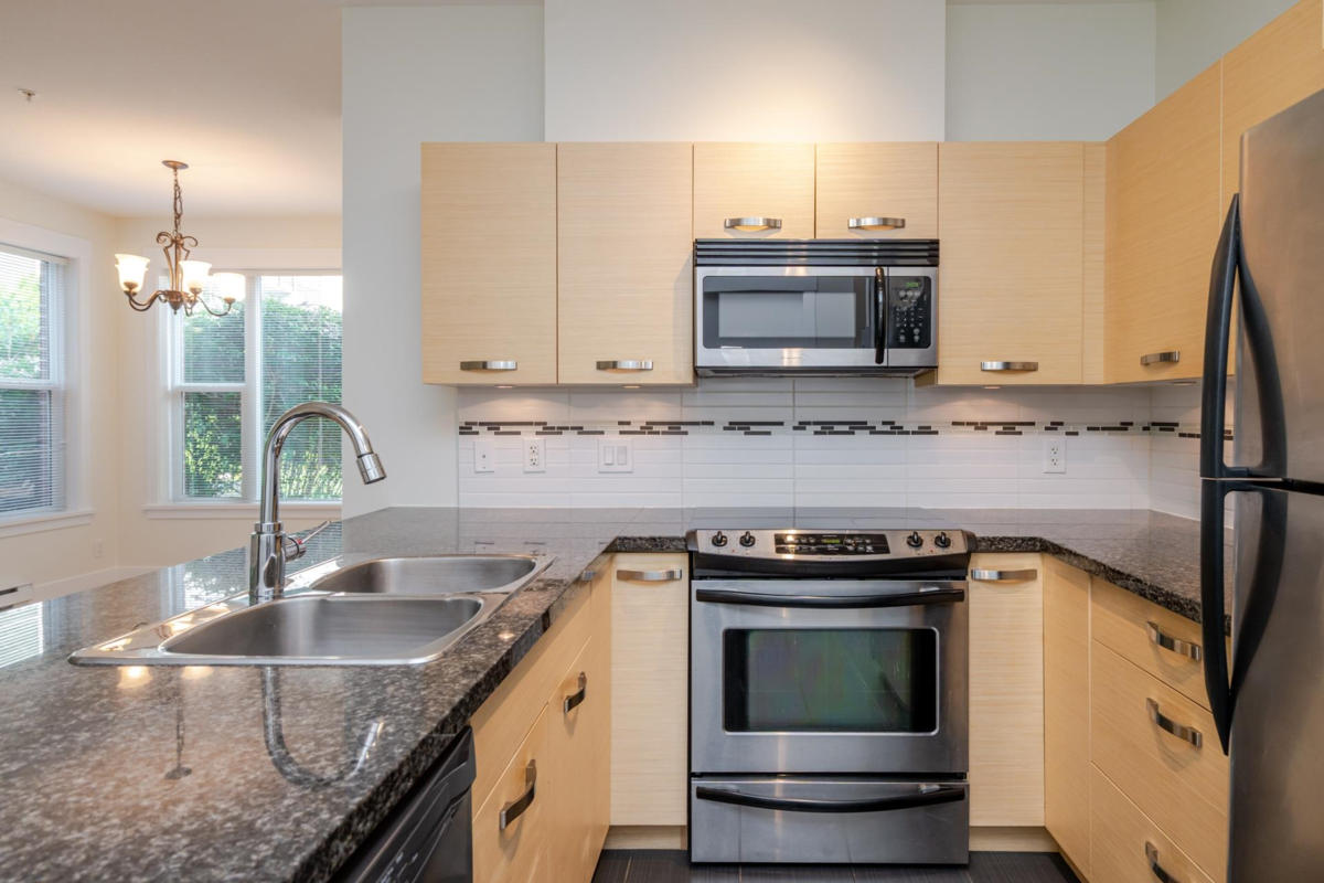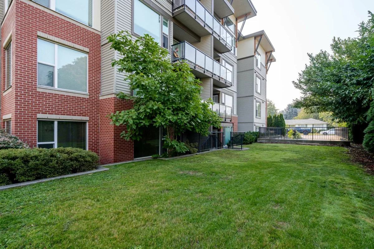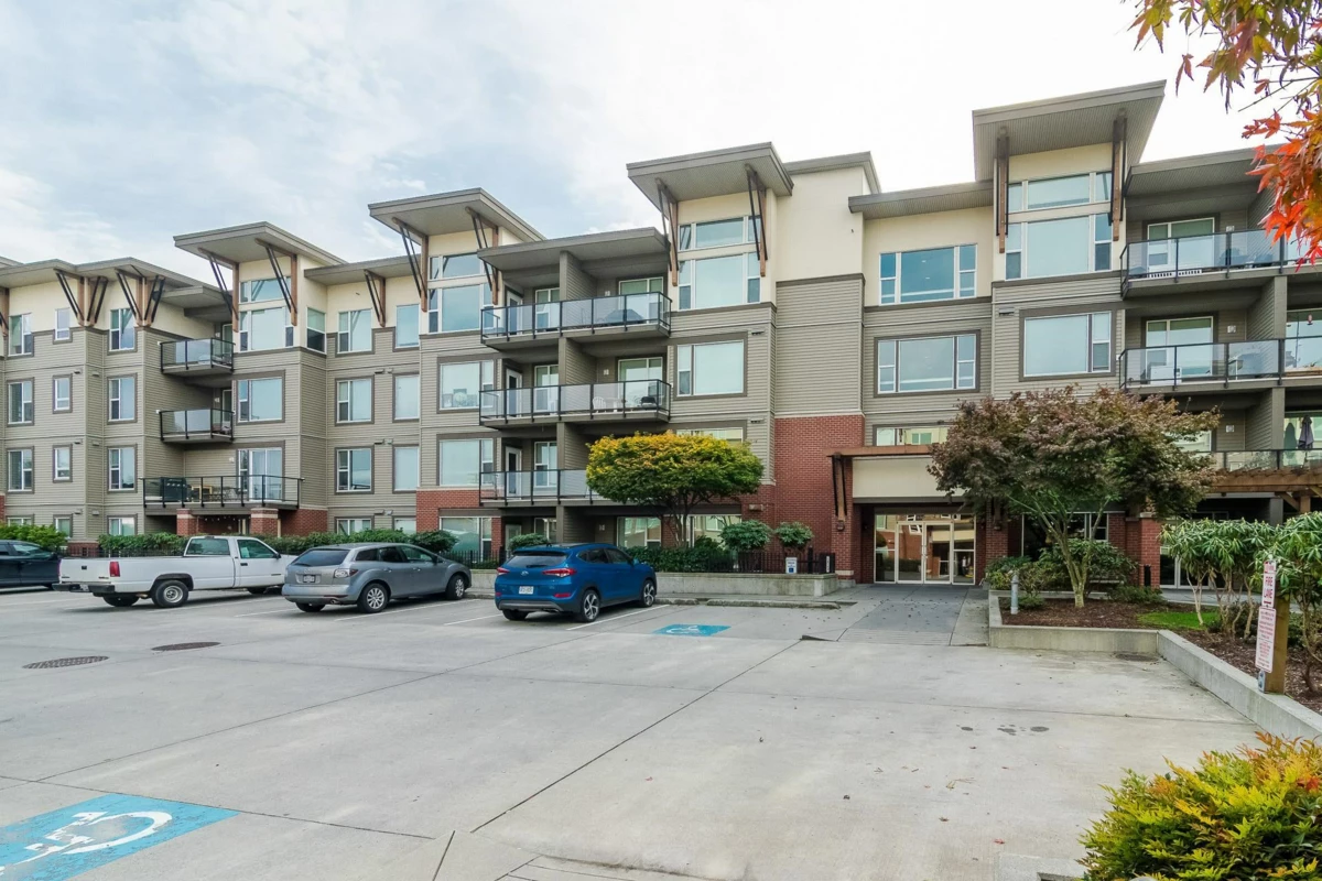 Welcome Home to The Crossing. This lovely spacious corner condo has loads of natural light. Located in a quiet area of the development with beautiful garden views to give you privacy. Relax on your private patio that has access to a nice grass area. Fresh new paint throughout and brand new Primary Bedroom carpet. The bedrooms are big and will fit a King size bed. The open concept kitchen boasts of granite counters and SS appliances. 2 parking #53 and #54 and a storage locker #6 and 2 elevators. Fantastic location walking distance to McCallum Crossing shopping. Easy access to Highway 1 and close to UFV. OPEN HOUSE Sunday Nov 9th 12:30-2:30