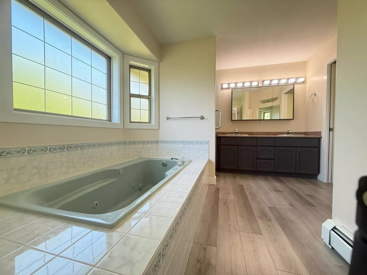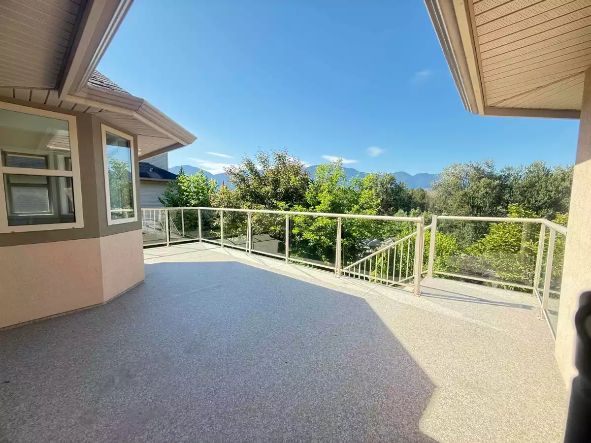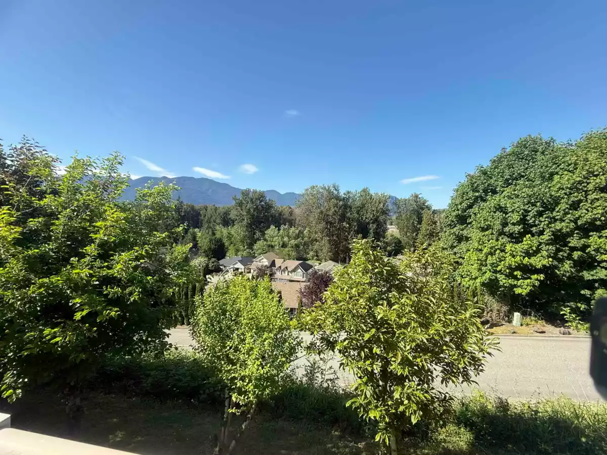 HOME WITH WATER & MOUNTAIN VIEW! Professionally renovated $100K spent. South facing 5 beds, 3 baths. Brand new washer/dryer, dishwasher, fridge, window blinds, pot lights, hot water on demand, paint, laminate floors, and much more. Family room and kitchen opens onto a private deck with fabulous unobstructed mountain and water views. Walking distance to Chilliwack Creek. 2 gas fire places, 3 beds, 2 full bath on the main including huge master bedroom with large en-suite with a soaker tub & separate shower. Laundry room on main. 2 or 3 beds BSMT with a massive living room in the BSMT. Rough-in plumbing and electrical for a new kitchen with separate entrance. 2 car garage. 5 mins to town. Located in a street with cul-de-sac