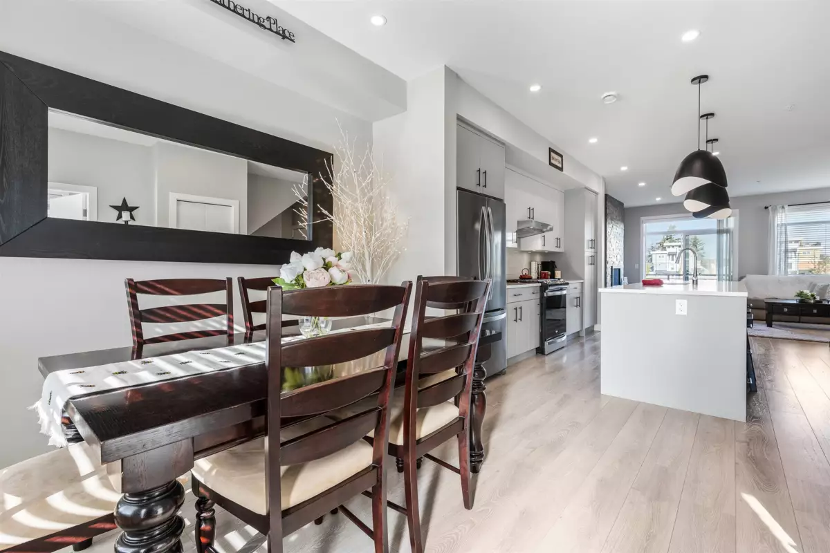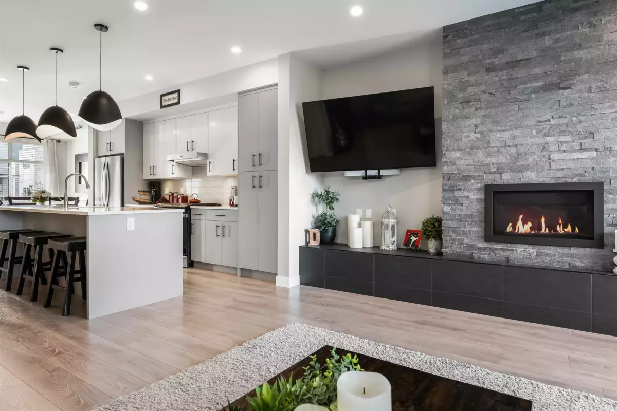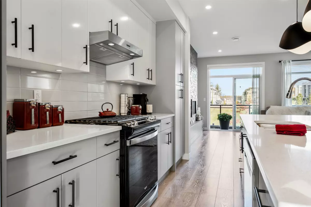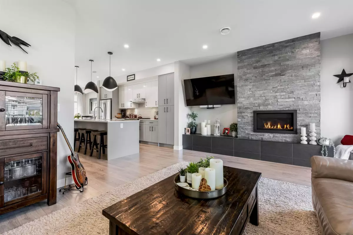 Discover this STUNNING END UNIT townhome with a 1-BED SUITE in the highly desirable Base 10 complex! Ideally situated near schools, shopping, transit & MORE! Step into the BRIGHT, OPEN main floor featuring a sleek kitchen with S/S appliances, elegant lighting & a HUGE island with generous storage. The inviting living room showcases a stone gas fireplace & opens to a LARGE balcony with gas hookup. Upstairs offers a LUXURIOUS primary suite with dual vanities & a glass walk-in shower, plus 2 additional bedrooms, full bath & laundry. Not to mention, DBL garage with added spot to park in front PLUS designated 4th stall in front of unit for suite! A must-see home!